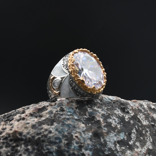 Ay Yıldızlı Mistik Topaz Taşlı Gümüş Yüzük