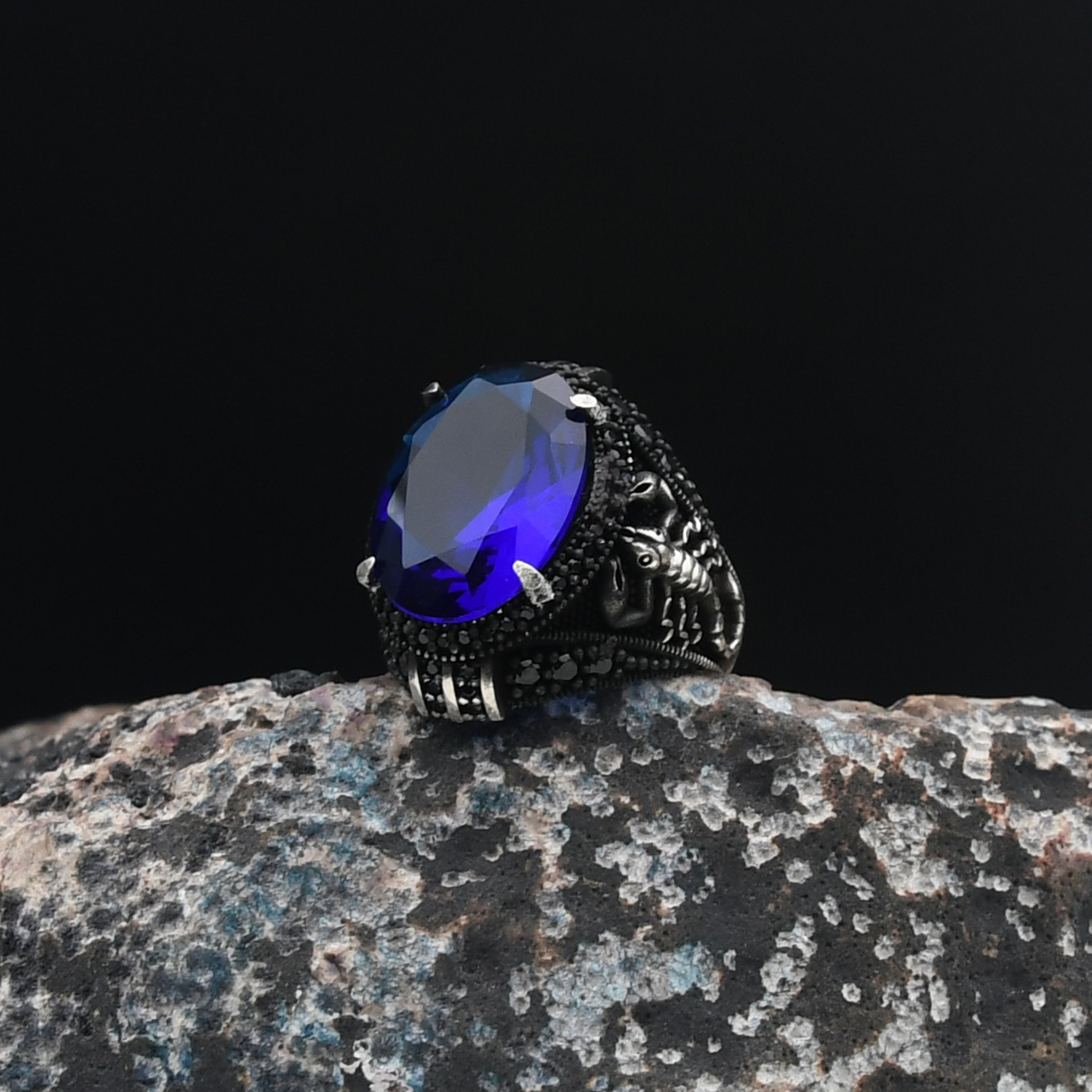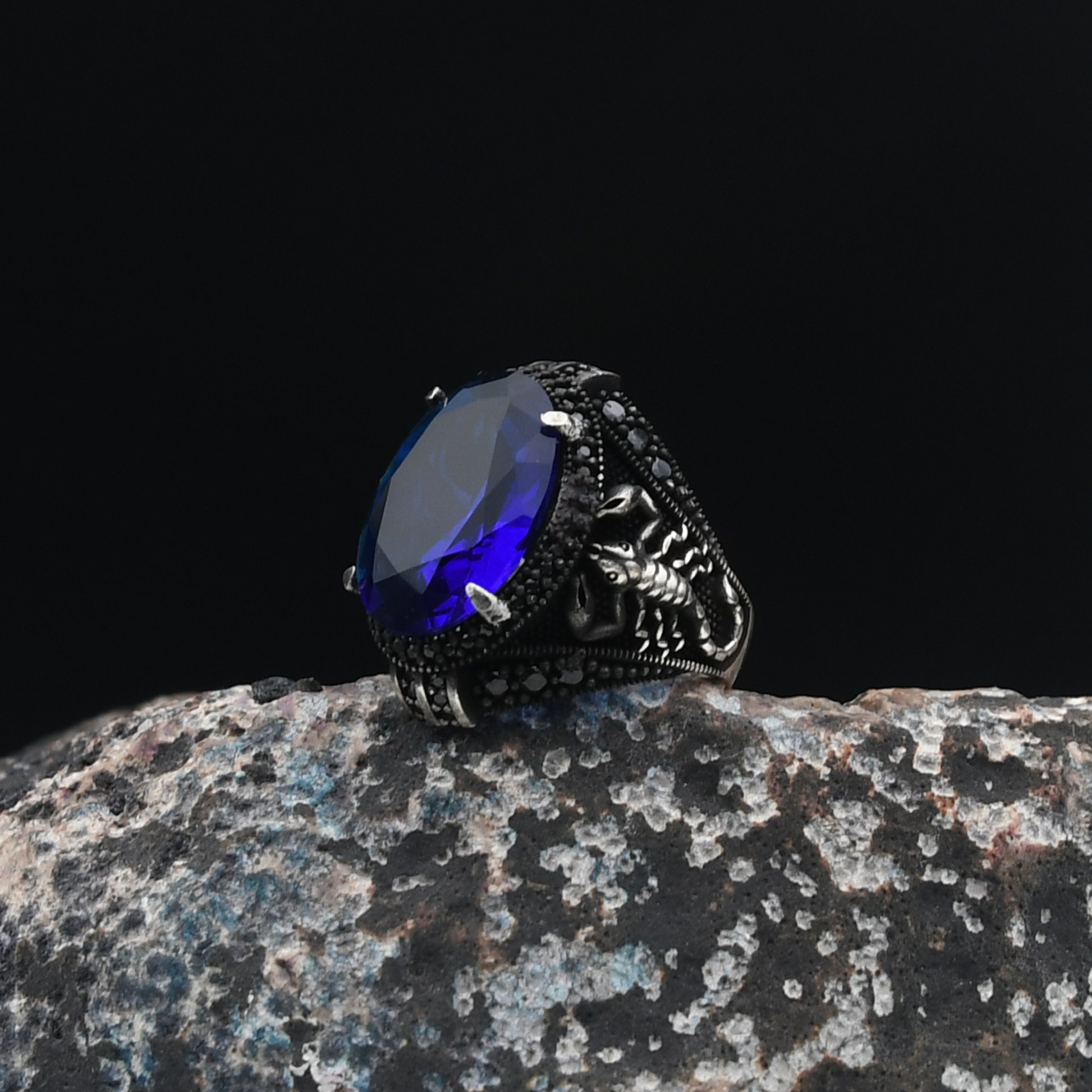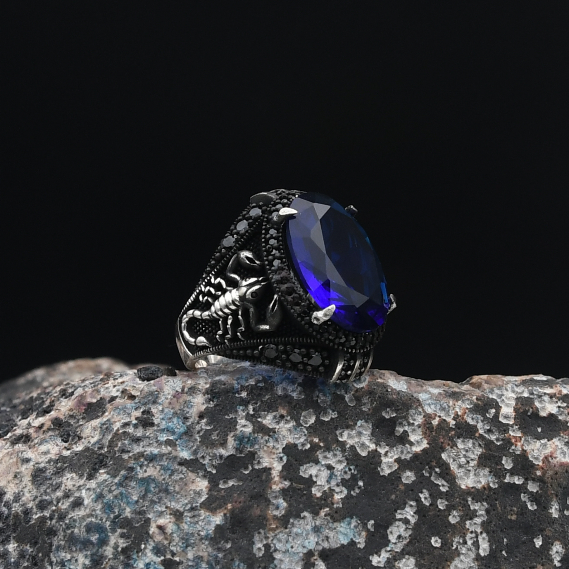 Gücün, keskin sezgilerin ve kararlılığın simgesi akrep figürü, derin ve etkileyici parlaklığa sahip lacivert zirkon taşı ile birleşerek güçlü bir duruş sergileyen özel bir tasarım sunuyor. Koyu lacivert taşın asil ışıltısı, yüzüğe hem karizmatik hem de modern bir hava katarken; akrep figürünün enerjisi karakteri güçlü erkekler için benzersiz bir tamamlayıcı oluşturuyor.