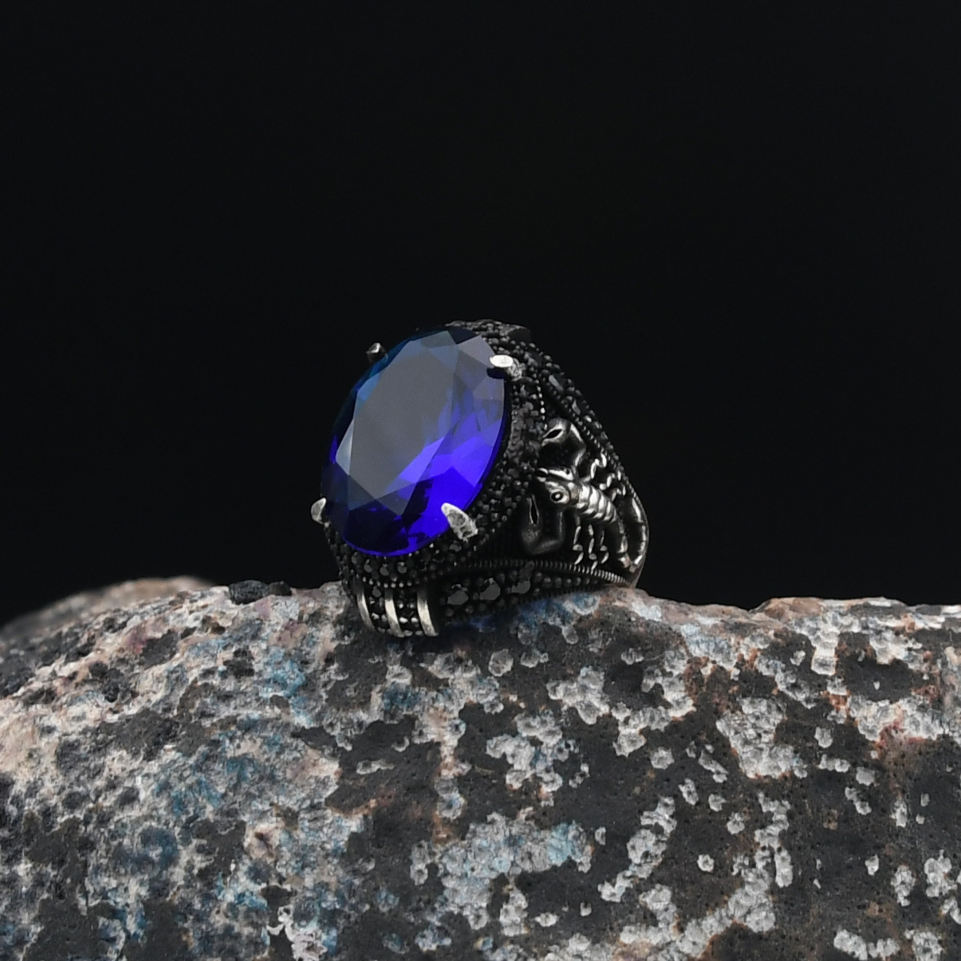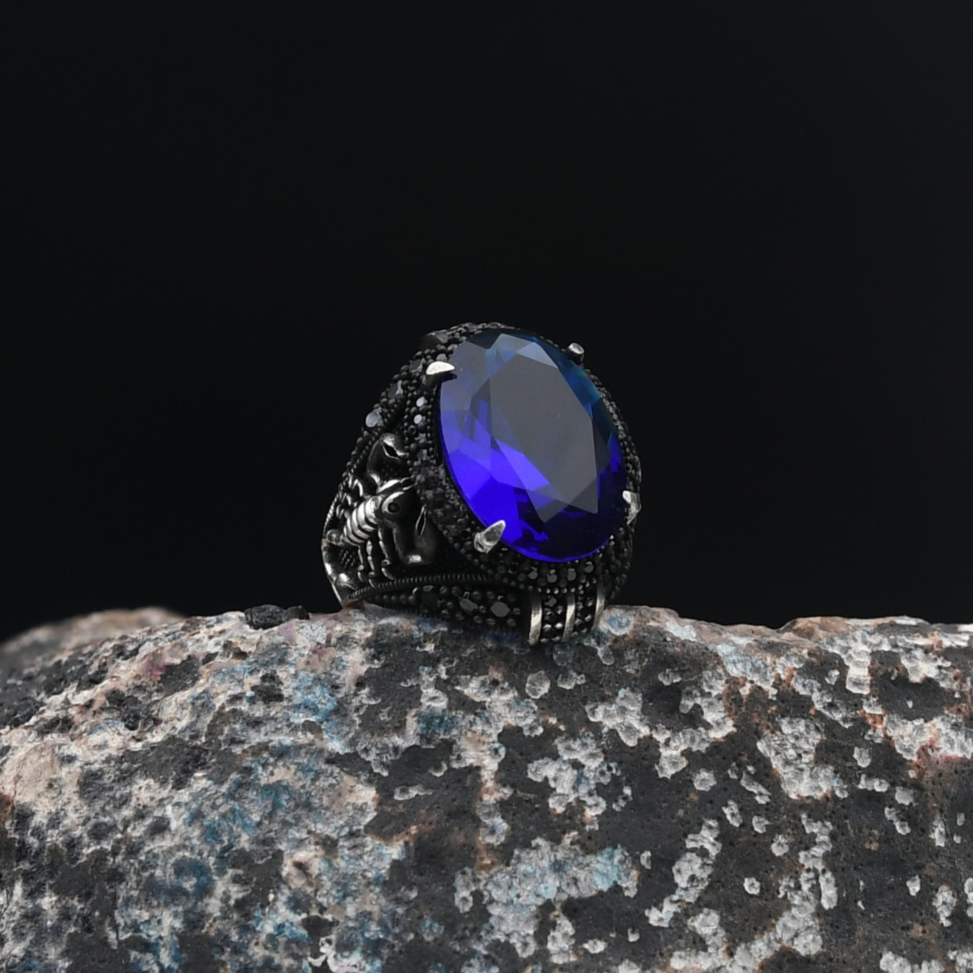 Akrep Figürlü Lacivert Zirkon Taşlı 925 Ayar Gümüş Erkek Yüzük