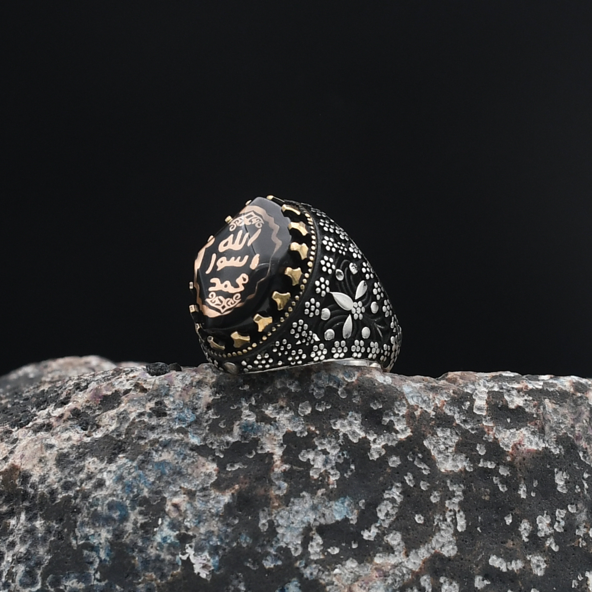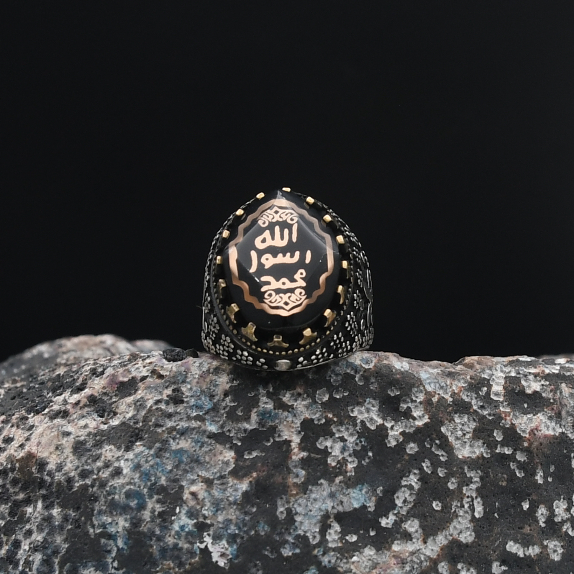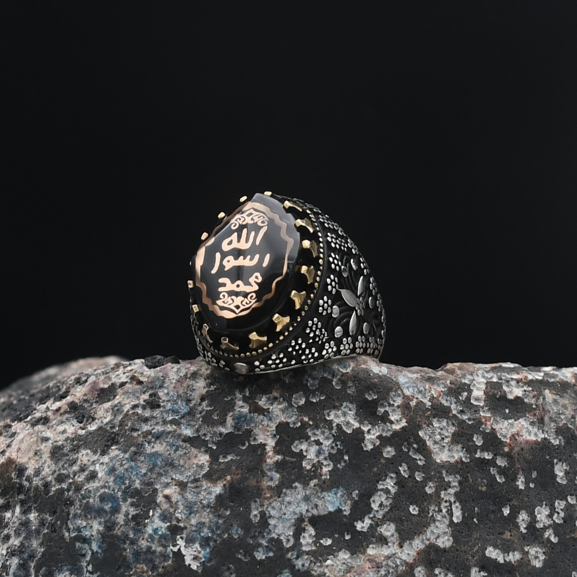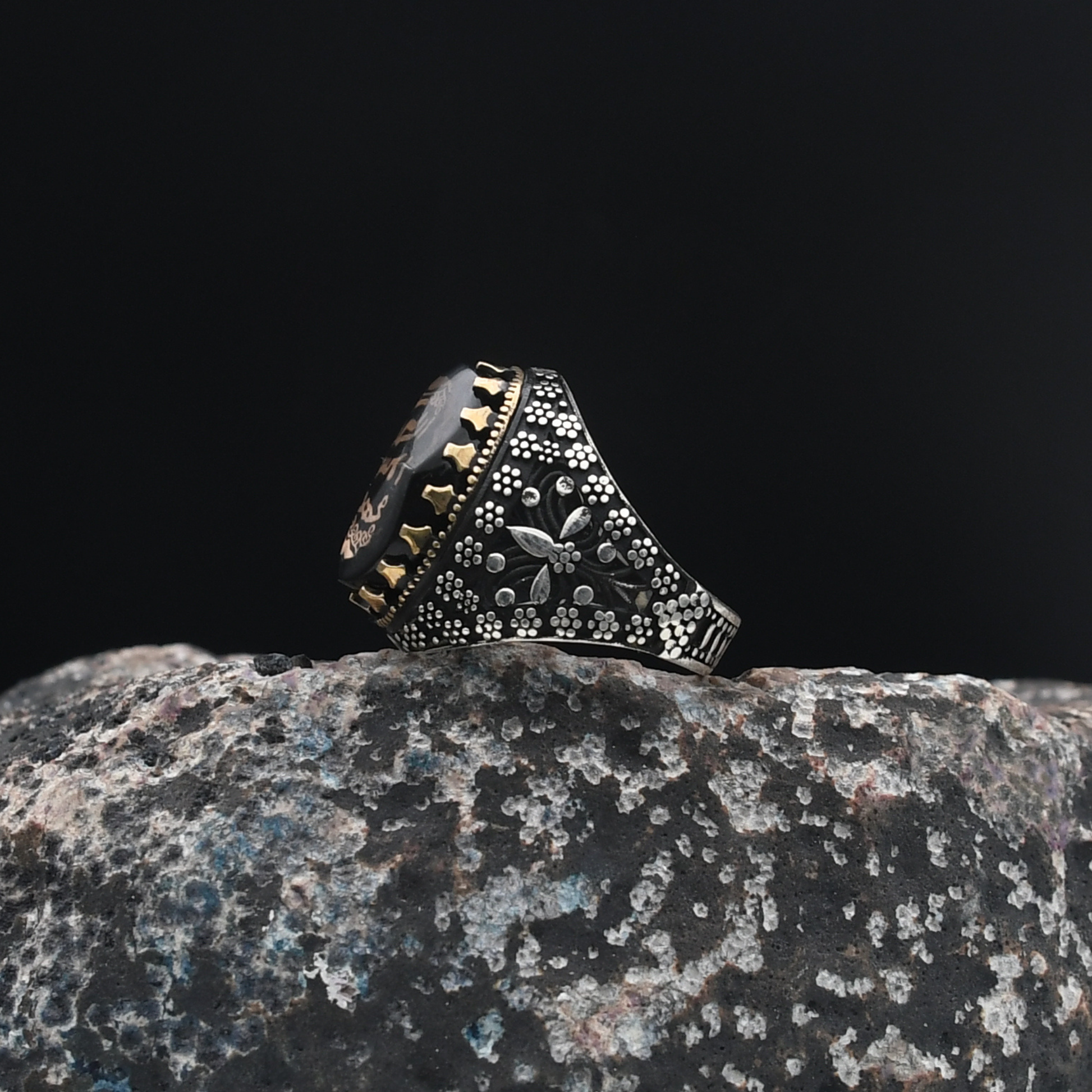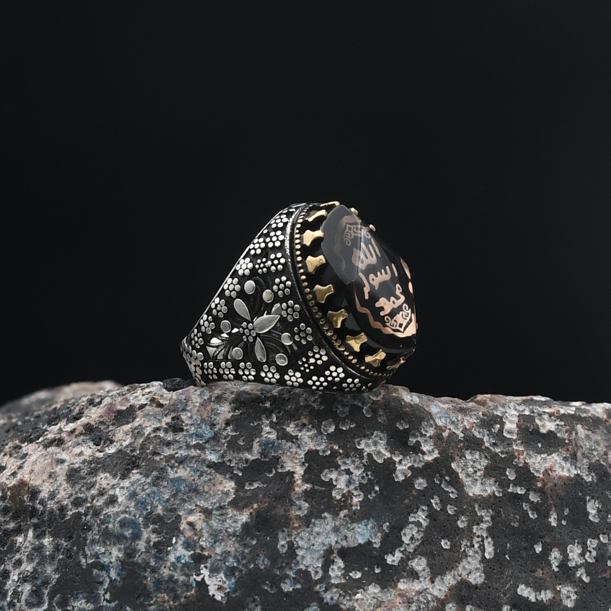Maneviyatın ve zarafetin simgesi Mühr-ü Şerif yazısı 🕋, bu yüzüğe derin bir anlam kazandırırken; merkezdeki sıkma kehribar taşı 🧿 doğal ışıltısıyla göz kamaştırıyor. Kehribar taşının sakinleştirici enerjisi ve özel tasarımıyla bu yüzük, hem ruhunuzu hem de stilinizi tamamlayacak. Geleneksel dokunuşları modern bir tarzla buluşturan bu aksesuar, benzersiz bir anlam taşıyor.