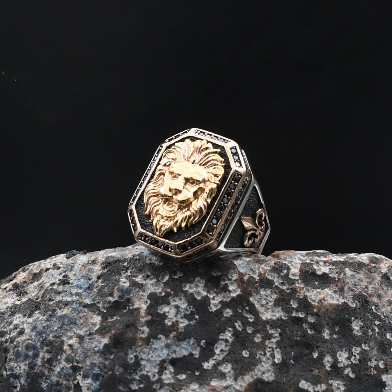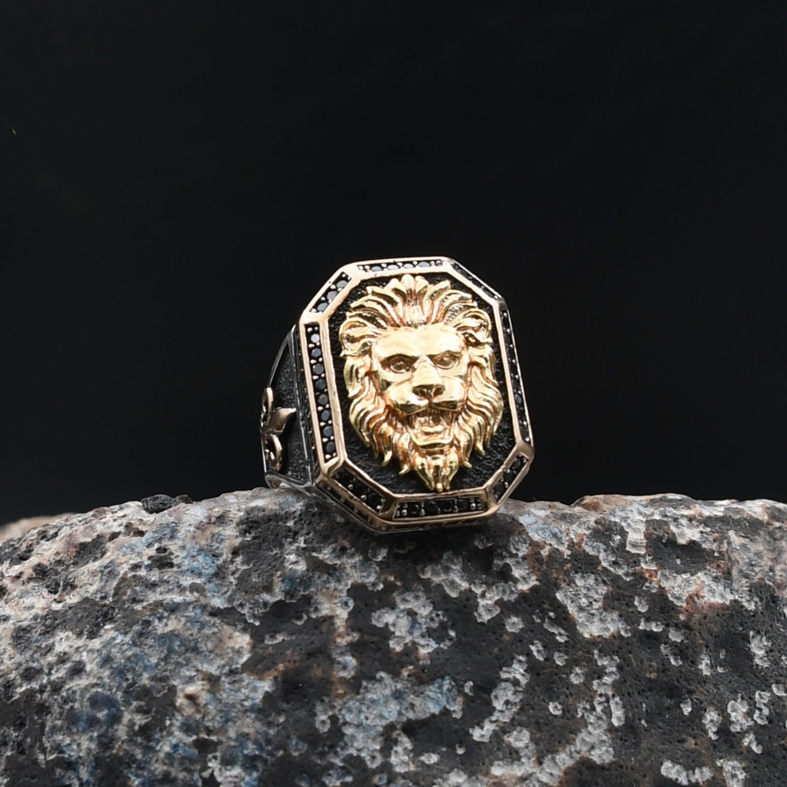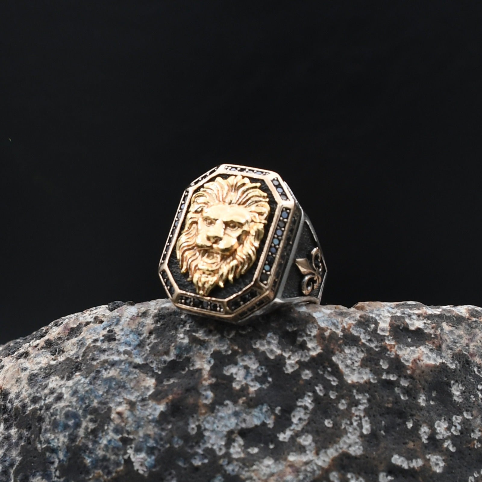Gücün, cesaretin ve liderliğin simgesi olan aslan figürüyle tasarlanan bu yüzük, kararlı duruşunu tarzına yansıtmak isteyen erkekler için özel olarak üretildi. Yaklaşık 13 gram ağırlığındaki model, rodaj kaplama kullanılmadan, saf 925 ayar gümüşten el işçiliğiyle üretilmiştir.