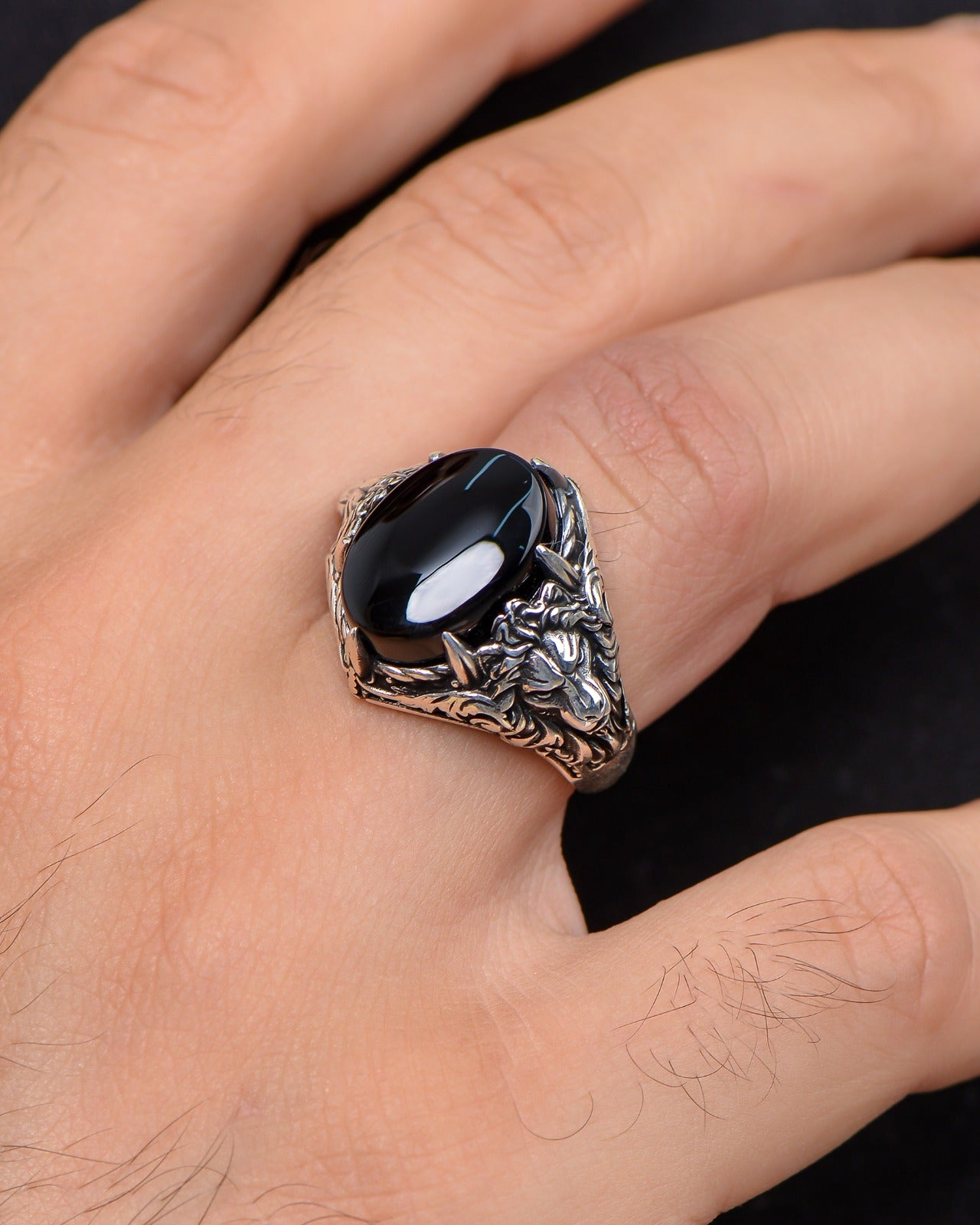 - Taş: Siyah oniks taşı, yüzüğe mistik bir hava katar.