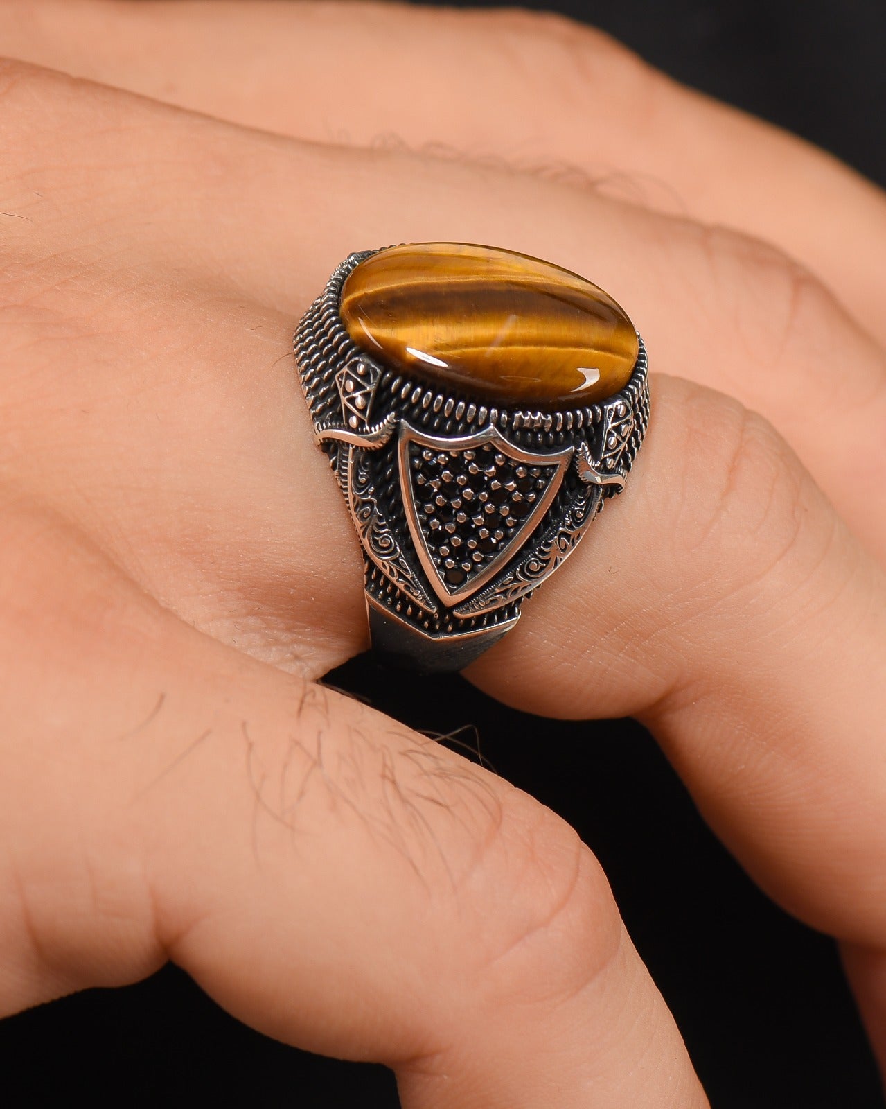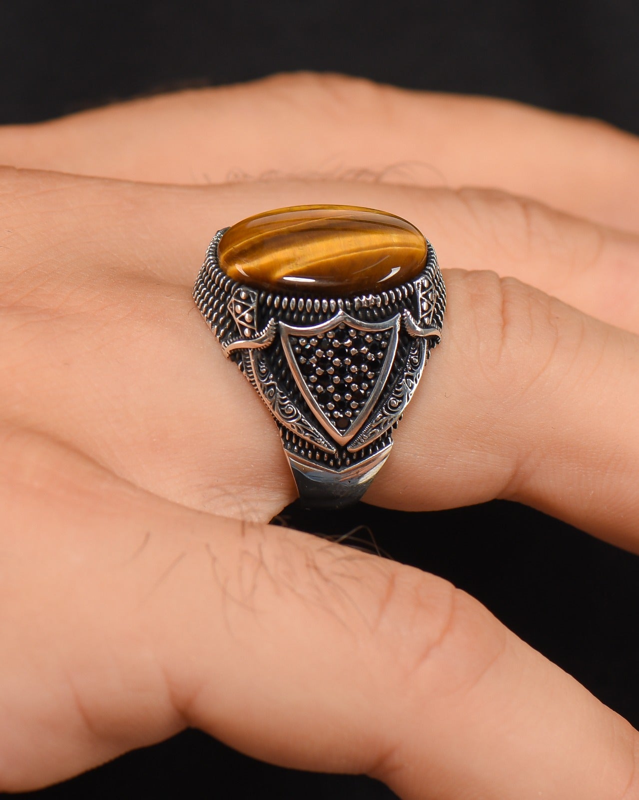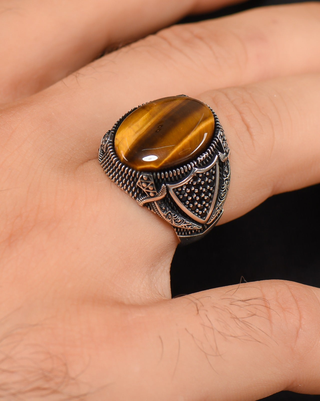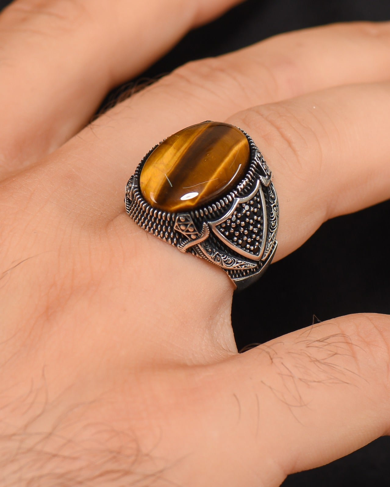 Kaplangözü taşlı bu erkek gümüş yüzük, doğanın gücünü ve miktarını bir araya getirerek özel günlerde harika bir hediye seçeneği sunuyor. Sevdiklerinizi veya kendinizi özel için ideal bir tercih. 🌿💫