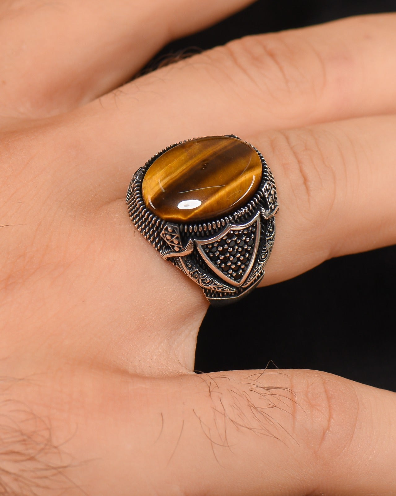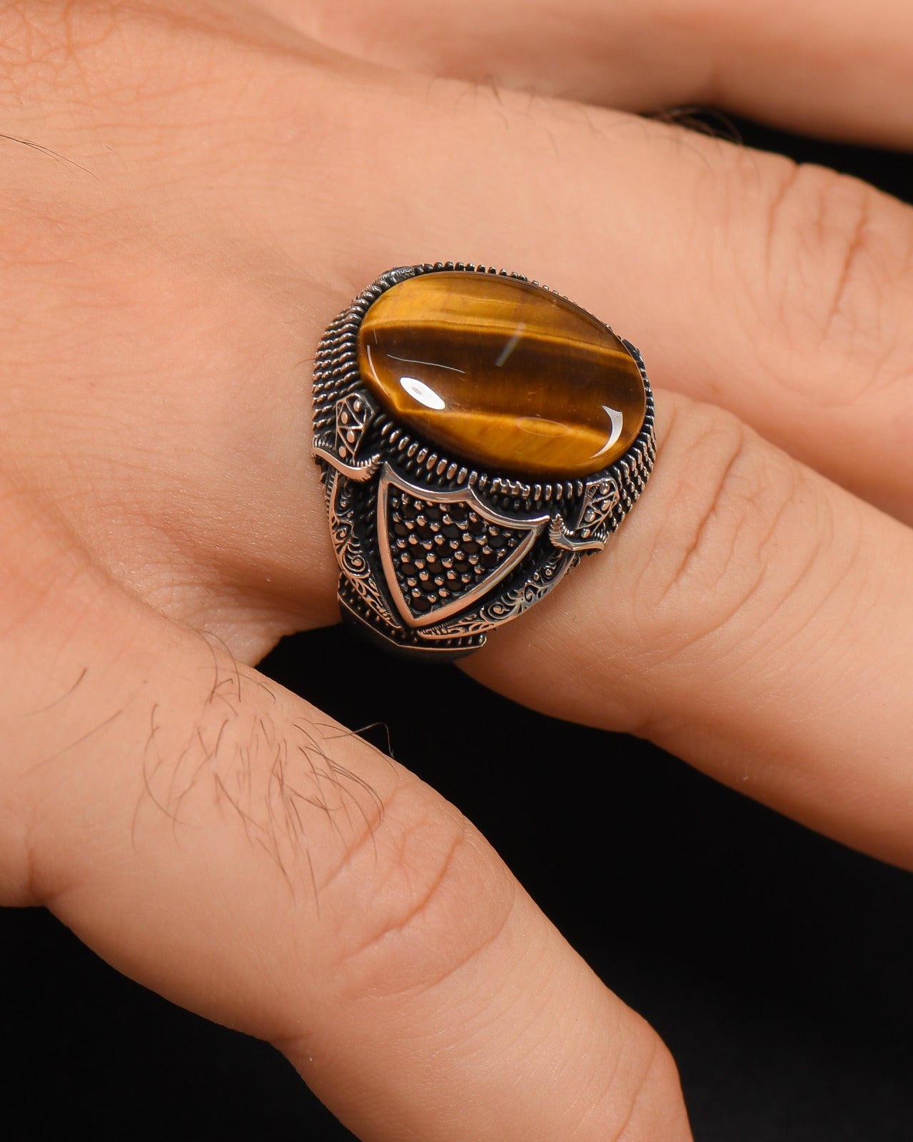 🐾 Kaplangözü Taşlı Erkek Gümüş Yüzük - 13 Gram 🐾