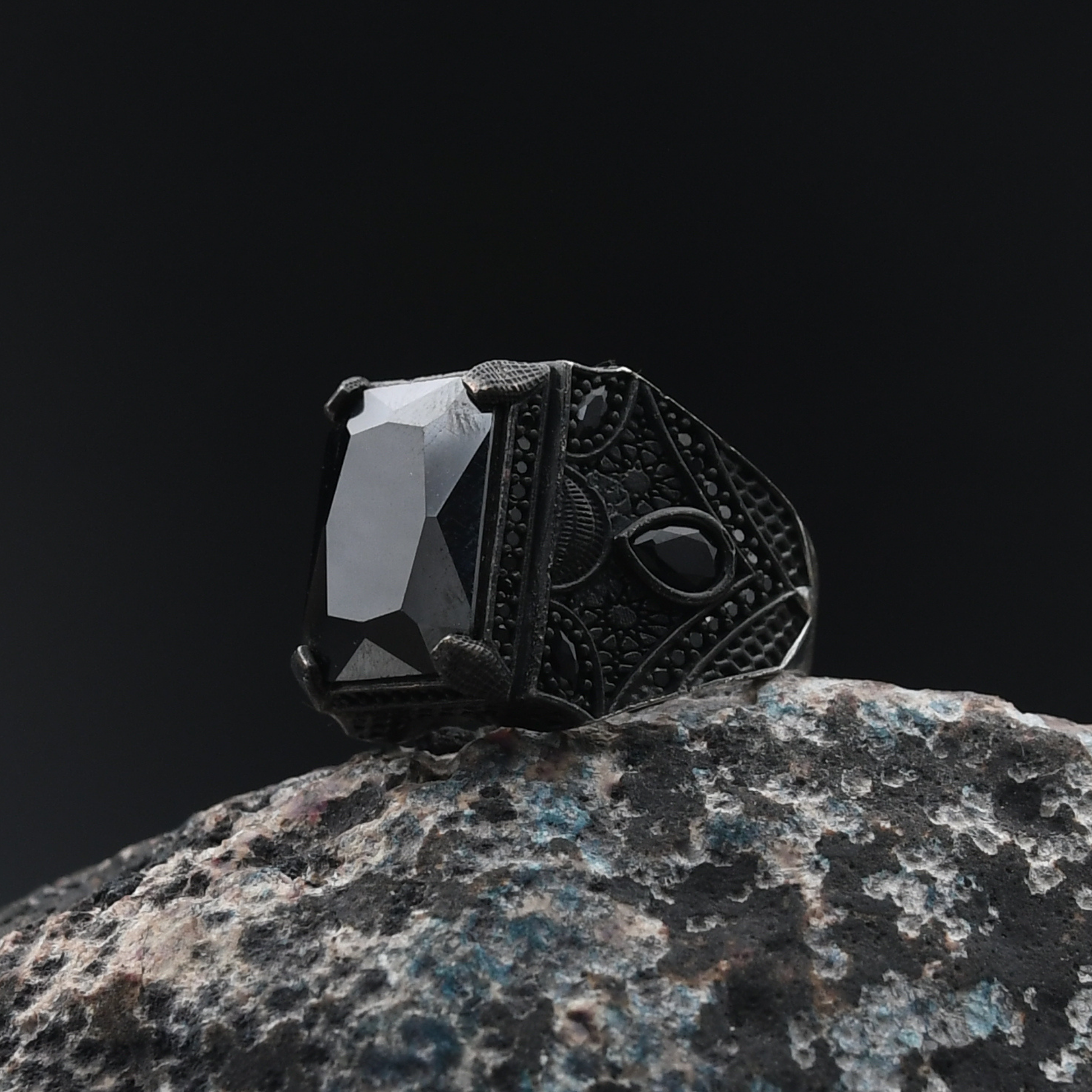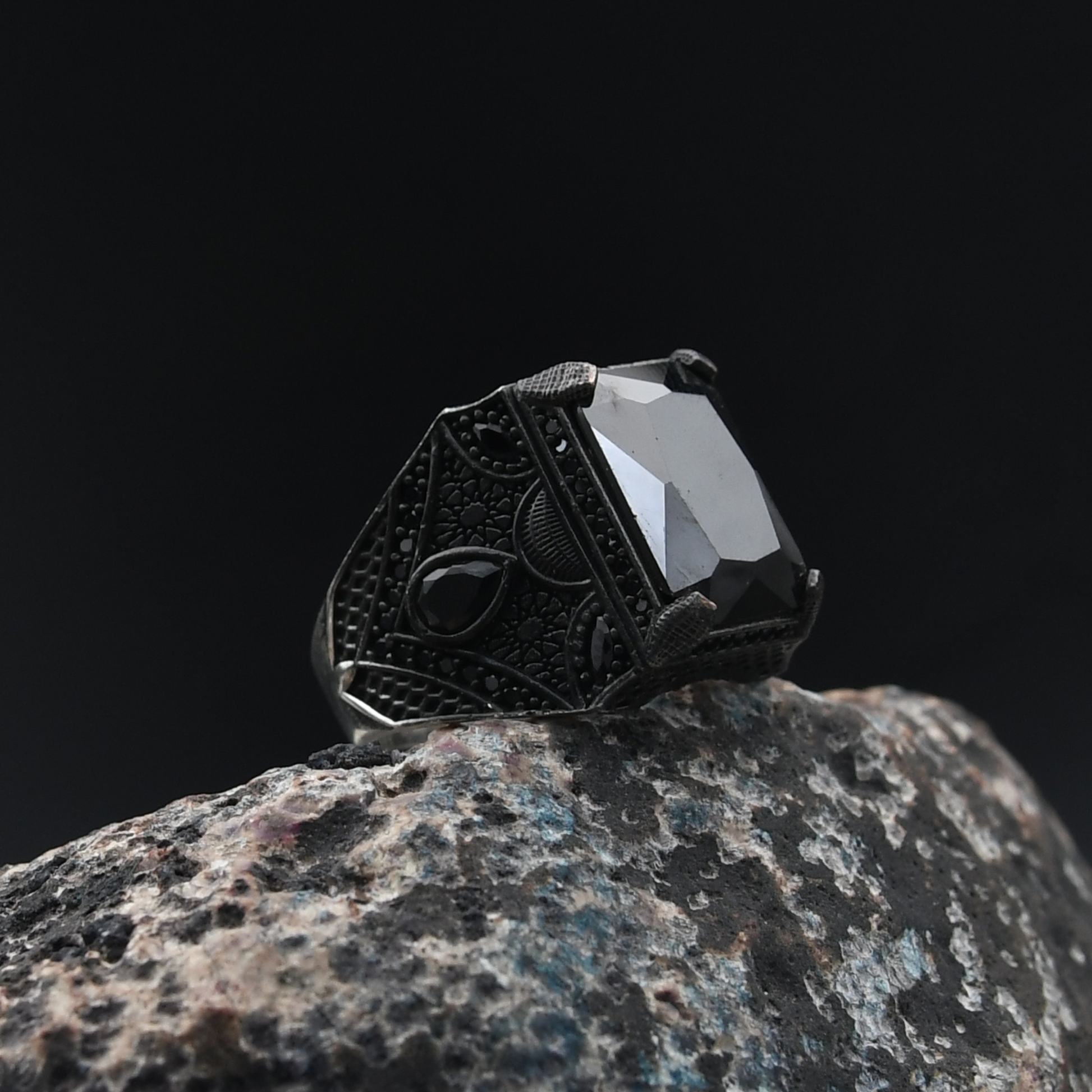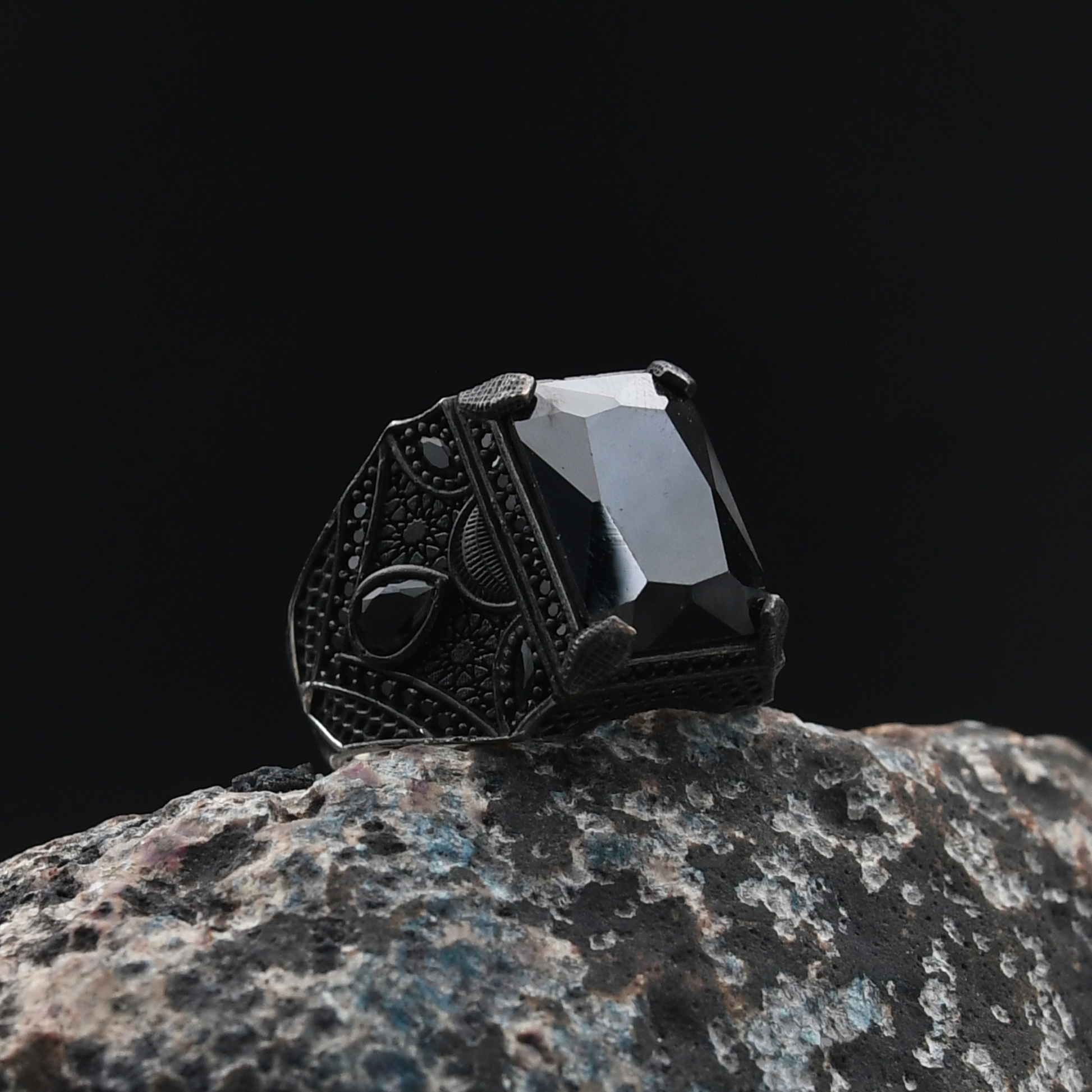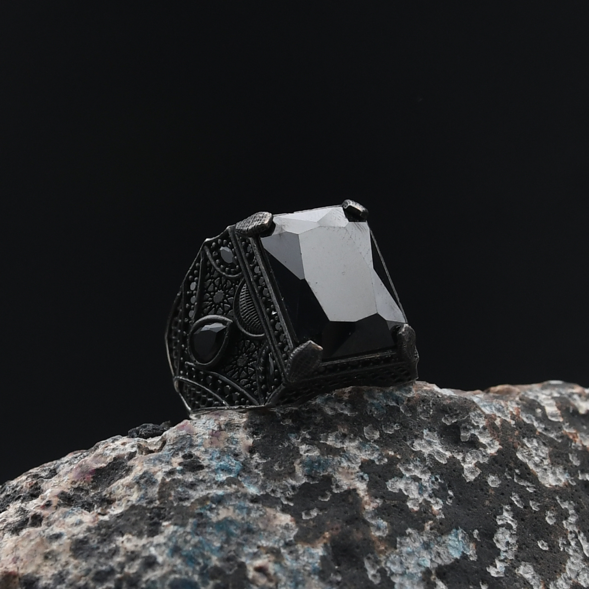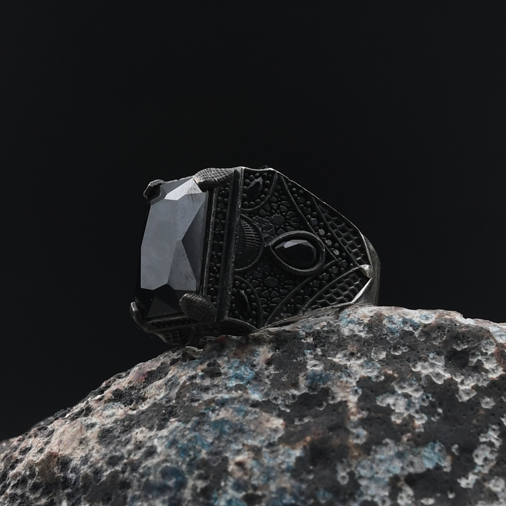 Kare Siyah Zirkon Taşlı Gümüş Yüzük