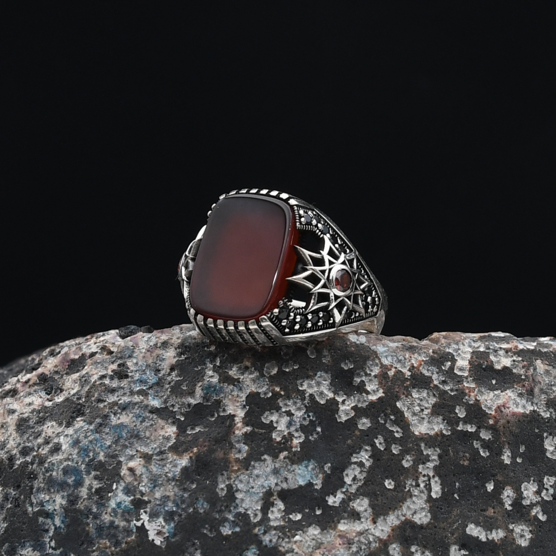 Kırmızı Akik Taşlı Gümüş Yüzük
