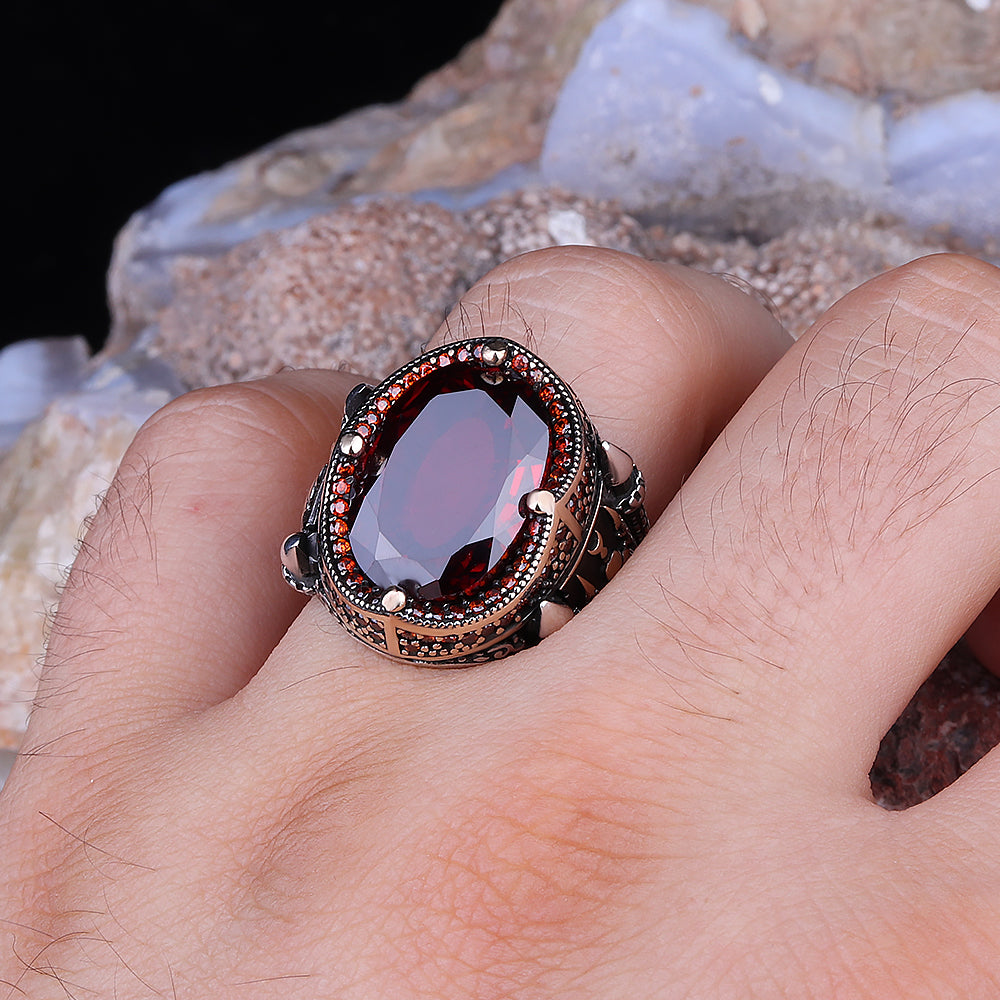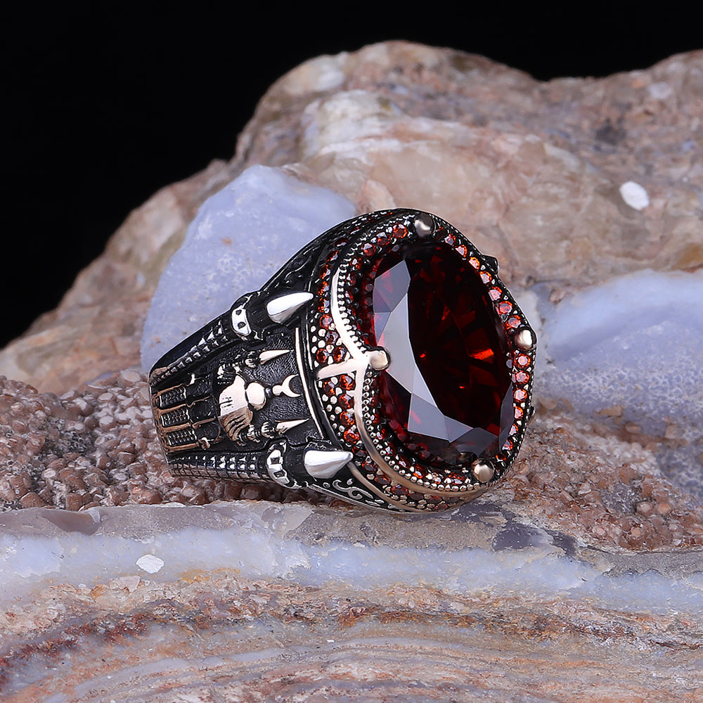 Göz Alıcı Kırmızı Zirkon Taşlı Erkek Yüzük: Sonsuz Stil ve Zarafet!