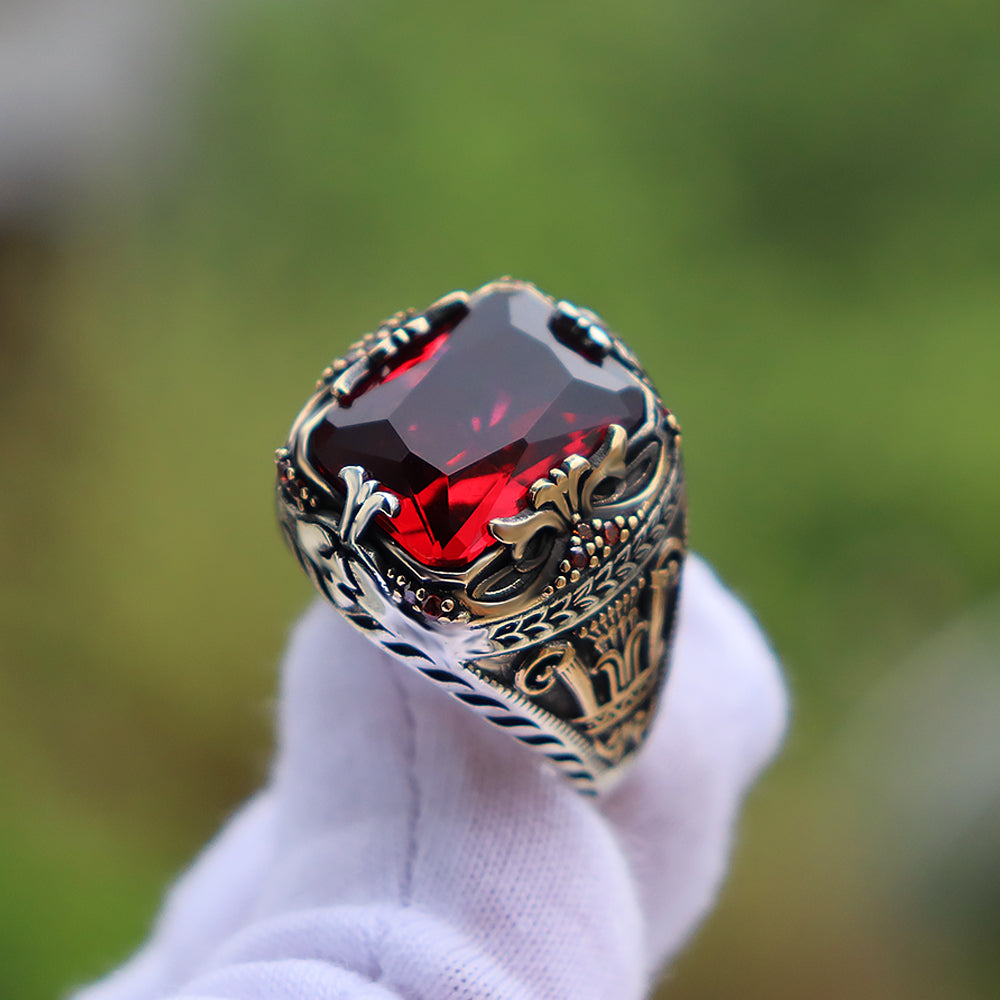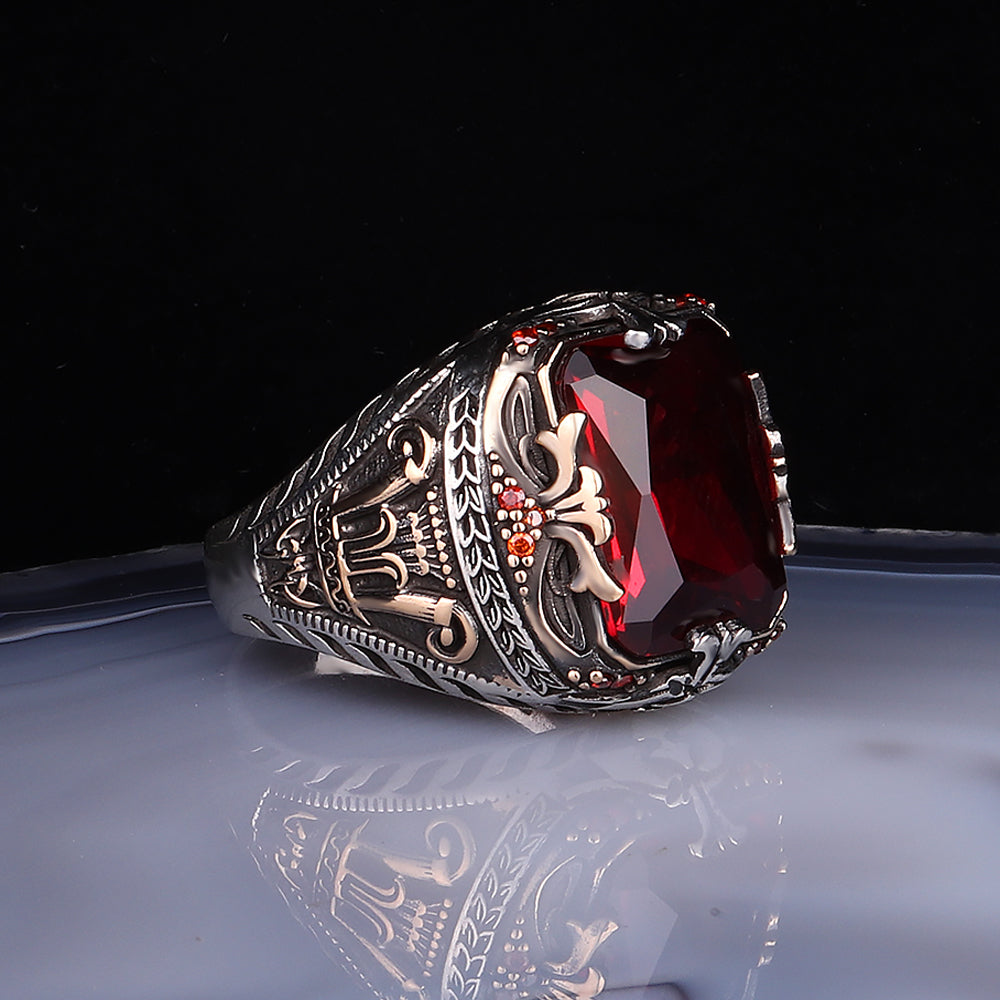 Kırmızı Zirkon Taşlı Erkek Yüzük (YY-018)
