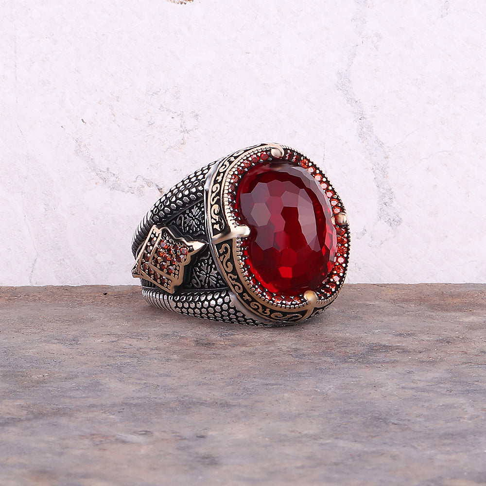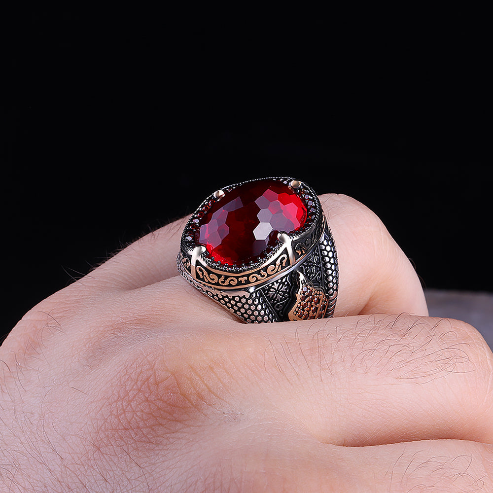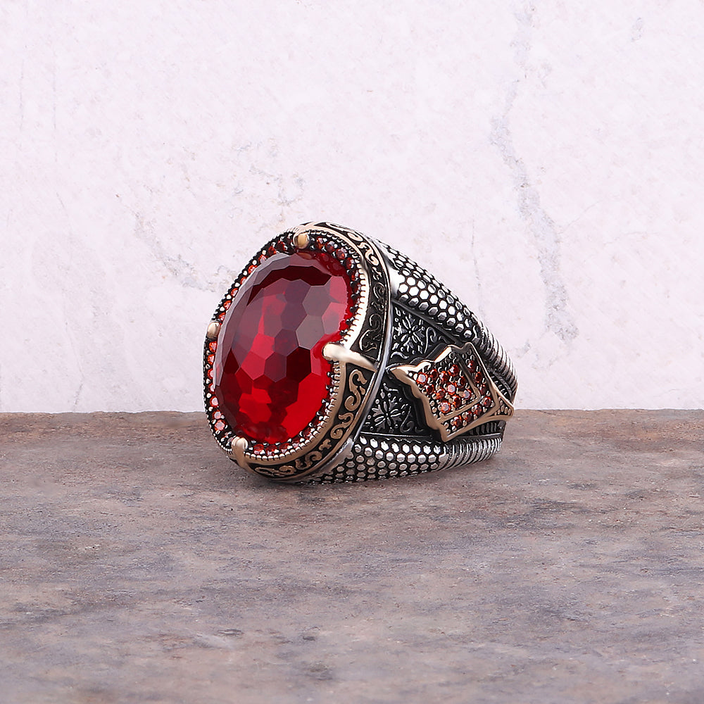 Kırmızı Zirkon Taşlı Erkek Yüzük (YY-023)