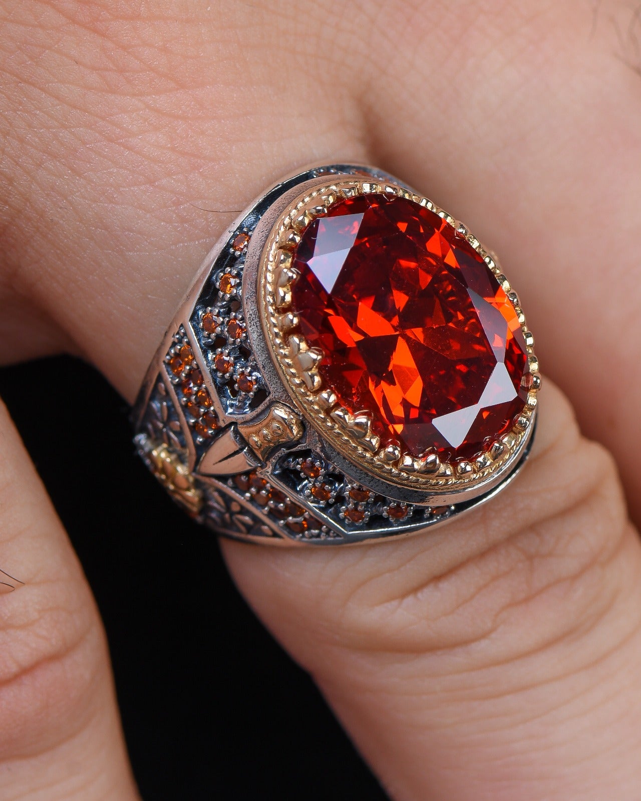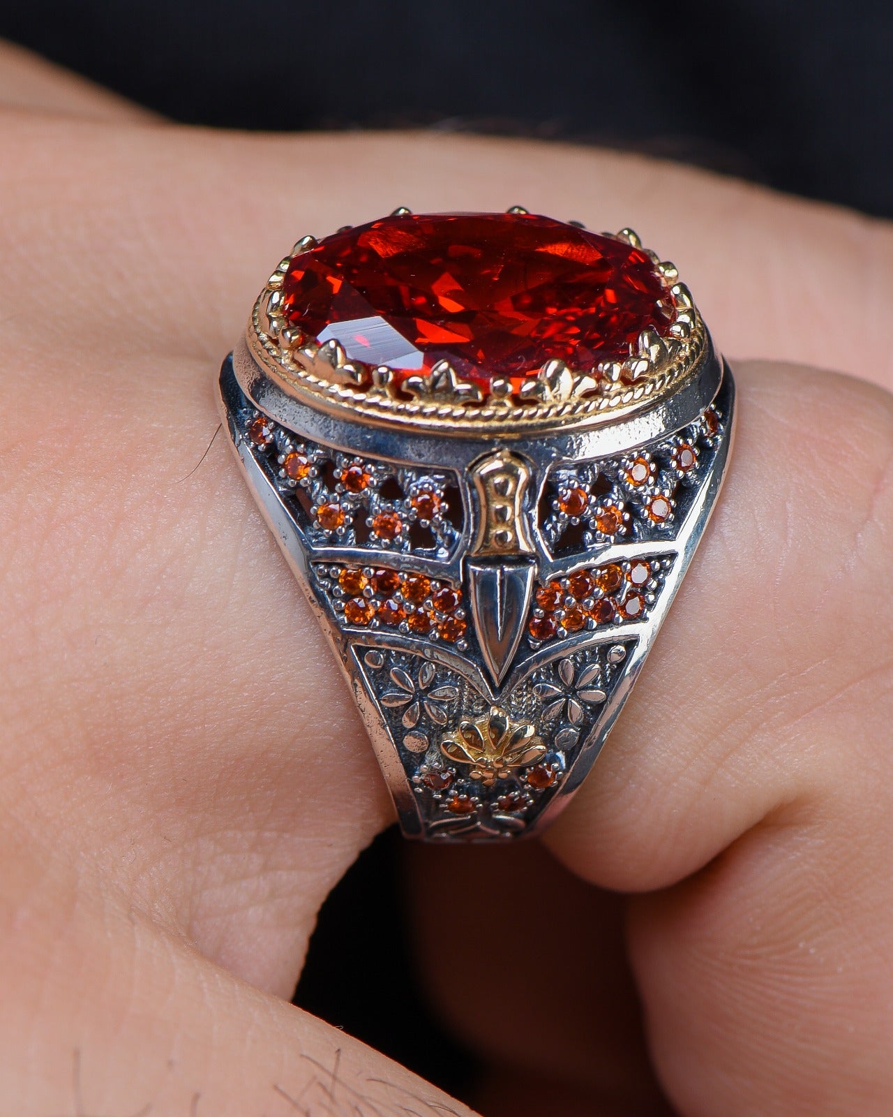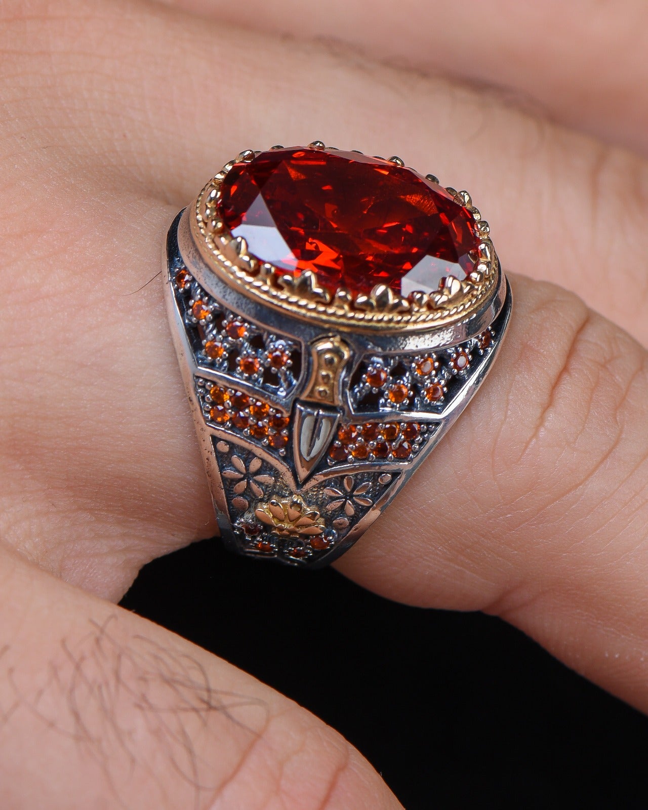 🔥 Göz alıcı kırmızı zirkon taşıyla tasarlanan bu yüzük, stilinizi öne çıkaracak! Yüksek kaliteli 925 ayar gümüşten üretilen yüzüğümüz, 16,5 gram ağırlığıyla hem sağlam hem de zarif bir duruş sunar. Günlük kullanıma uygun ve uzun ömürlü olan bu şık aksesuarla her zaman fark yaratın. 💍