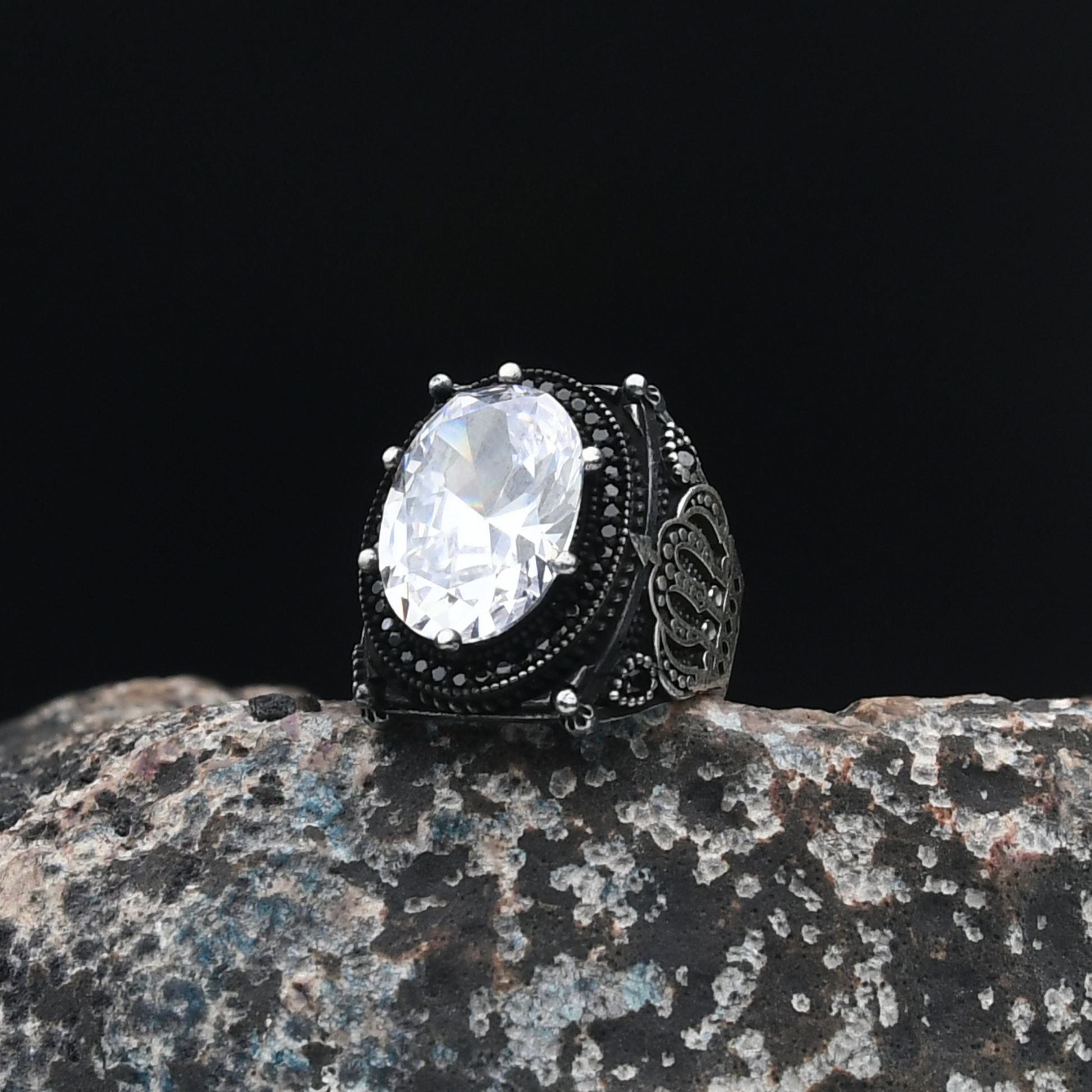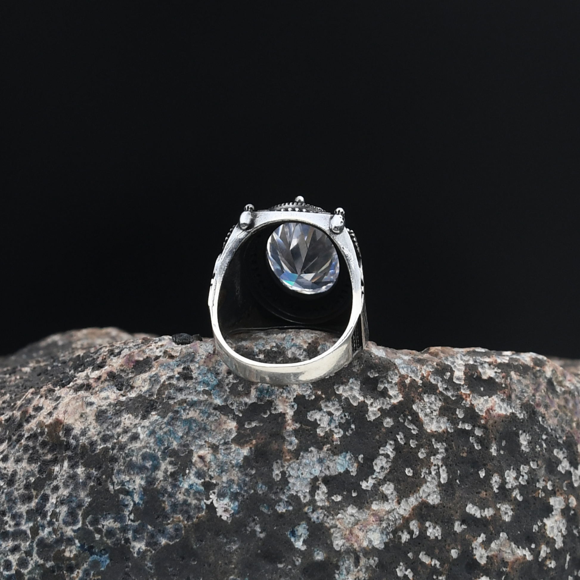 Tamamı 925 ayar saf gümüşten üretilen yüzük, ortalama 13 gram ağırlığında olup elde dengeli ve kaliteli bir his sunar. Gündelik kullanımda olduğu kadar özel günlerde de kombinlerinizi tamamlayan şık bir aksesuar olarak öne çıkar.