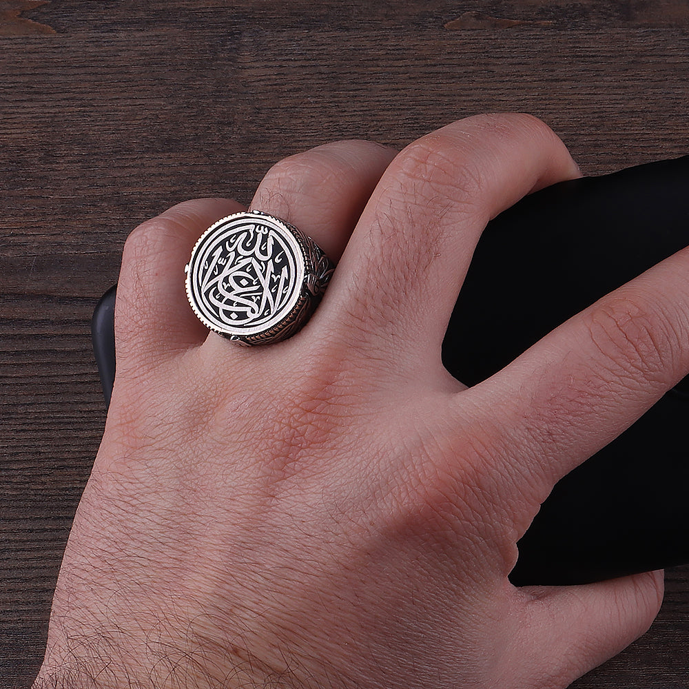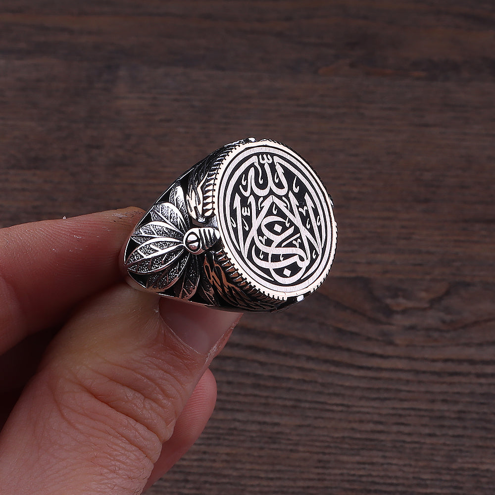 La Galibe İllallah İşlemeli 925 Ayar Erkek Gümüş Yüzük (YY-026)