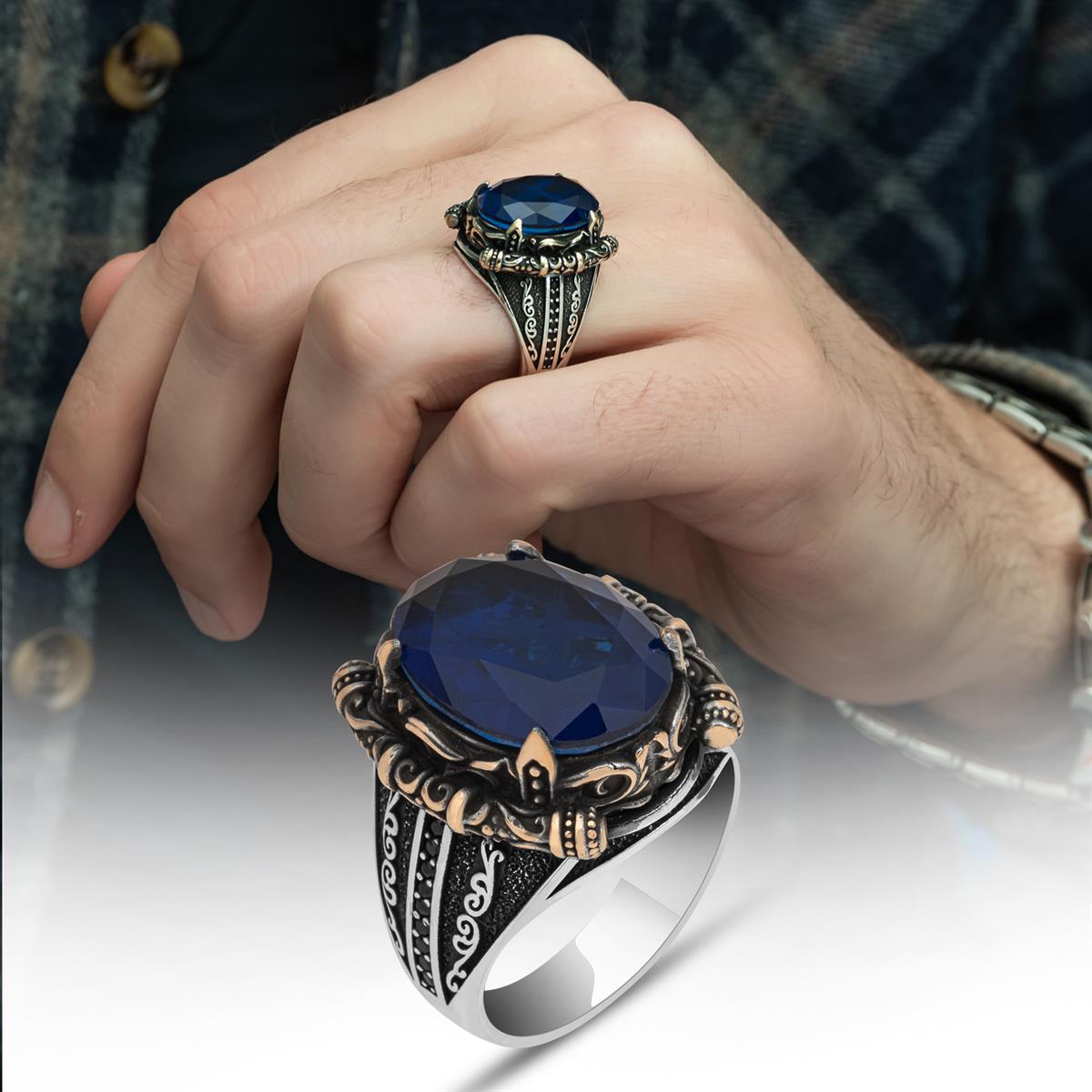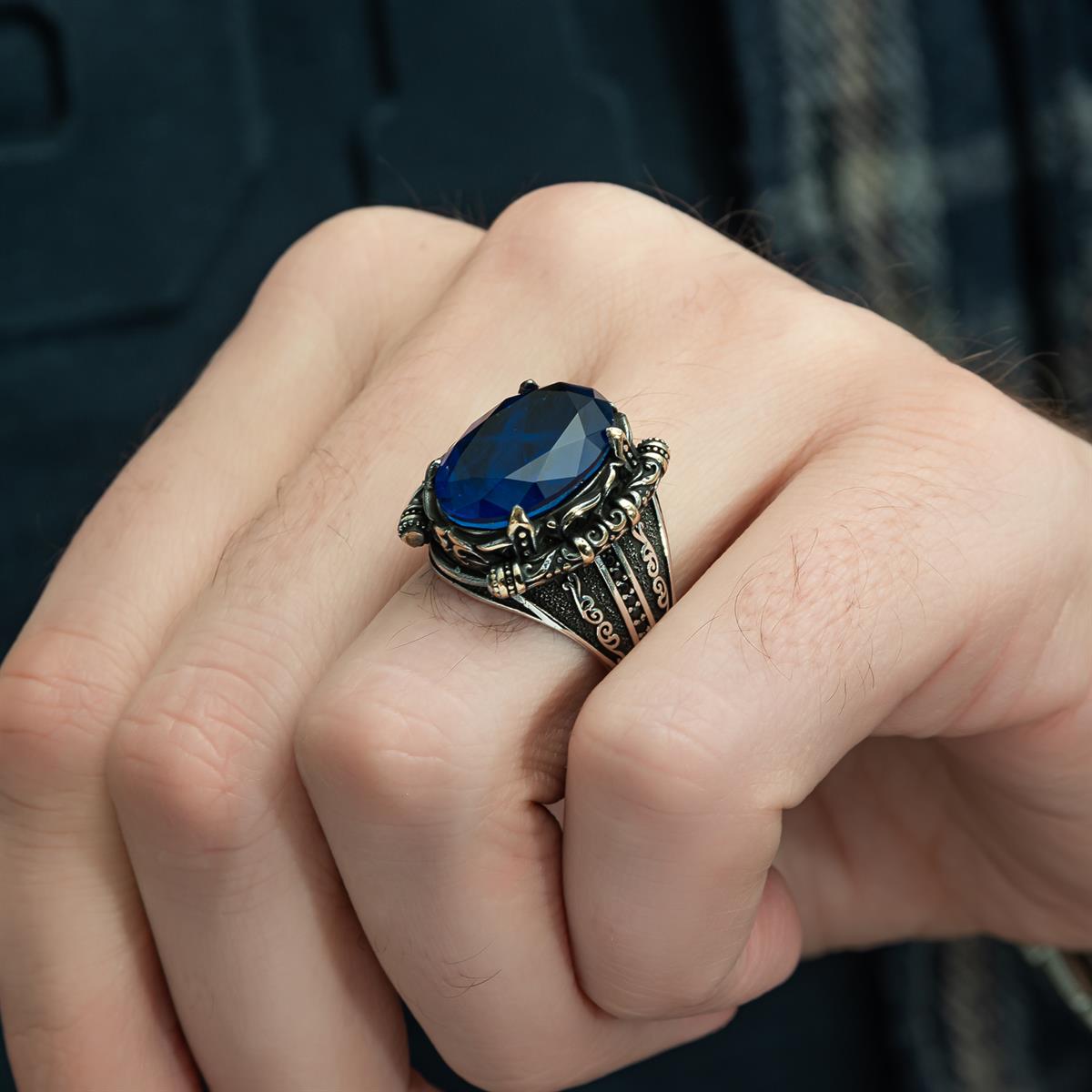 Lacivert Paraiba Taşlı Erkek Gümüş Yüzük (YY-027)