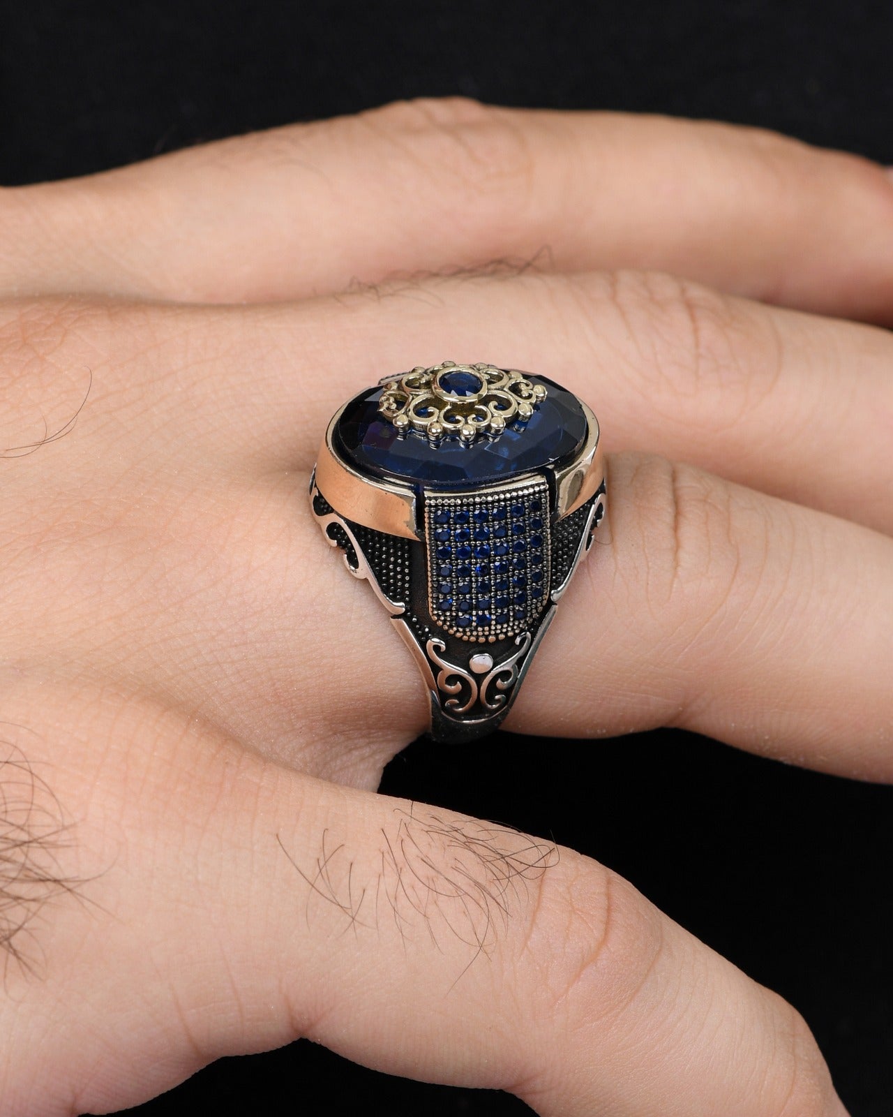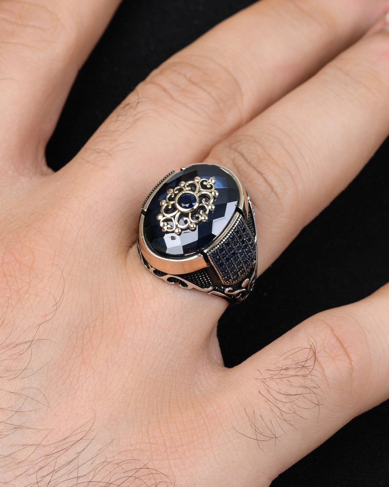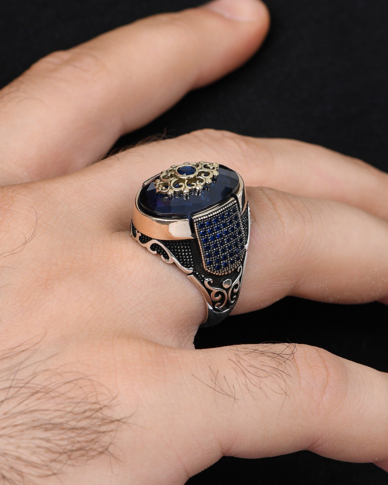 🌈 Hem Şıklık Hem İhtişam Arayan Erkekler İçin Mükemmel Bir Seçenek! Lacivert zirkon taşı, yüzüğünüze özel bir hava katarak her ortamda dikkat çekmenizi sağlar.