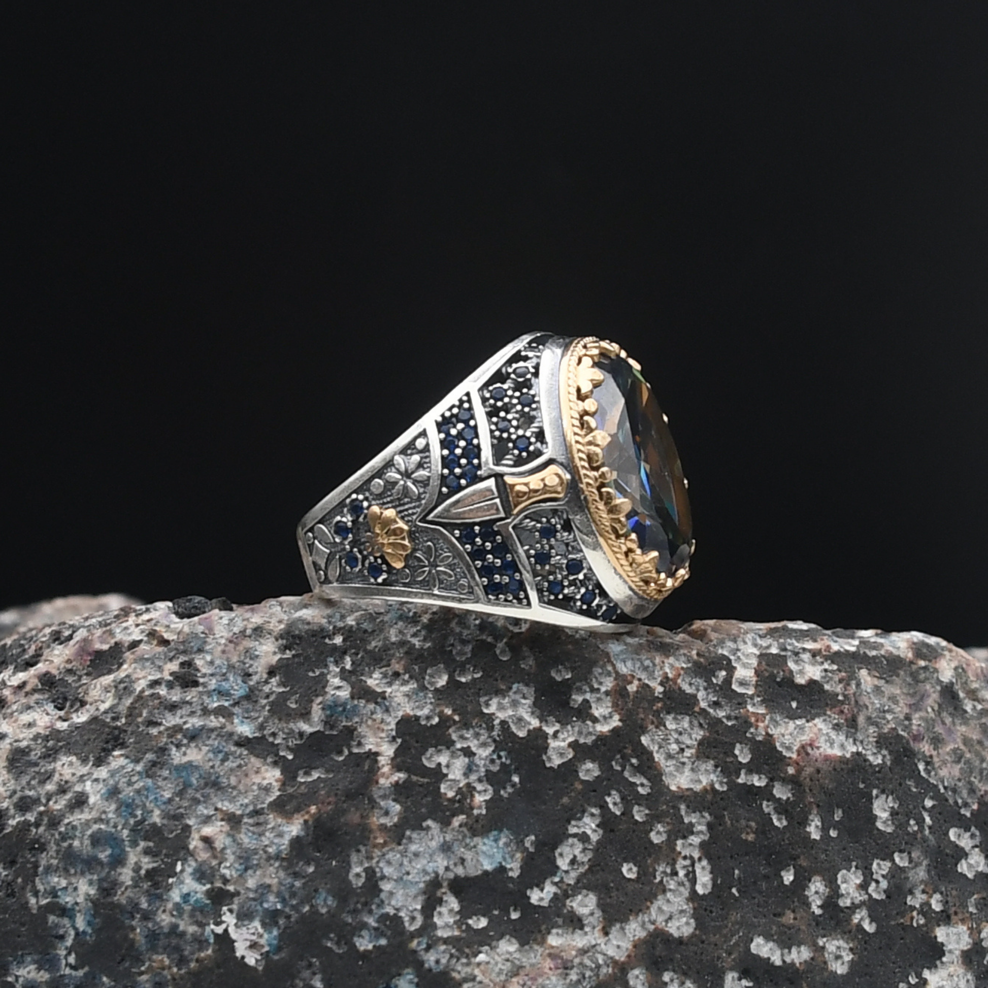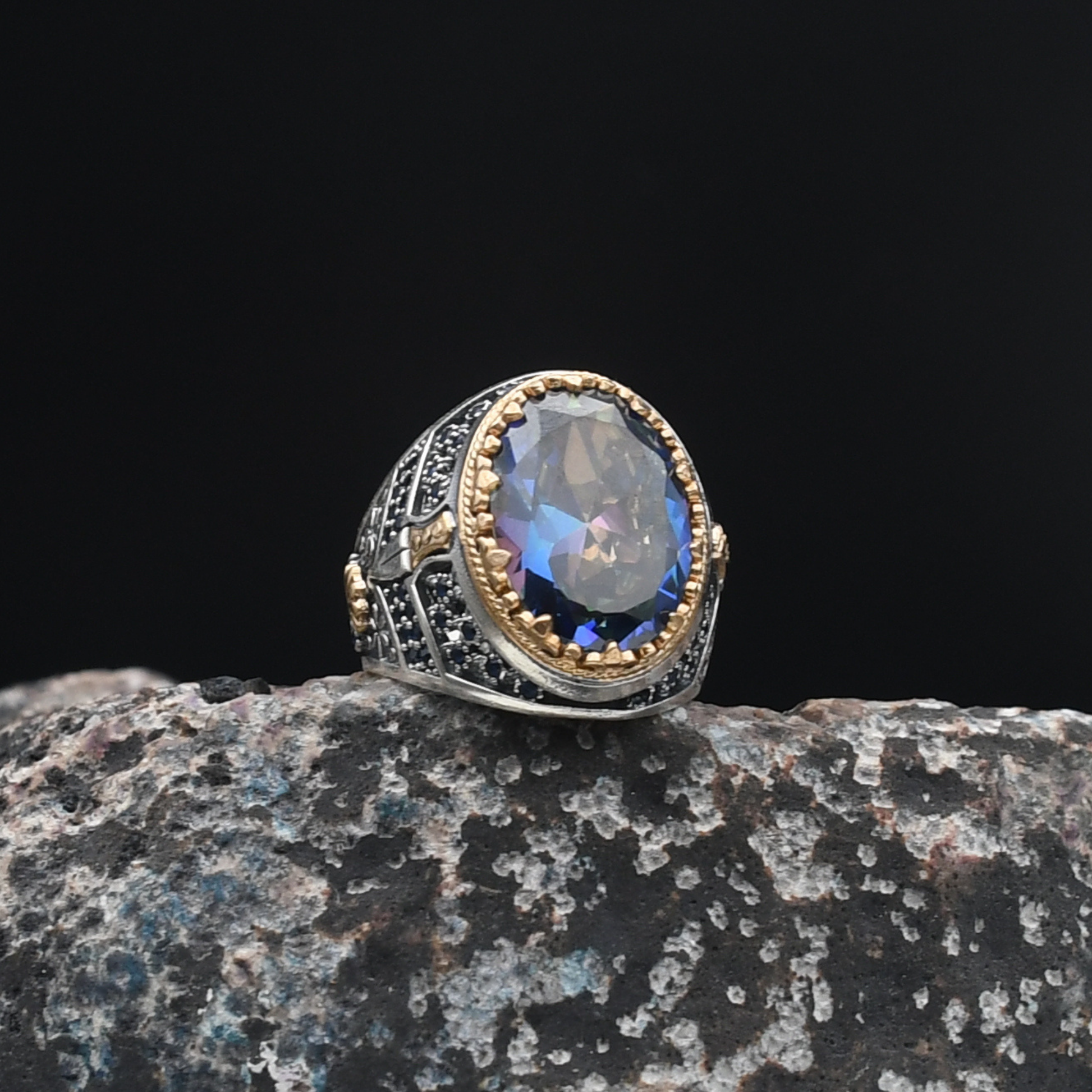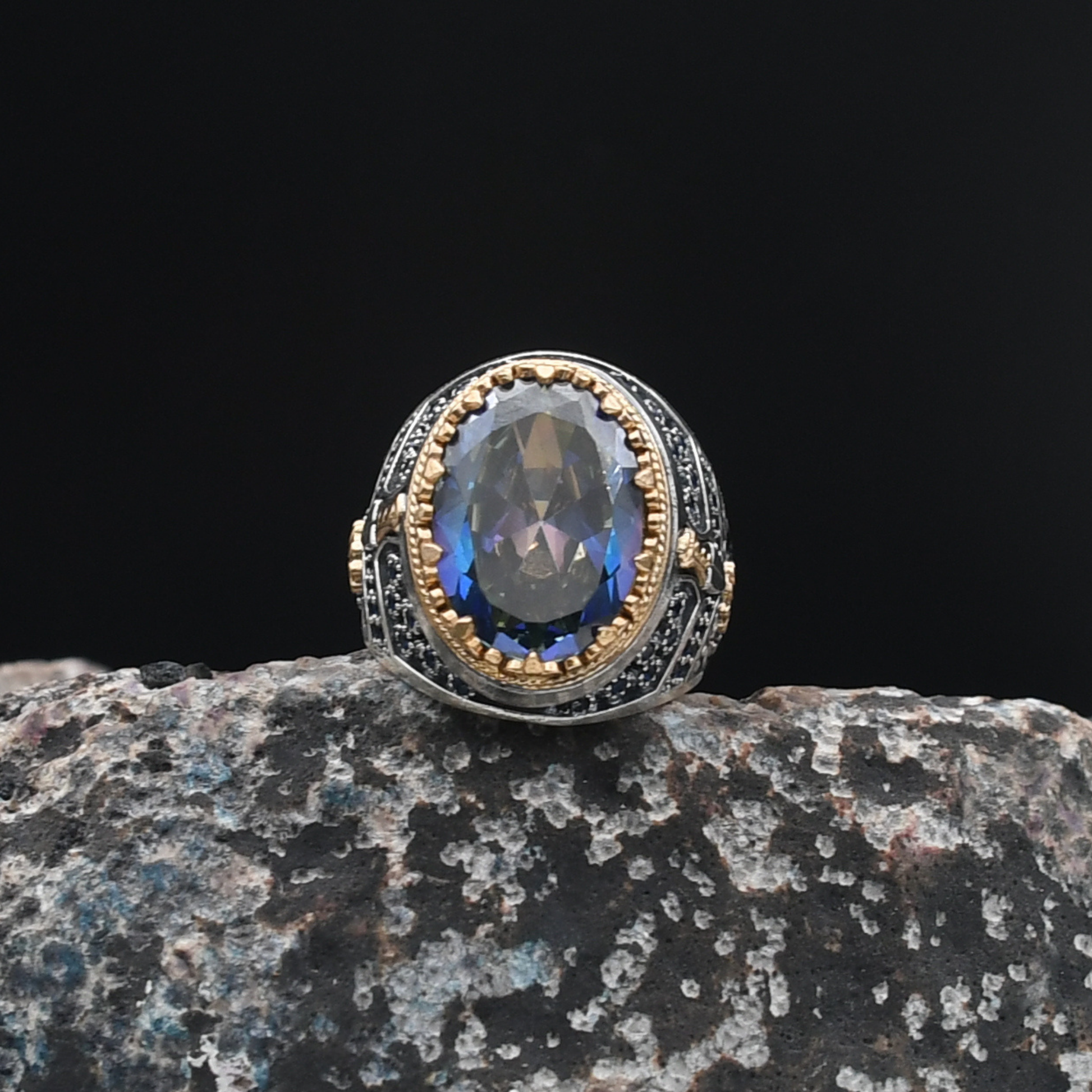🌈 Mistik Topaz Taşlı 925 Ayar Gümüş Erkek Yüzük 💎
