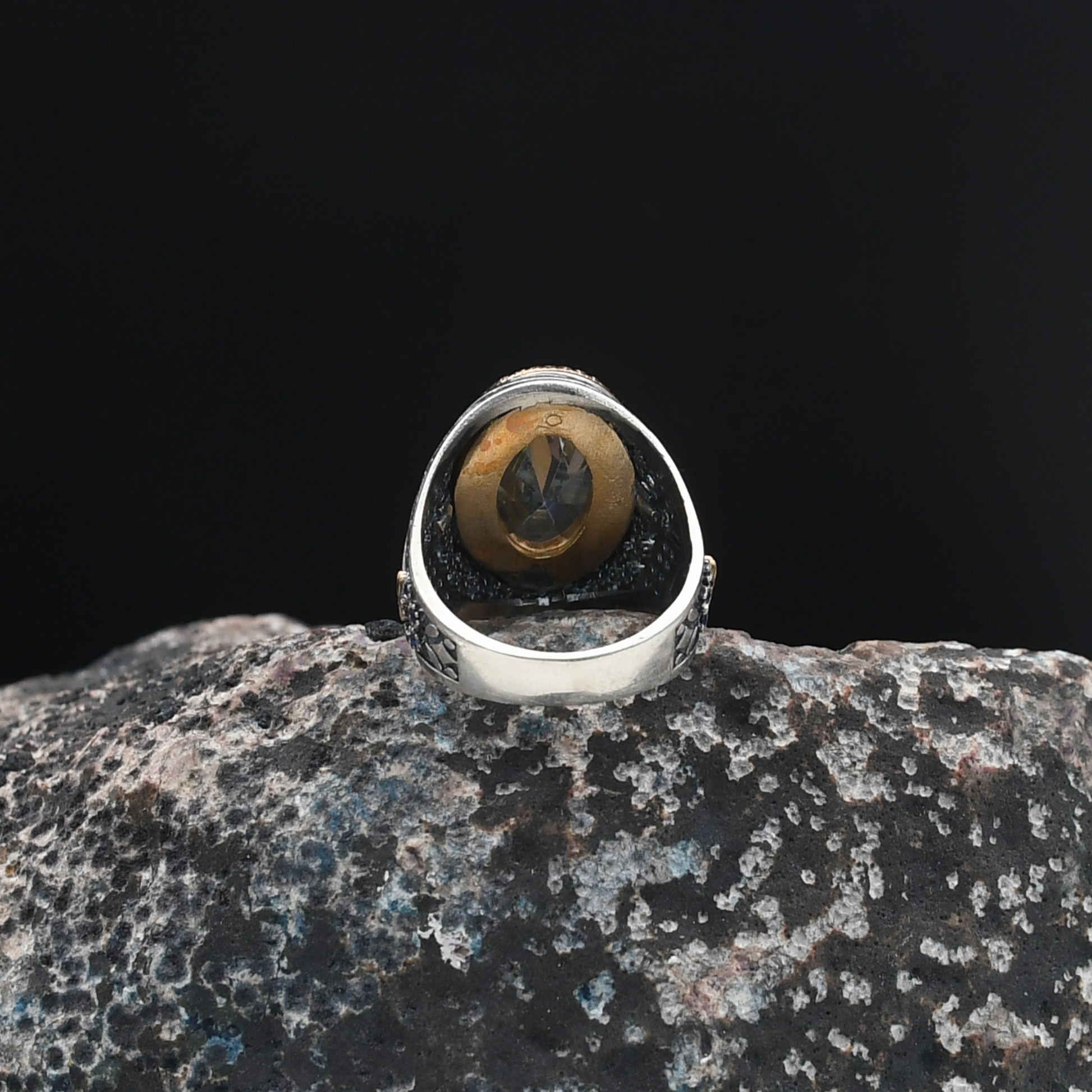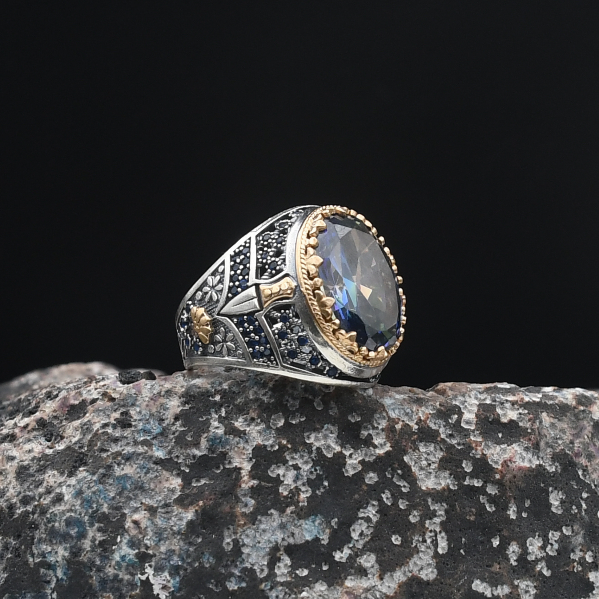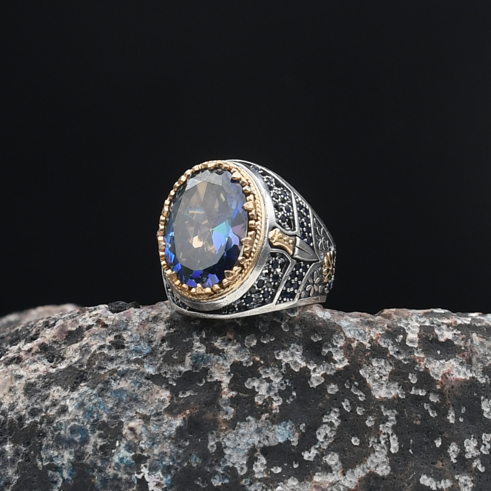 🌈 Mistik Topaz Taşlı 925 Ayar Gümüş Erkek Yüzük 💎