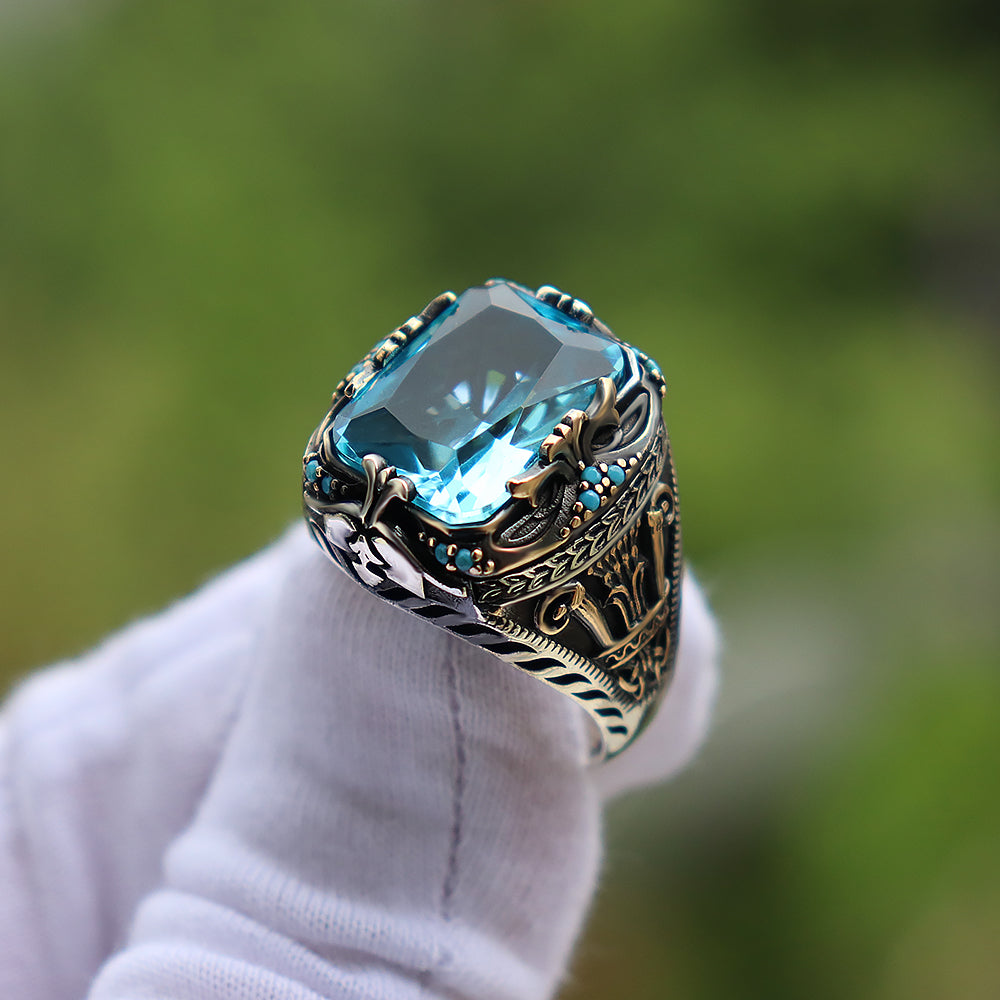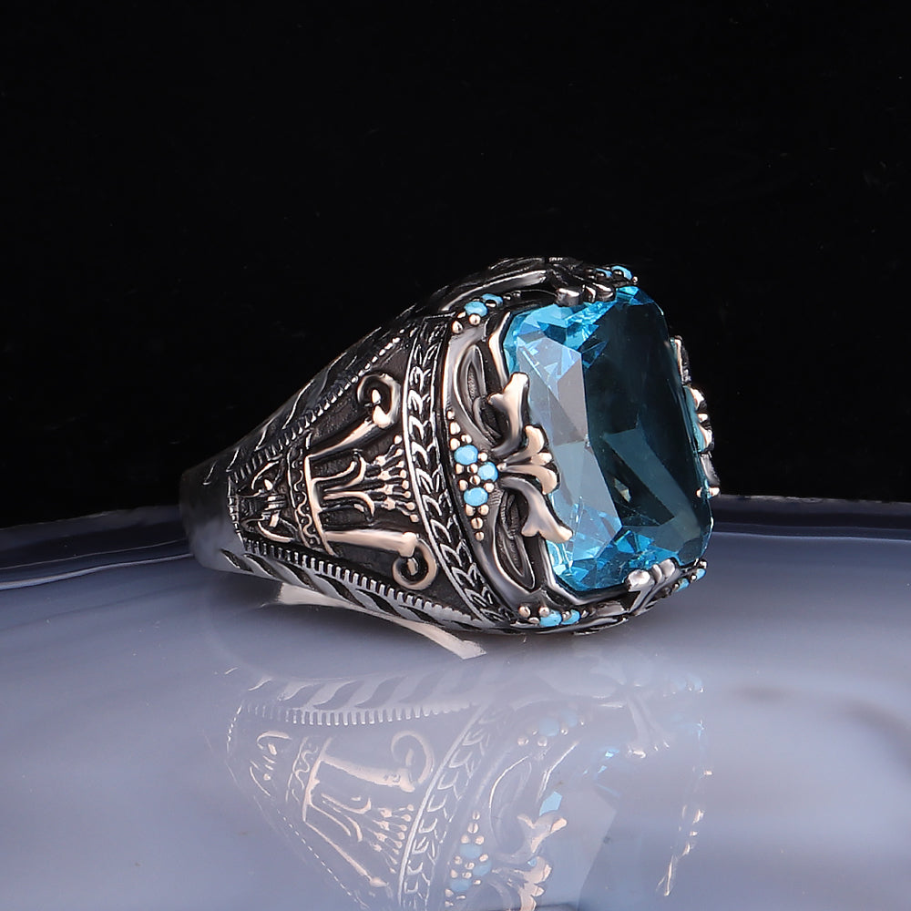 Mavi Zirkon Taşlı Erkek Gümüş Yüzük (YY-022)