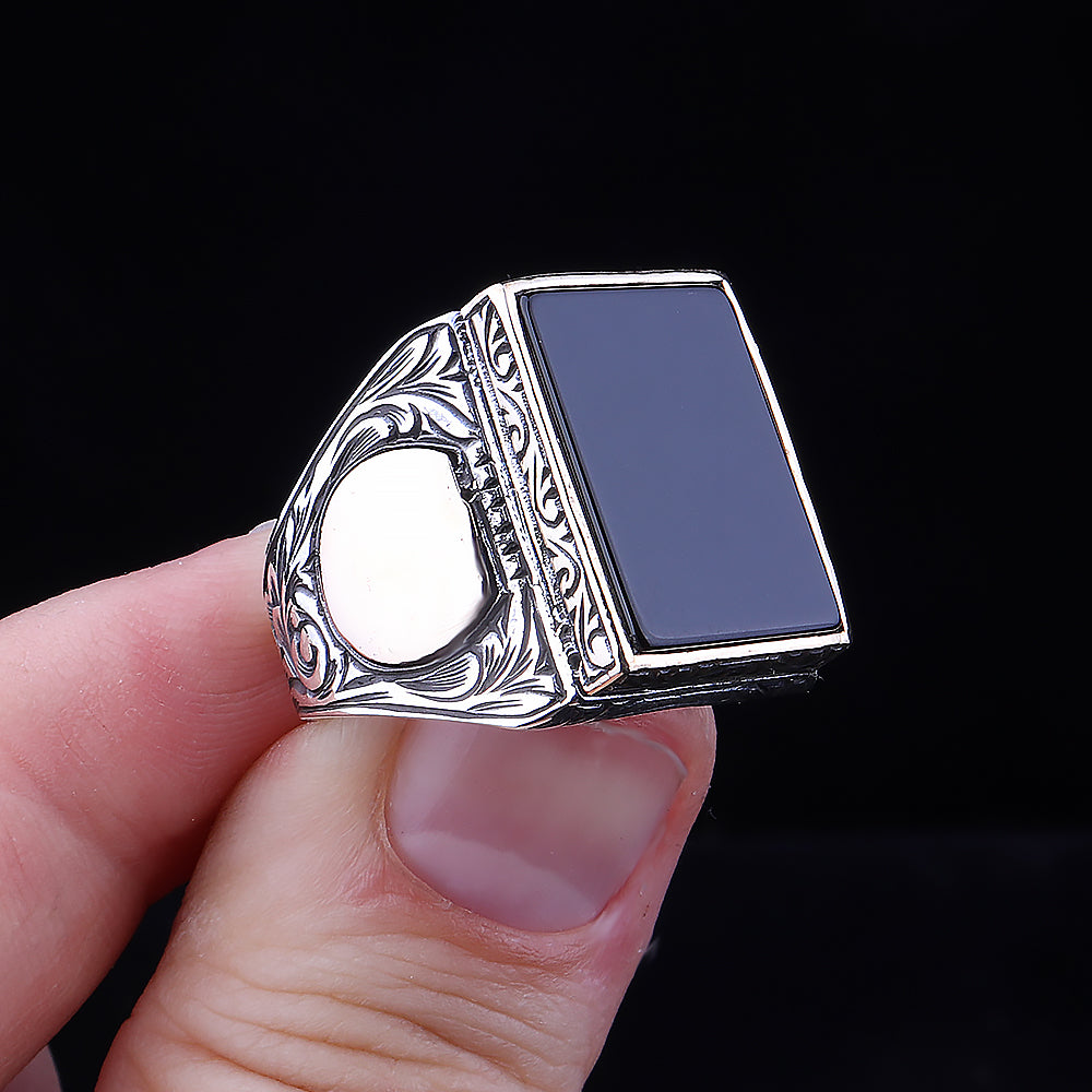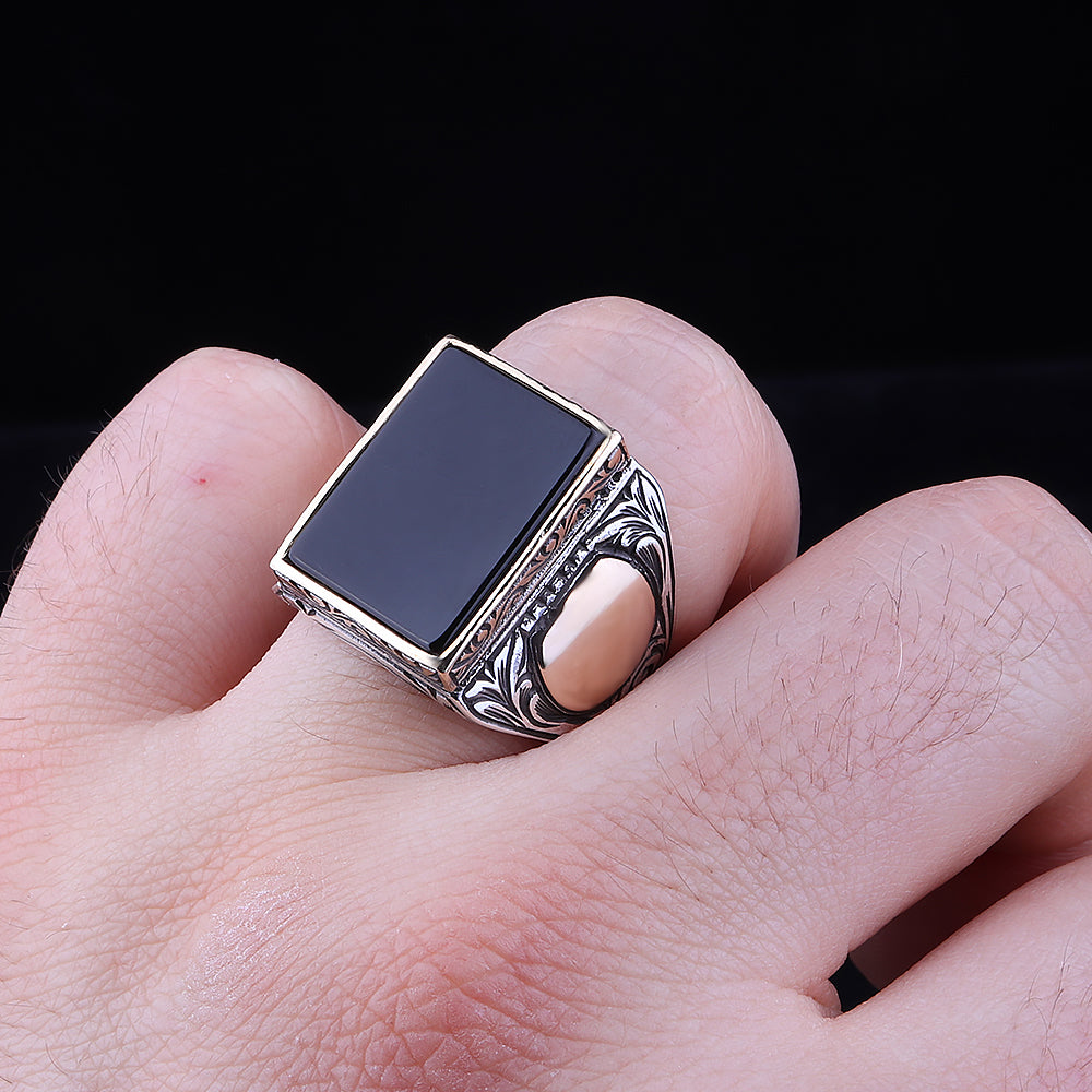 Hemen siparişinizi verin ve tarzınızı Siyah Oniks Taşlı Erkek Yüzükle taçlandırın! 💍✨