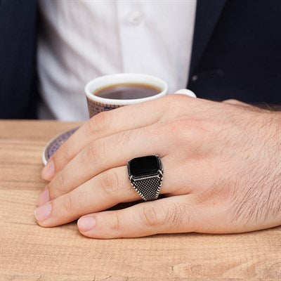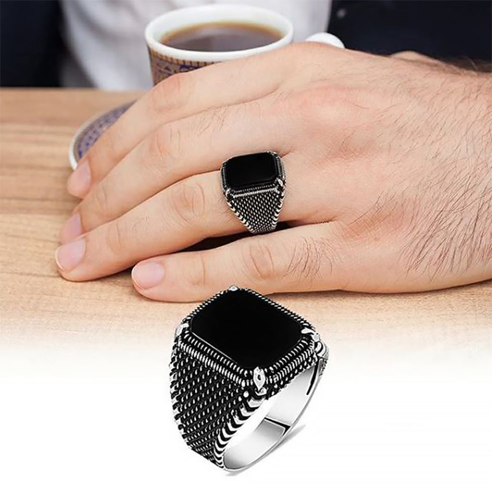 Hemen siparişinizi verin ve tarzınızı Siyah Oniks Taşlı Erkek Yüzükle taçlandırın! 💍✨