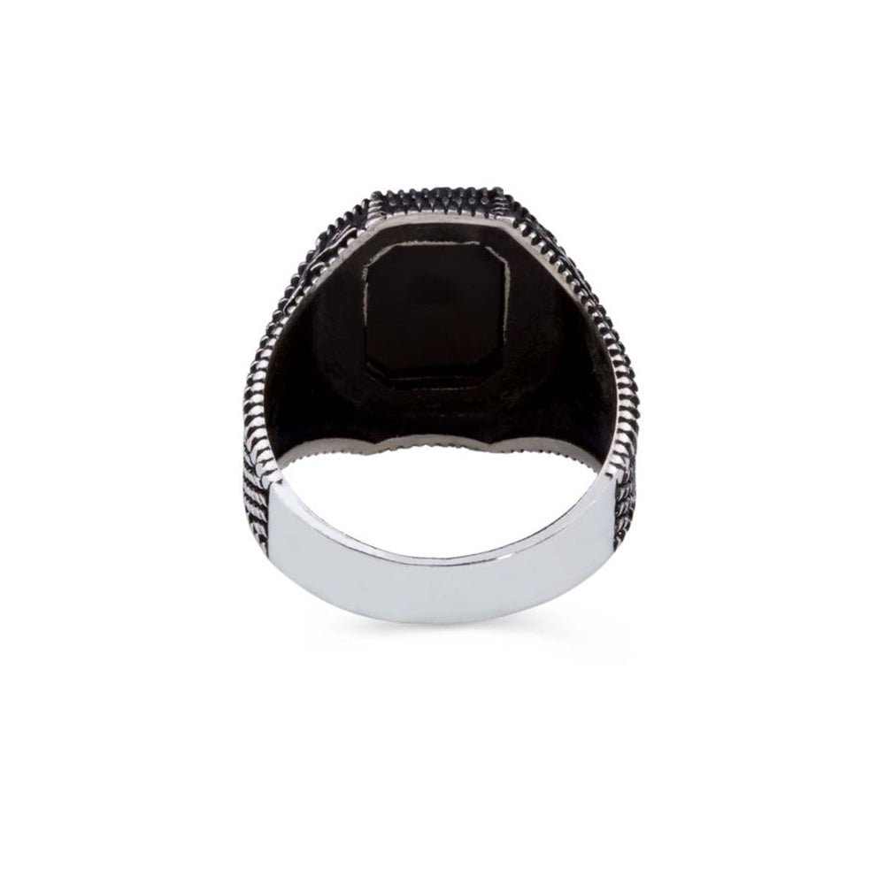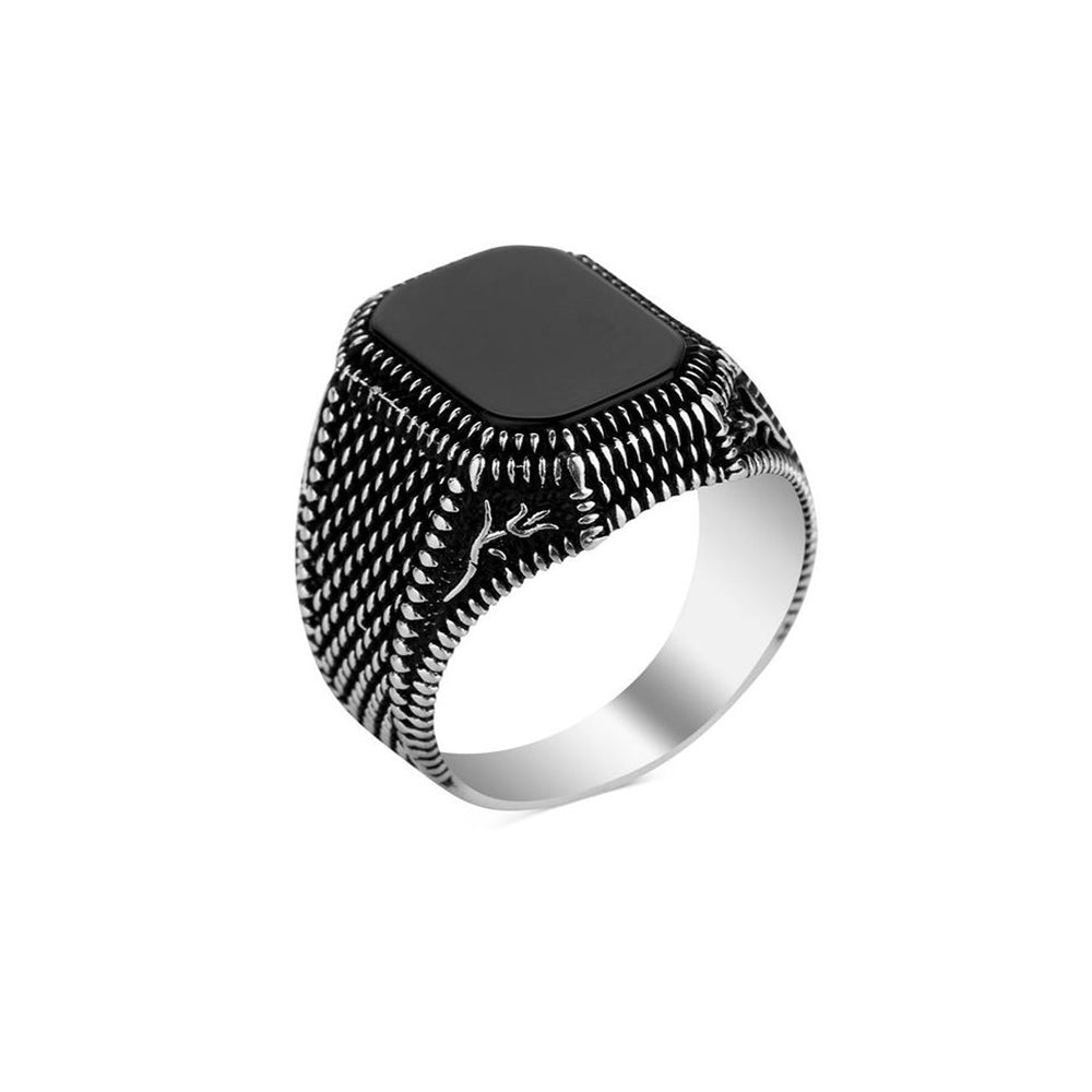 Siyah Oniks Taşlı Erkek Gümüş Yüzük (YY-036)