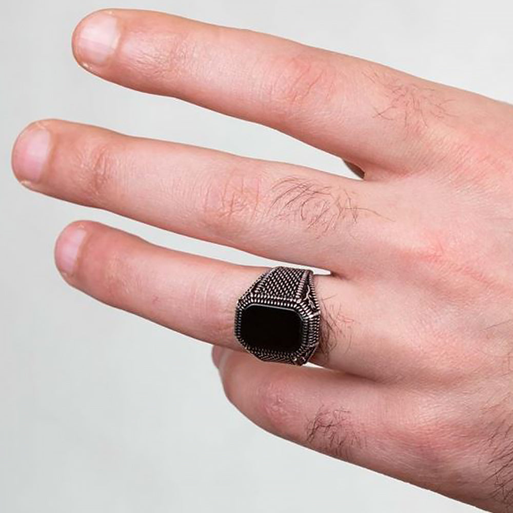 Hemen siparişinizi verin ve tarzınızı Siyah Oniks Taşlı Erkek Yüzükle taçlandırın! 💍✨