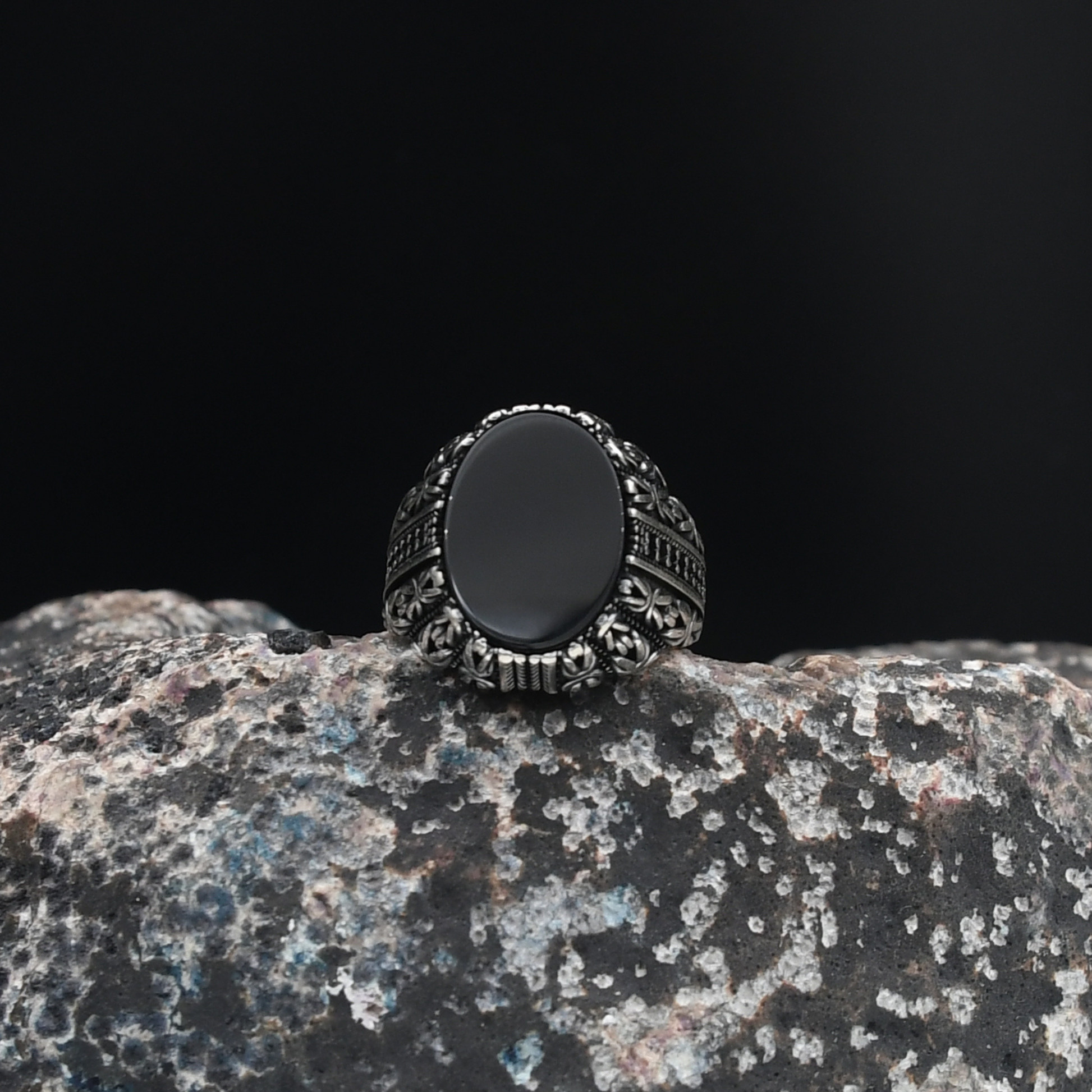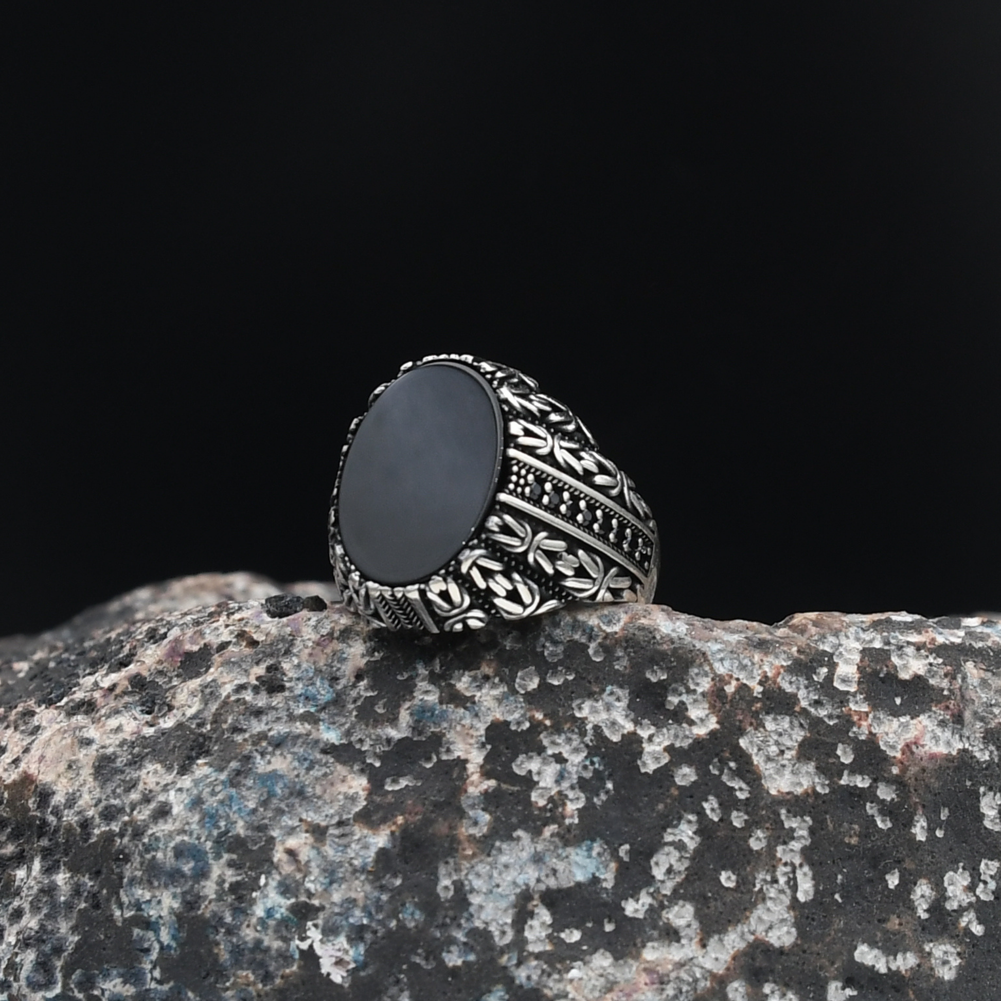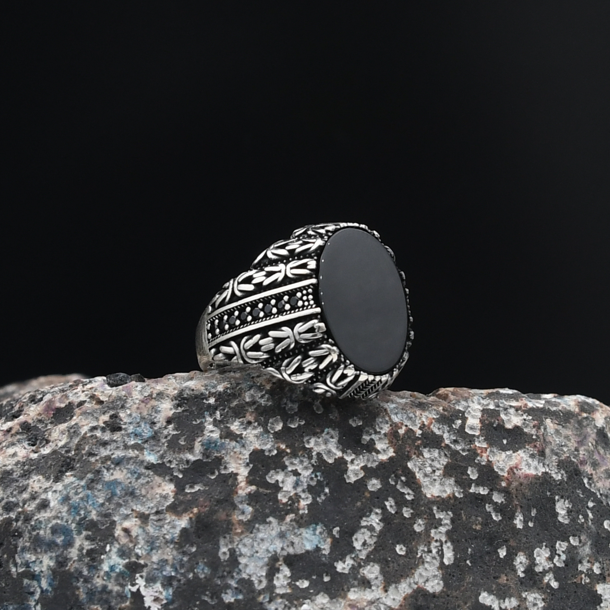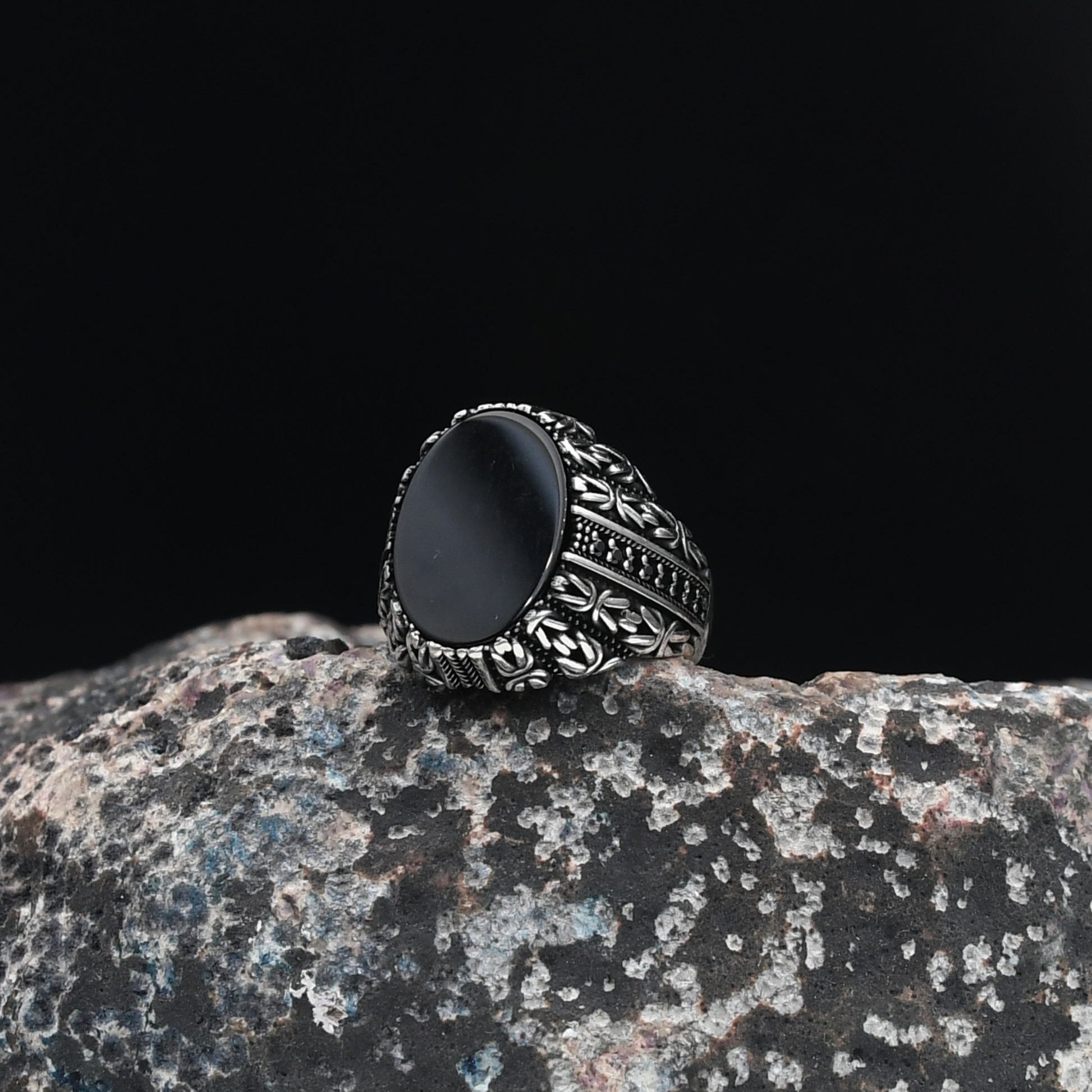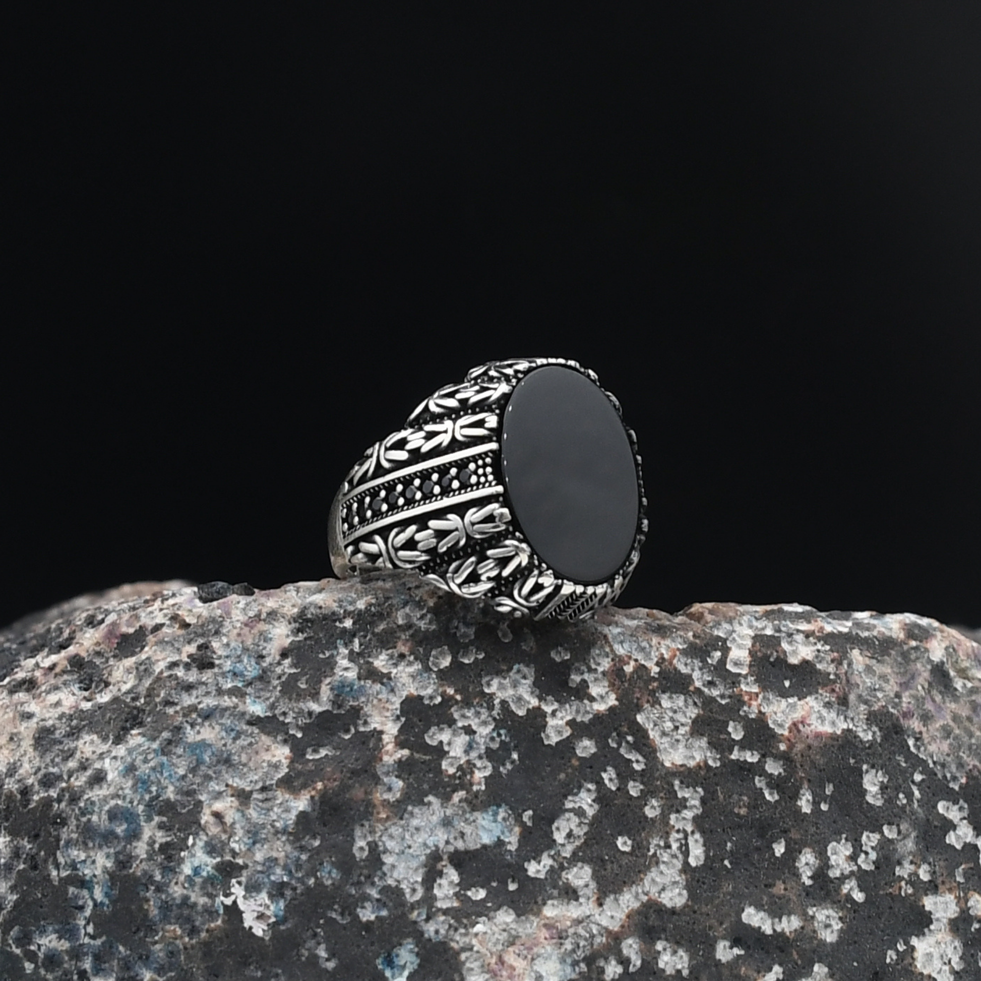 Siyah Oniks Taşlı Erkek Gümüş Yüzük