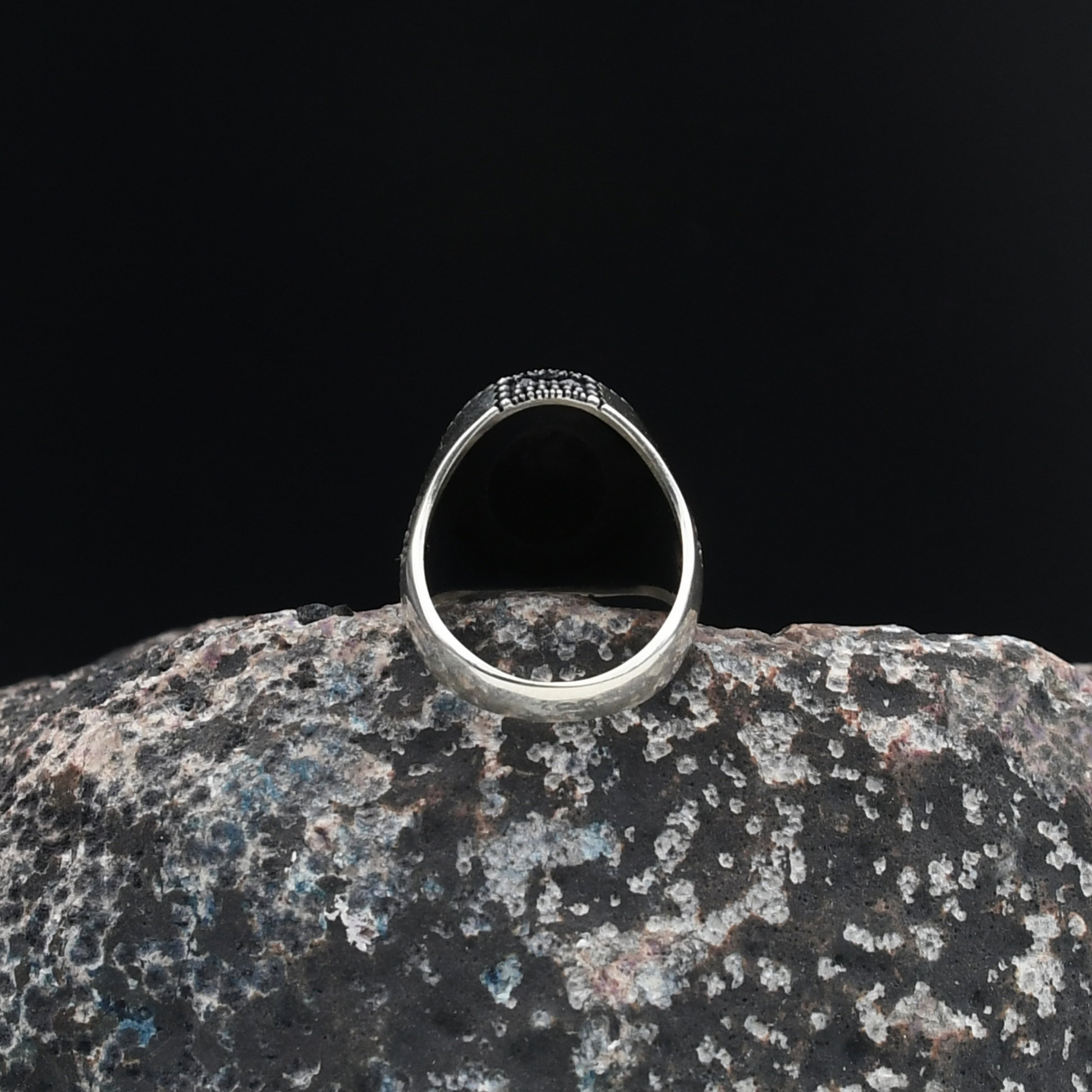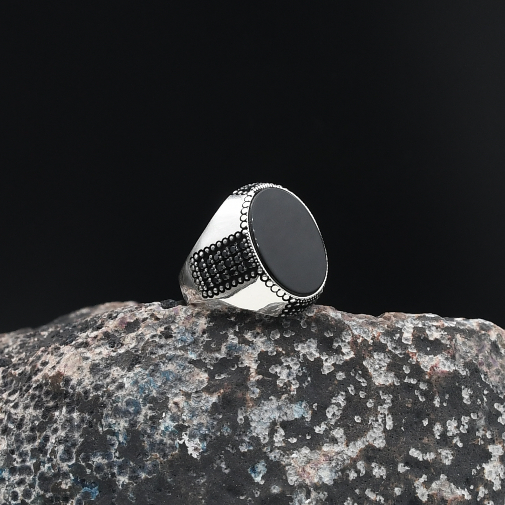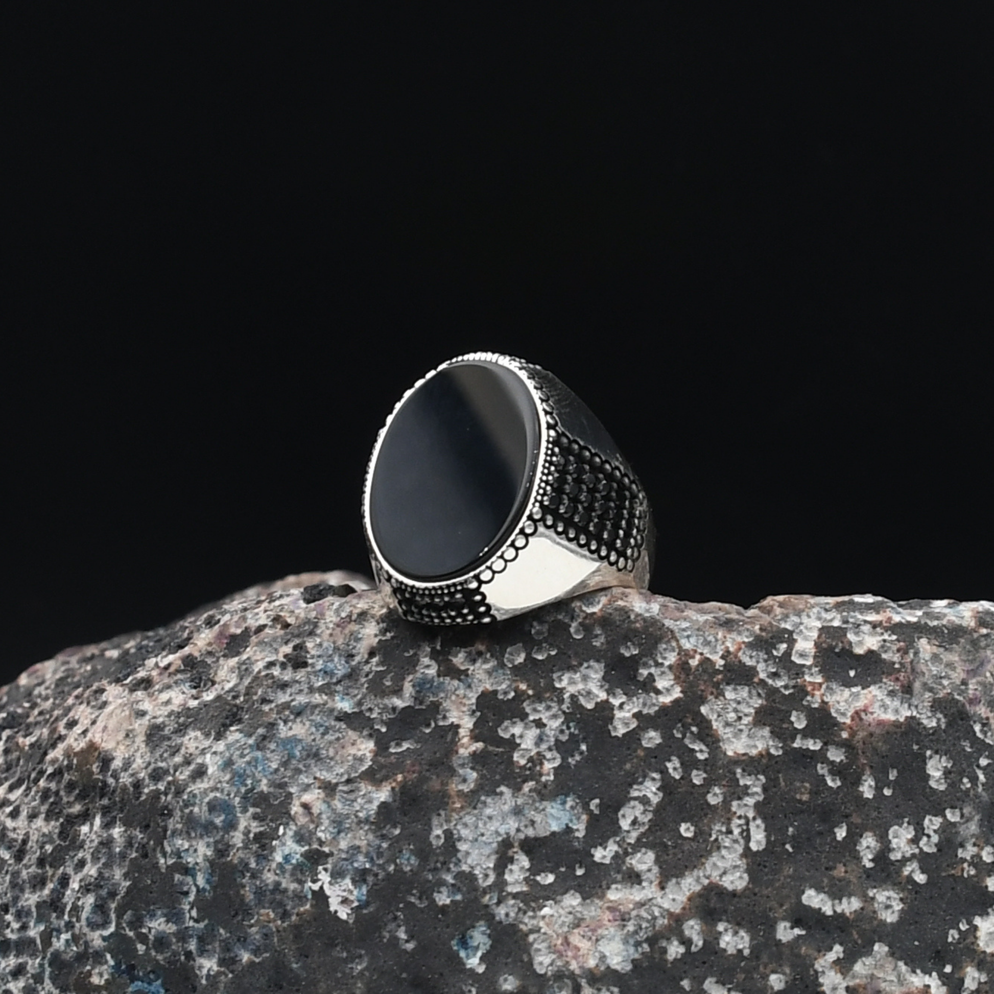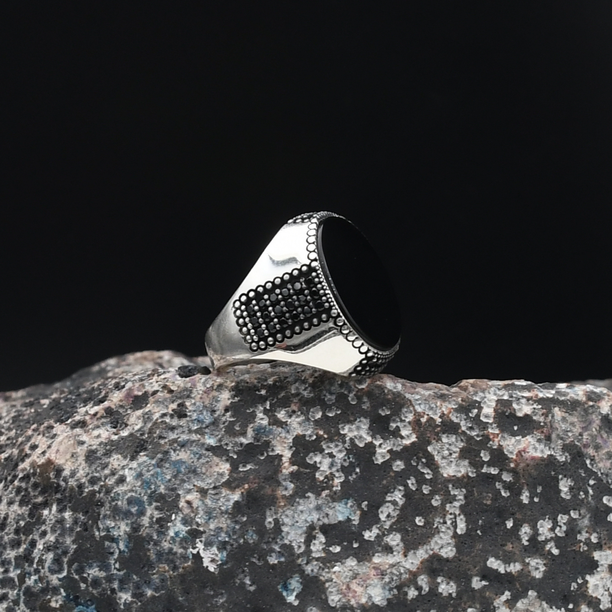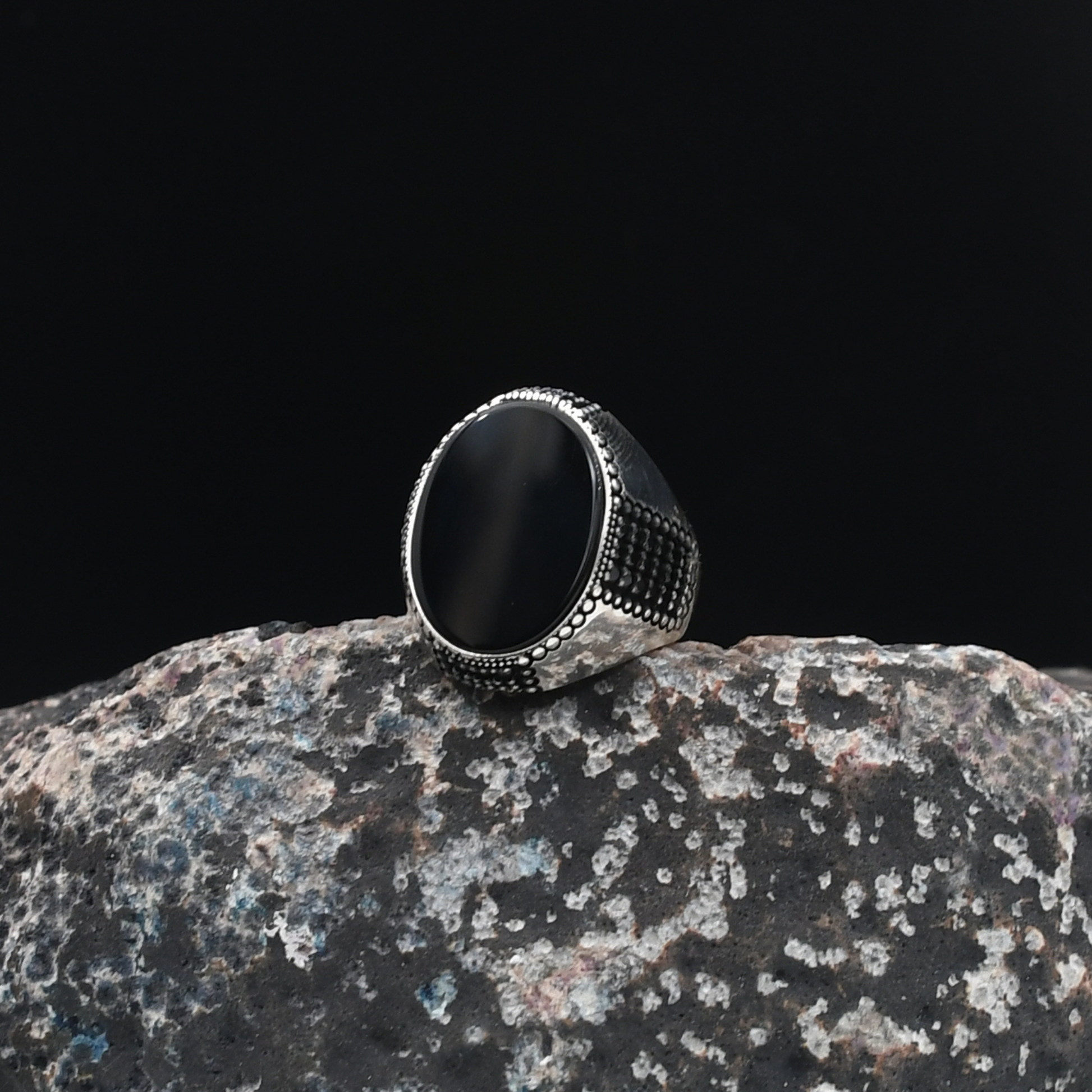 Siyah Oniks Taşlı Erkek Gümüş Yüzük