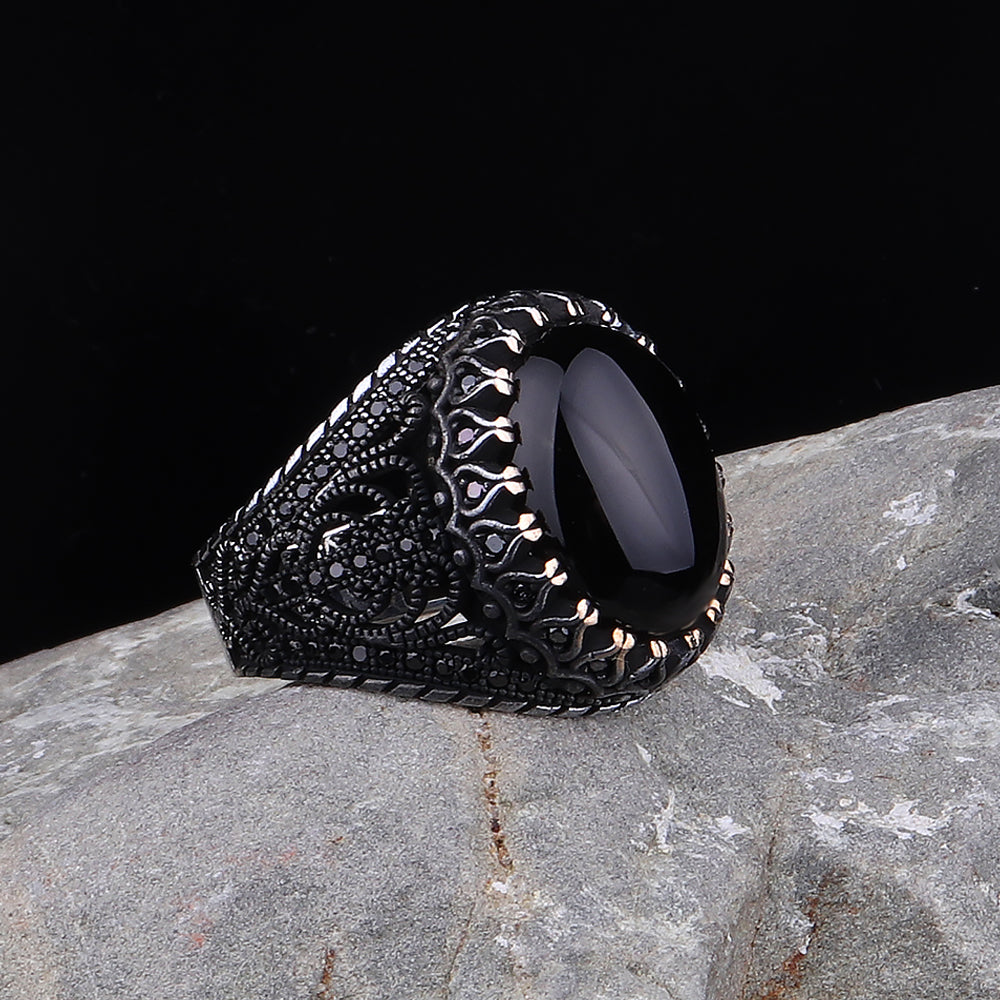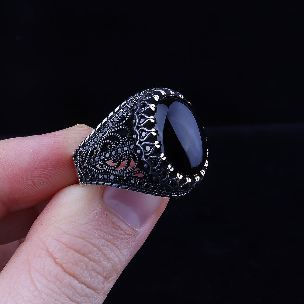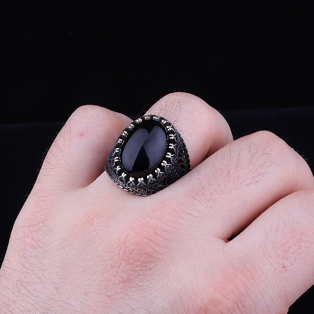Siyah Oniks Taşlı Erkek Yüzük (YY-039)