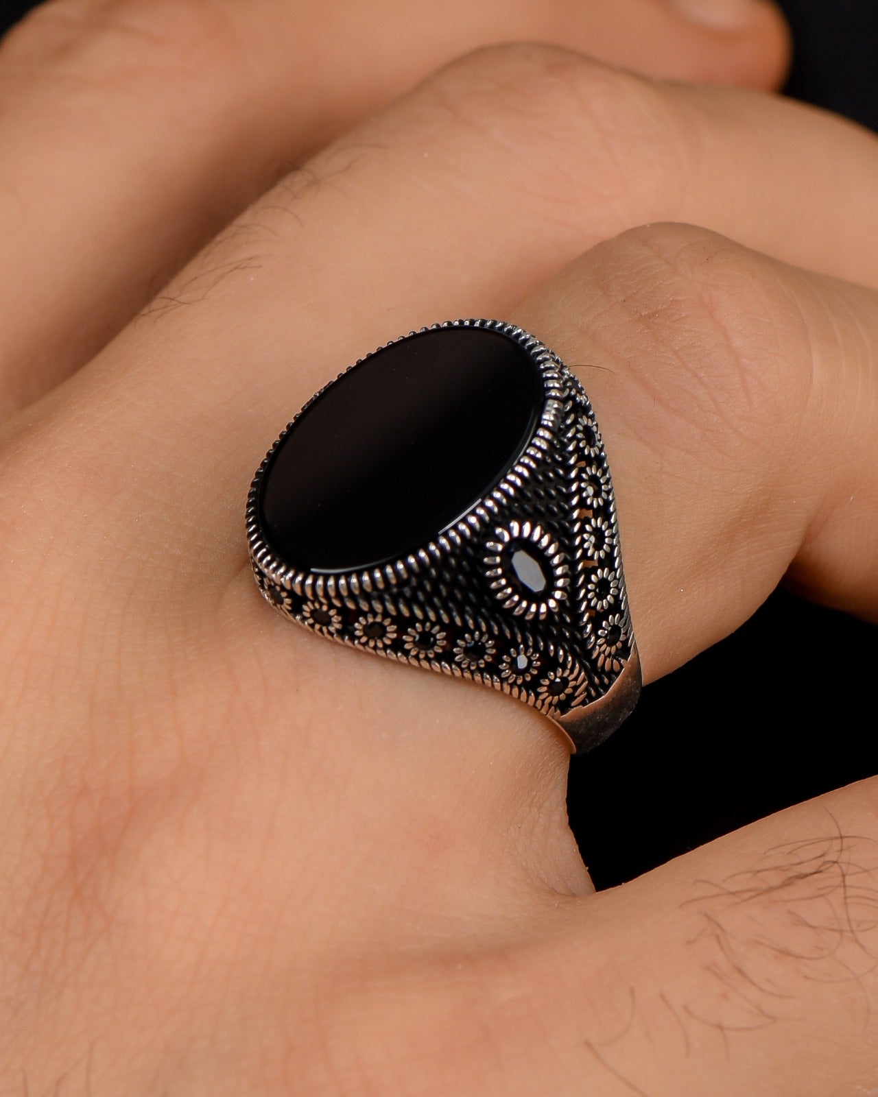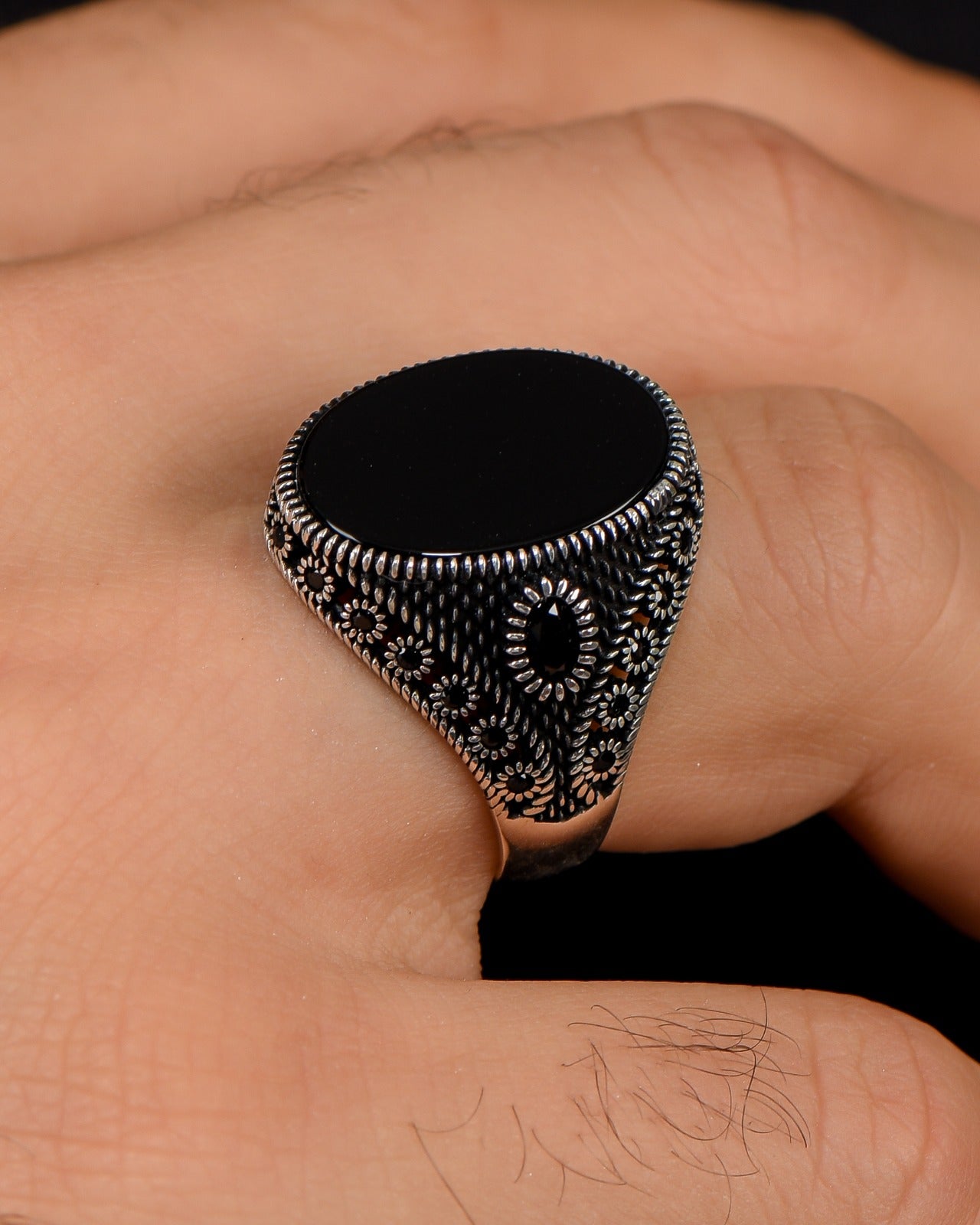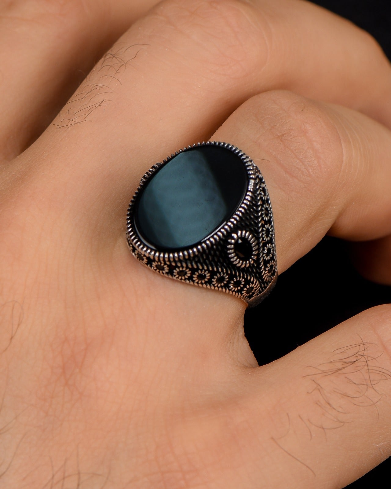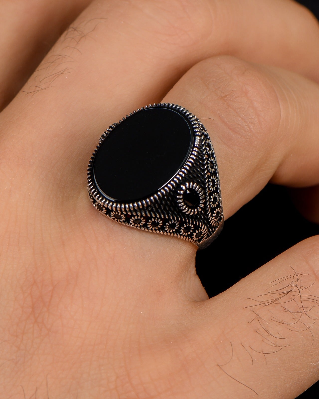 Siyah Oniks Taşlı Erkek Yüzük (PS-029)