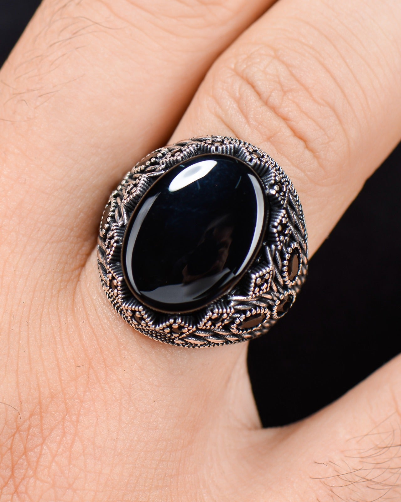 ⚫ Siyah Oniks Taşlı Erkek Yüzük - 12.5 Gram ⚫