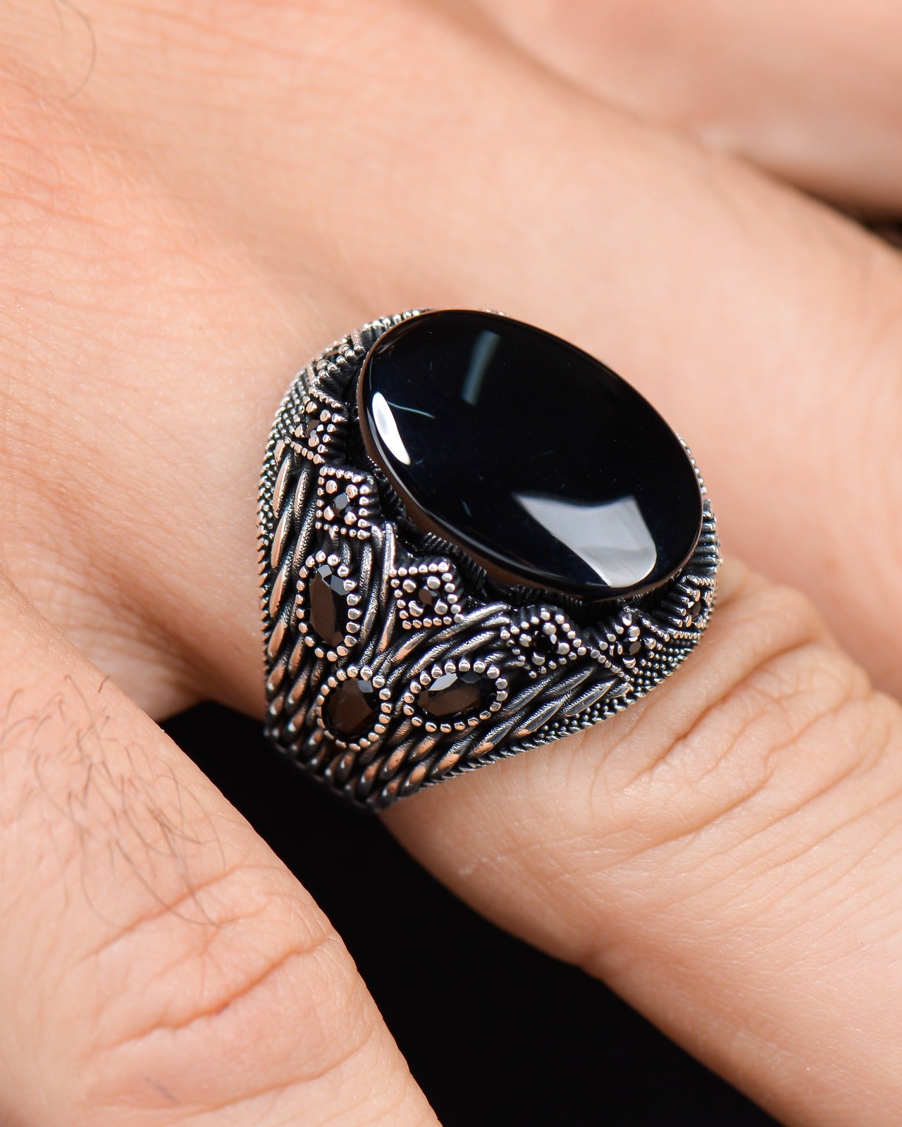 Siyah Oniks Taşlı Erkek Yüzük (PS-030)