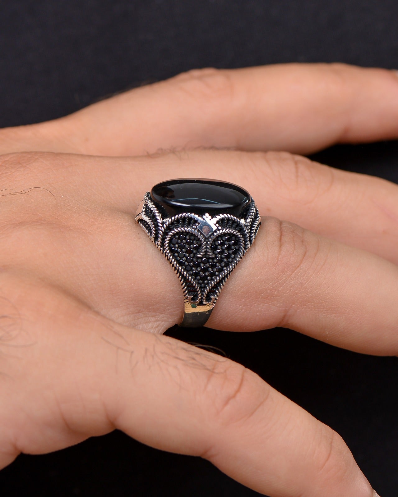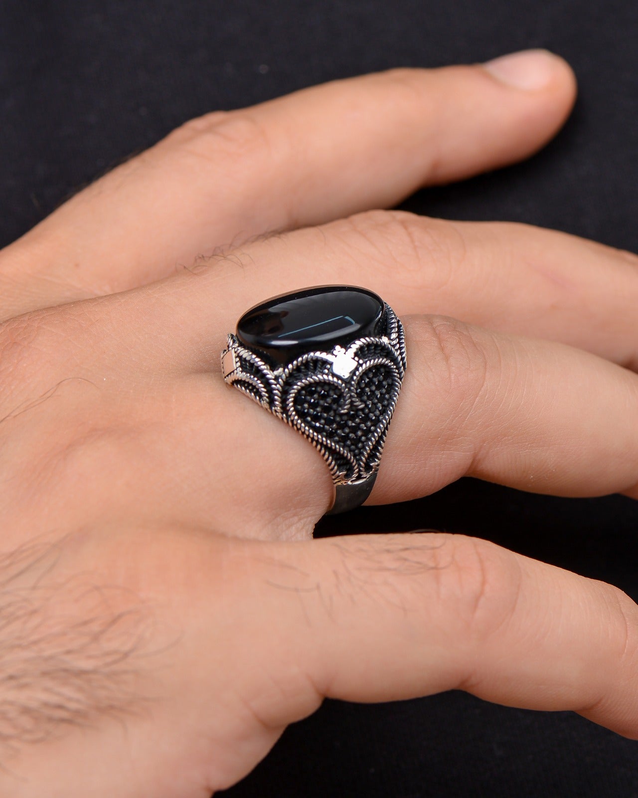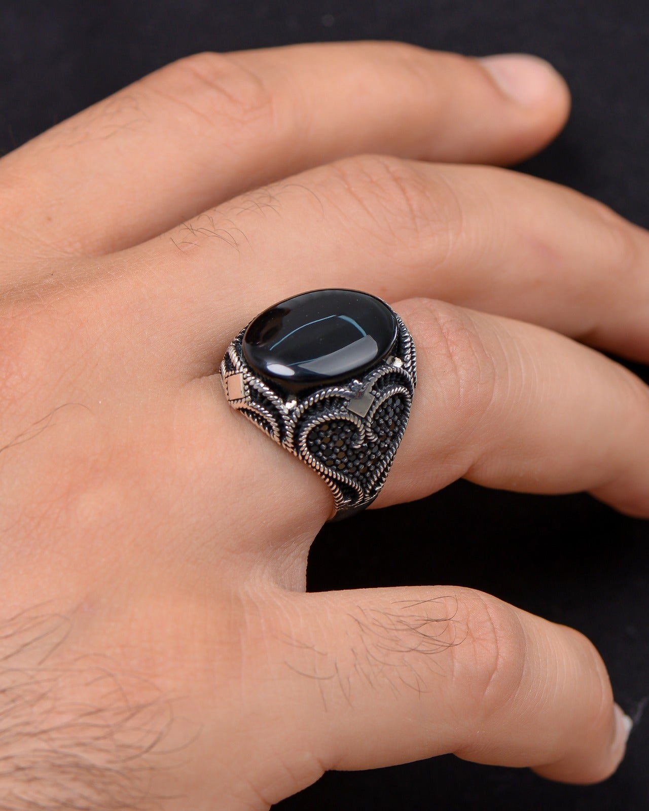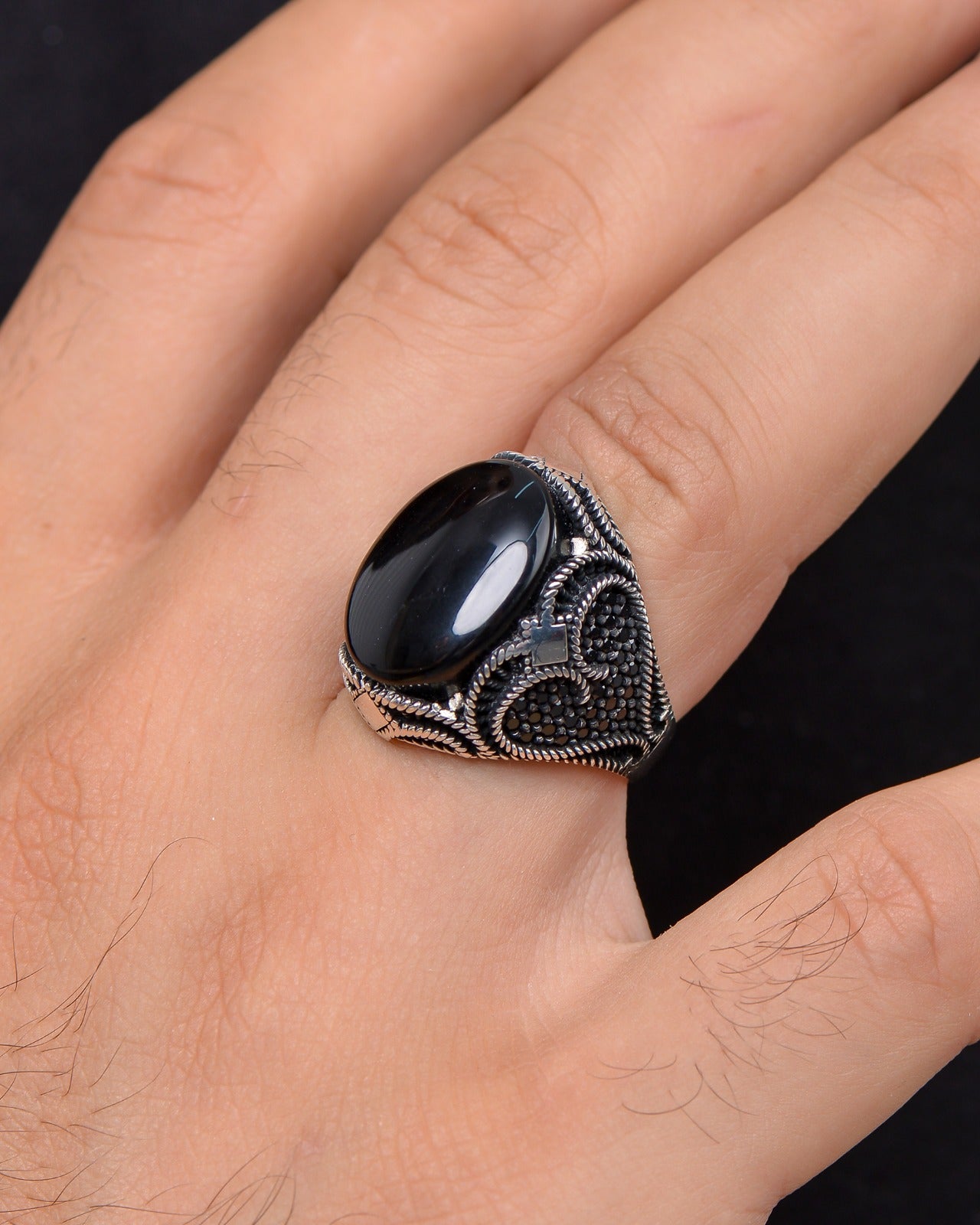 Siyah Oniks Taşlı Erkek Yüzük (PS-032)