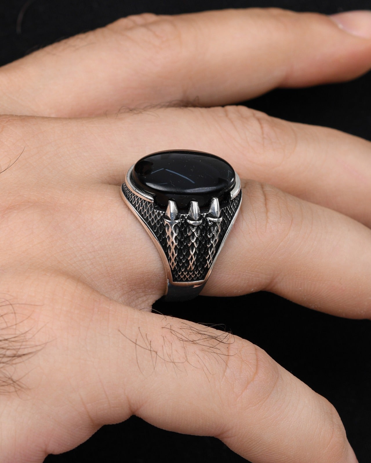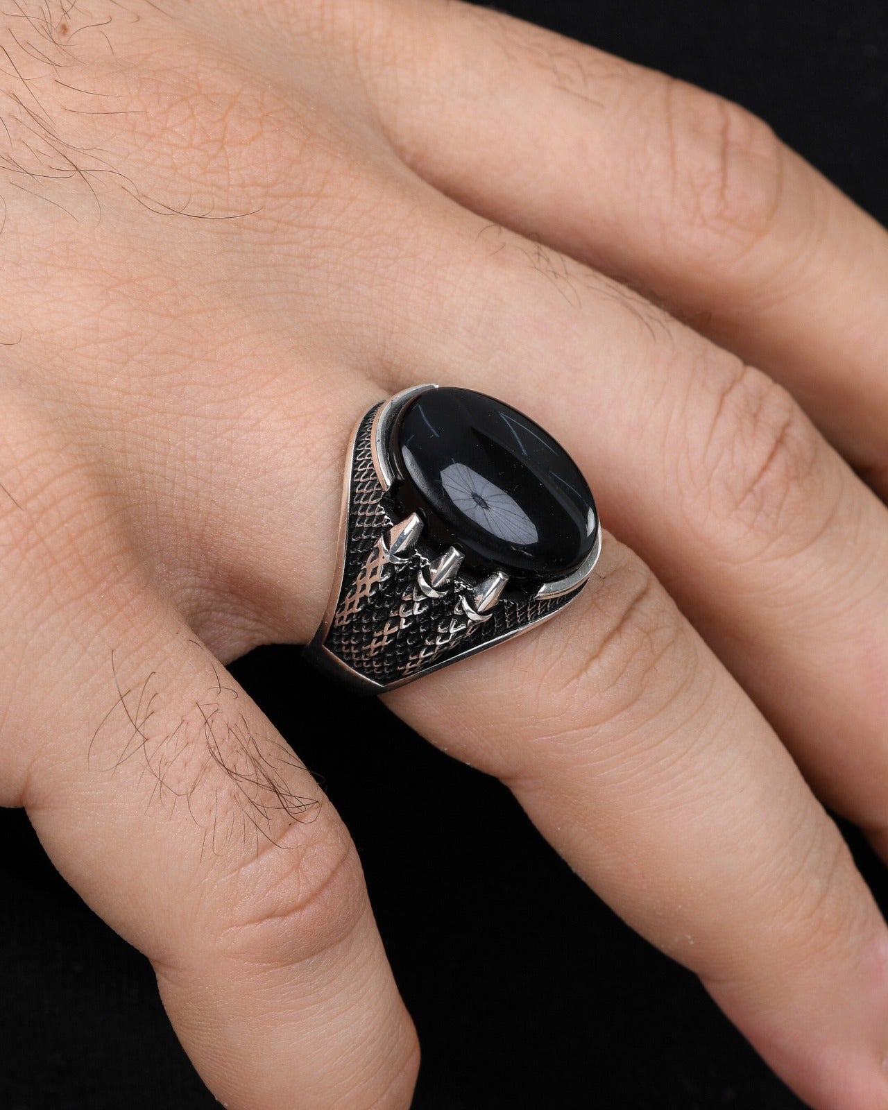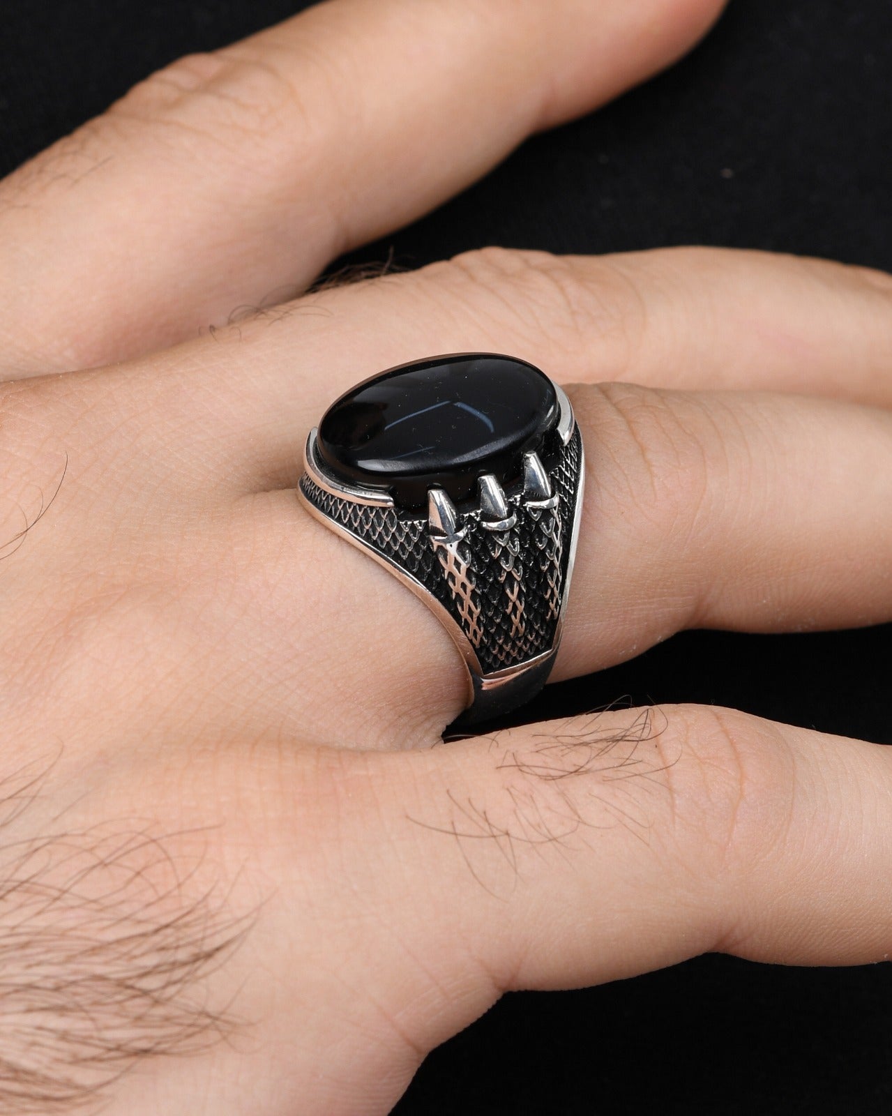 Siyah Oniks Taşlı Erkek Yüzük (PS-033)
