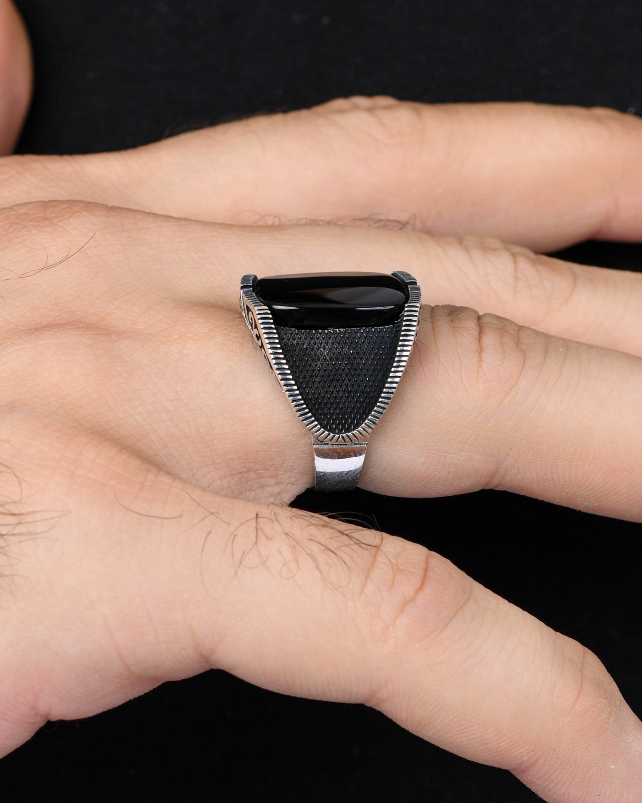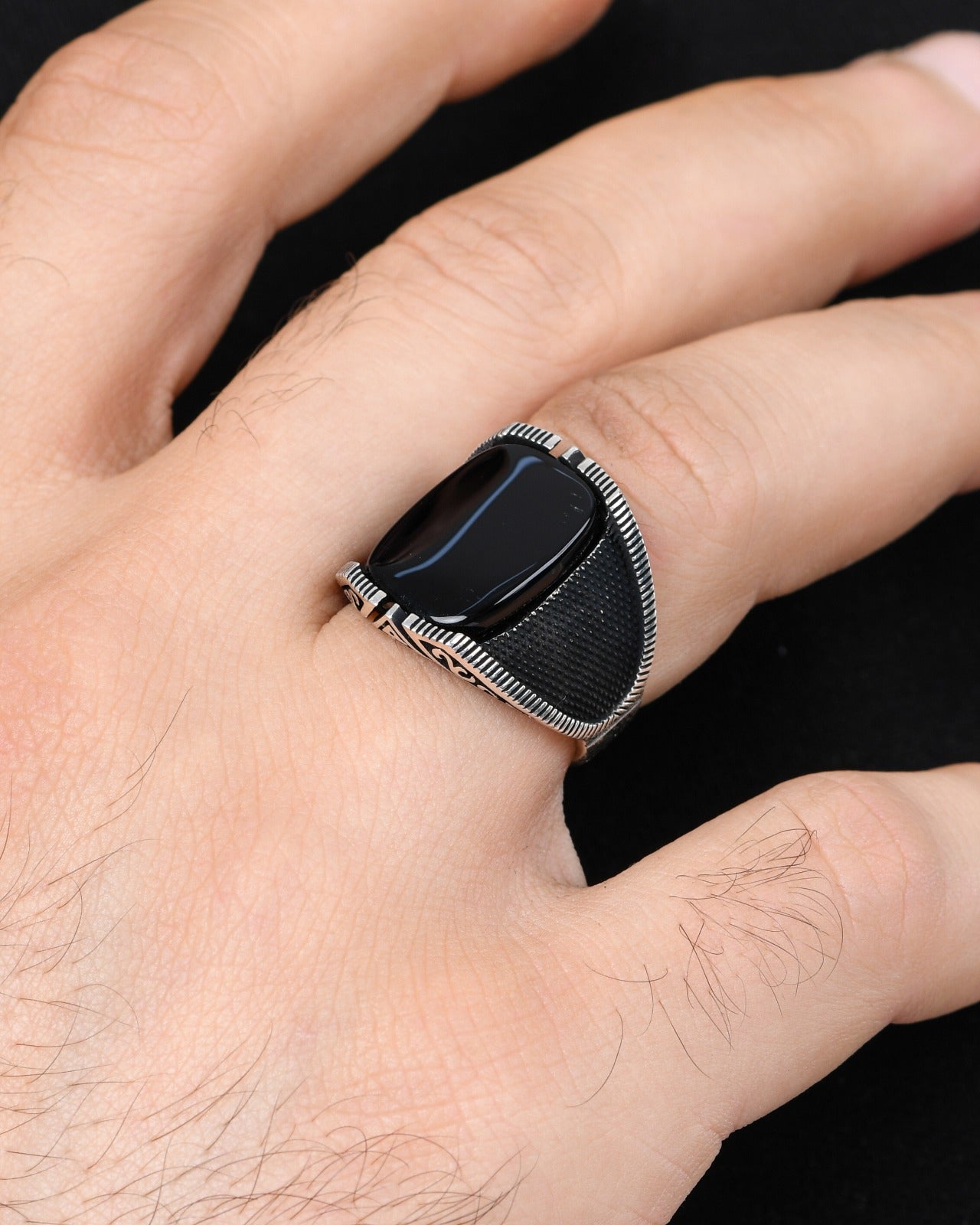Siyah Oniks Taşlı Erkek Yüzük (PS-034)