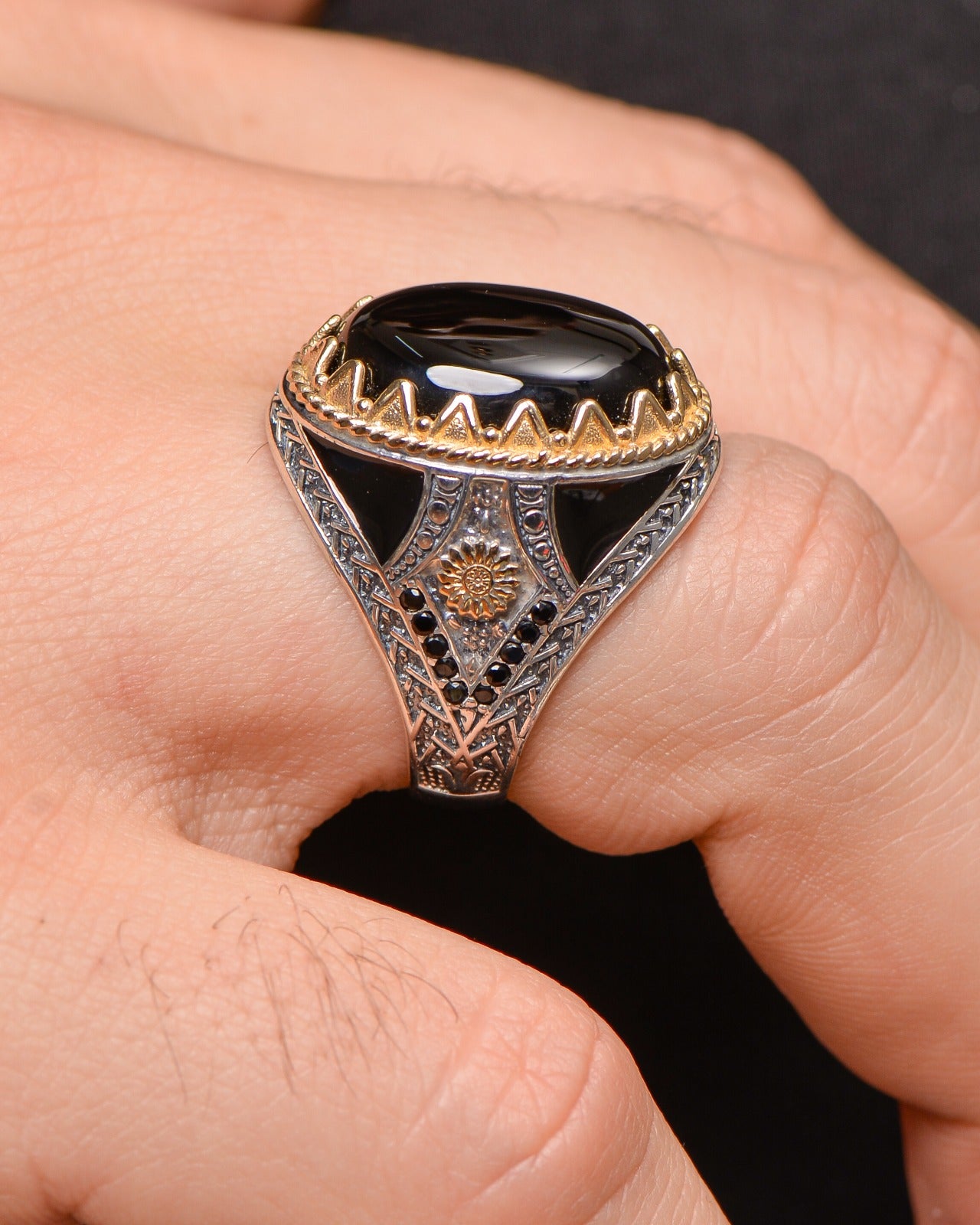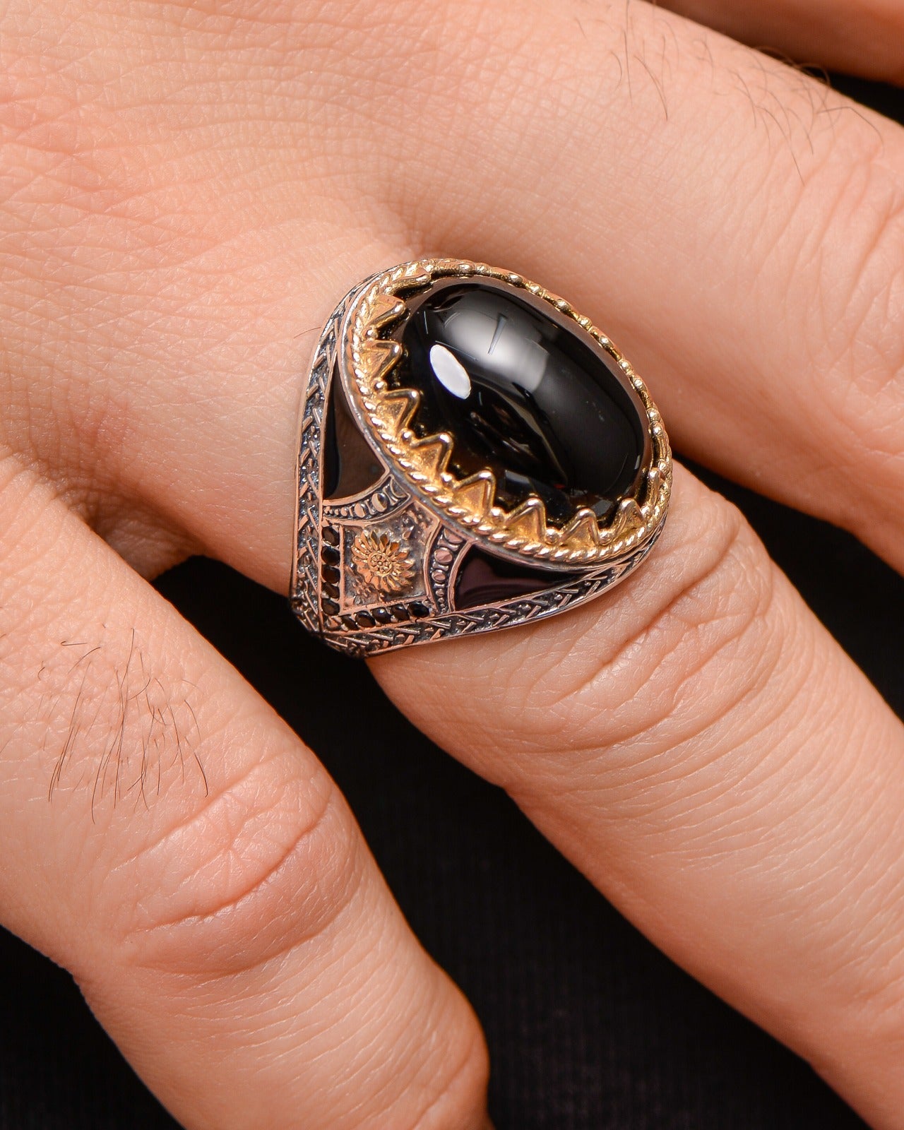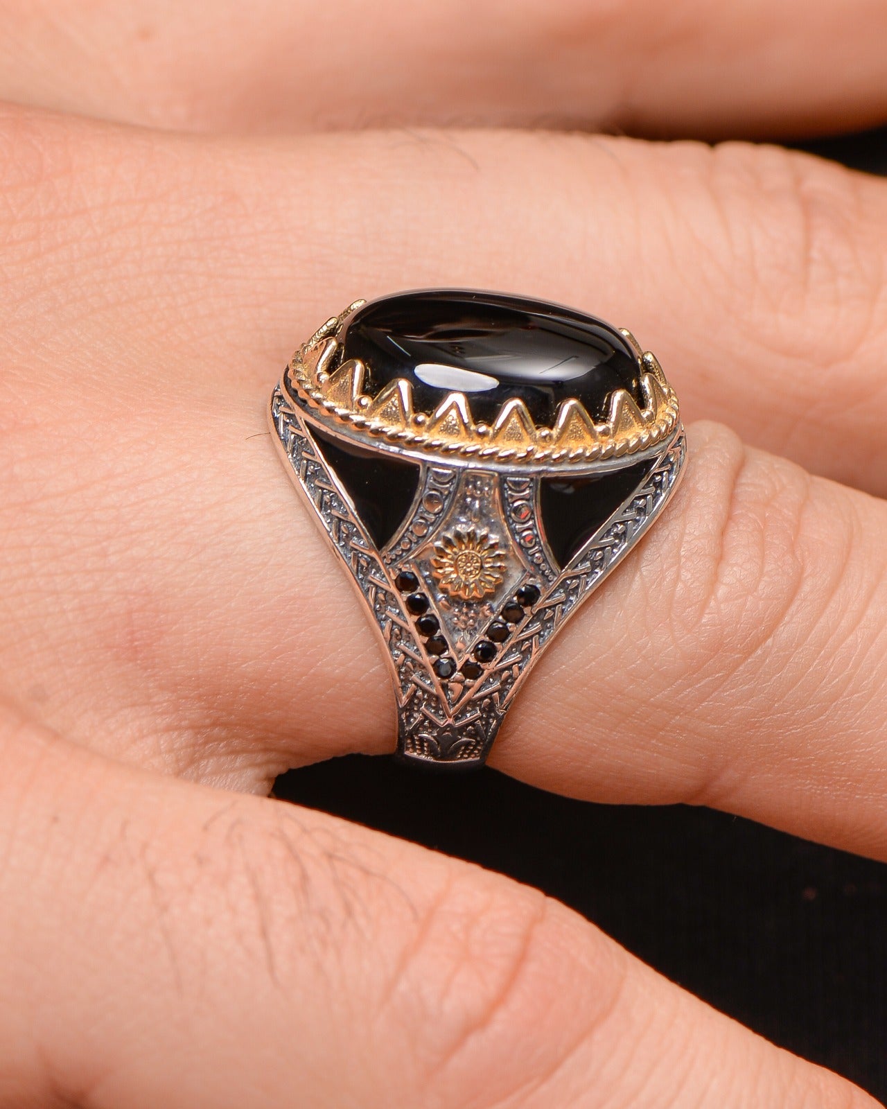 Zarafetin ve asaletin sembolü olan siyah oniks taşıyla tasarlanan bu yüzük, gizemli ve etkileyici duruşuyla dikkatleri üzerine çeker. 🖤 925 ayar gümüşten üretilmiş olan bu yüzük, kaliteli işçiliği ve dayanıklılığıyla uzun ömürlü bir aksesuardır. Siyah oniksin güçlü enerjisini taşıyan bu yüzük, tarzınıza sofistike bir dokunuş katmak isteyenler için idealdir. 💍