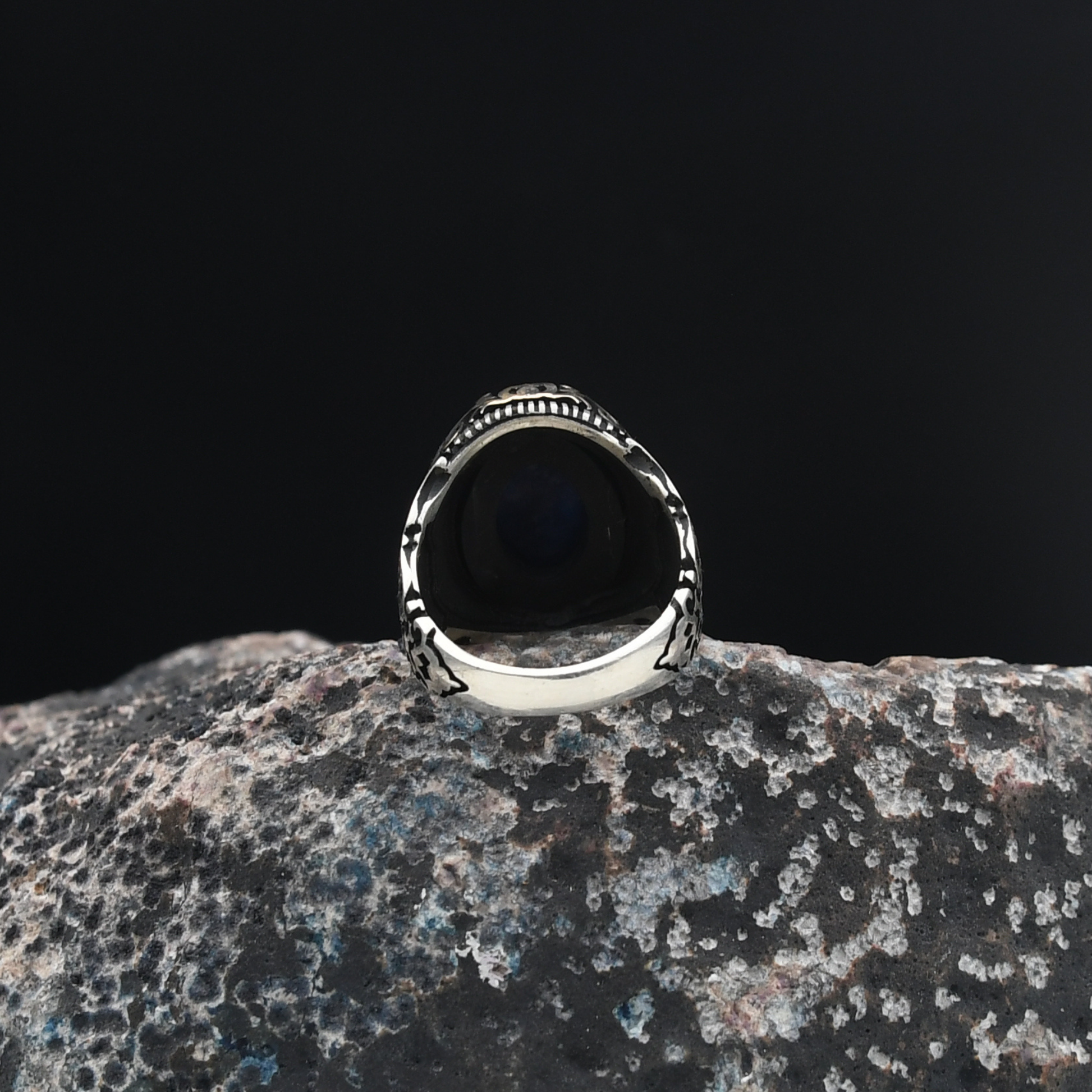 Mavi Kaplangözü Taşlı Gümüş Yüzük