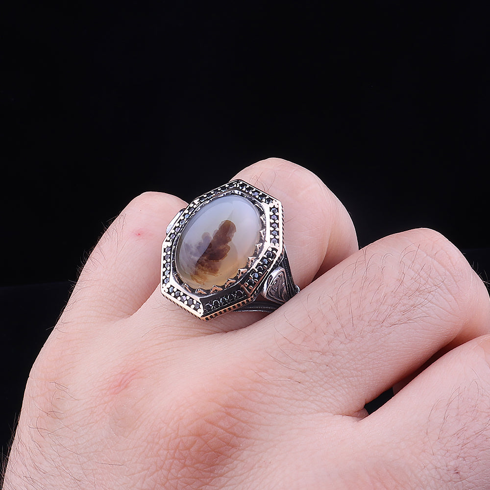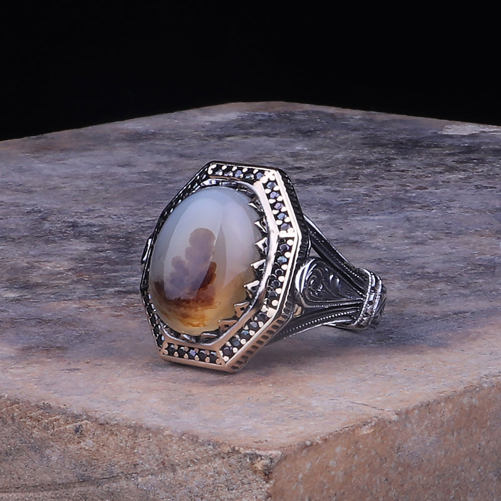 Yemen Akik Taşlı Erkek Gümüş Yüzük (YY-047)