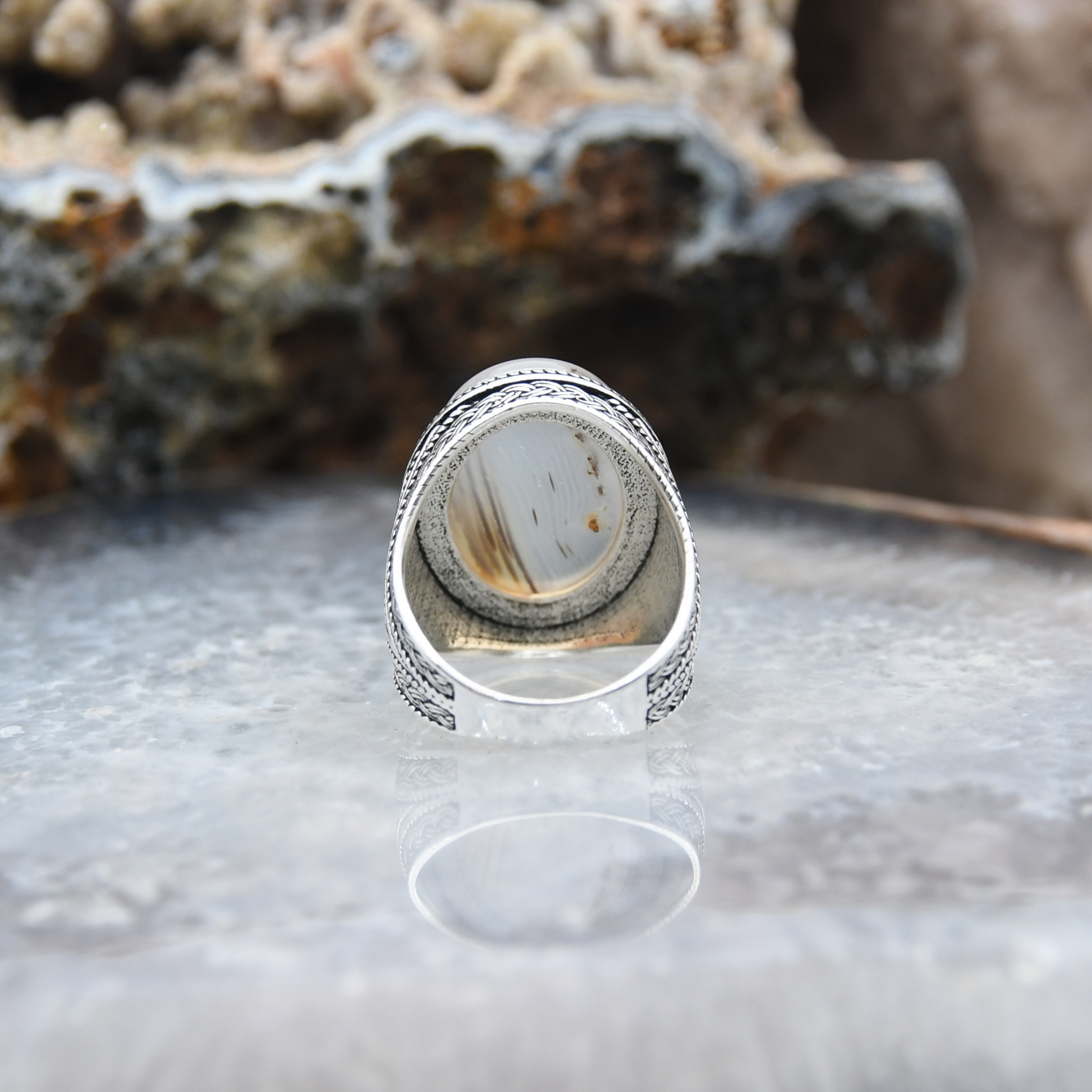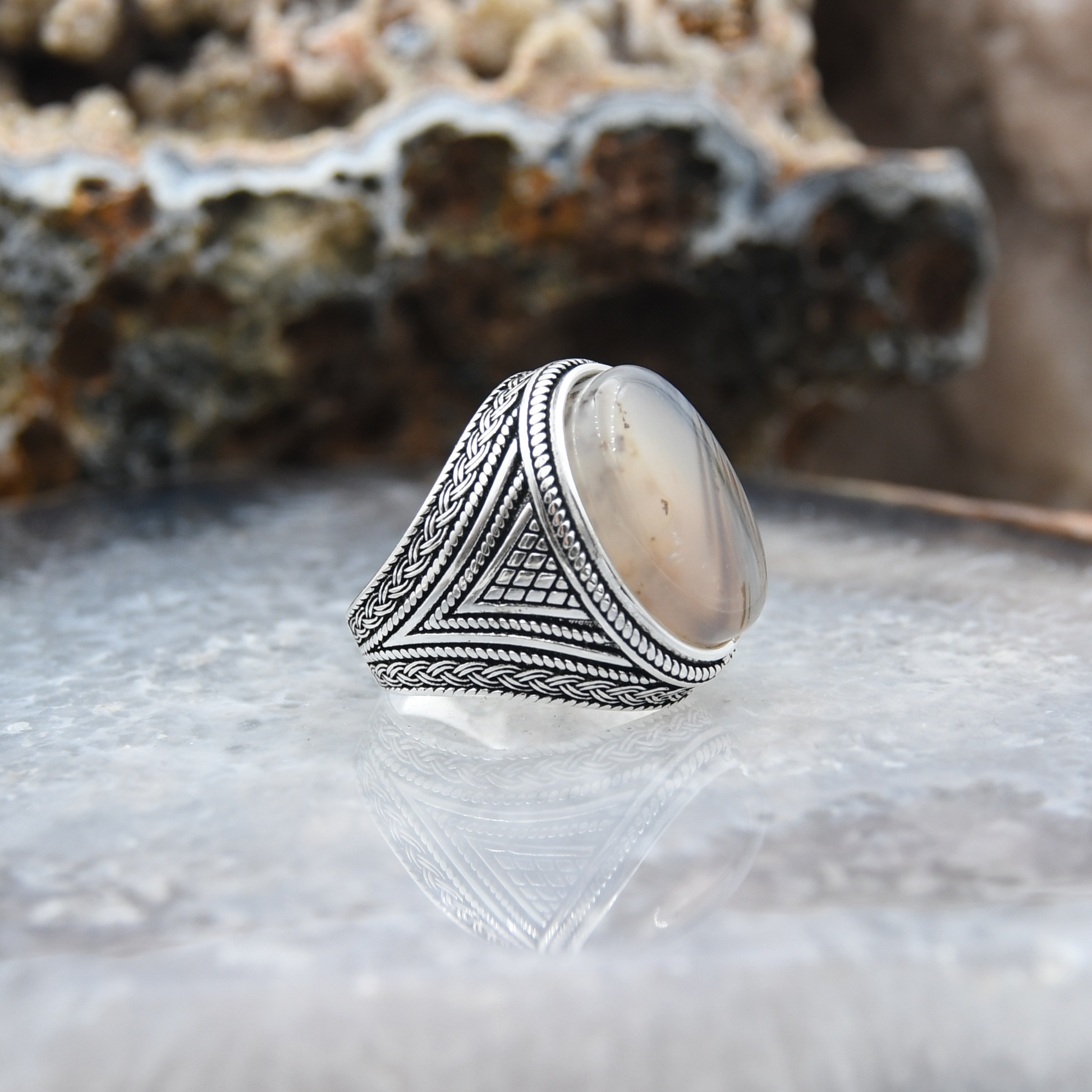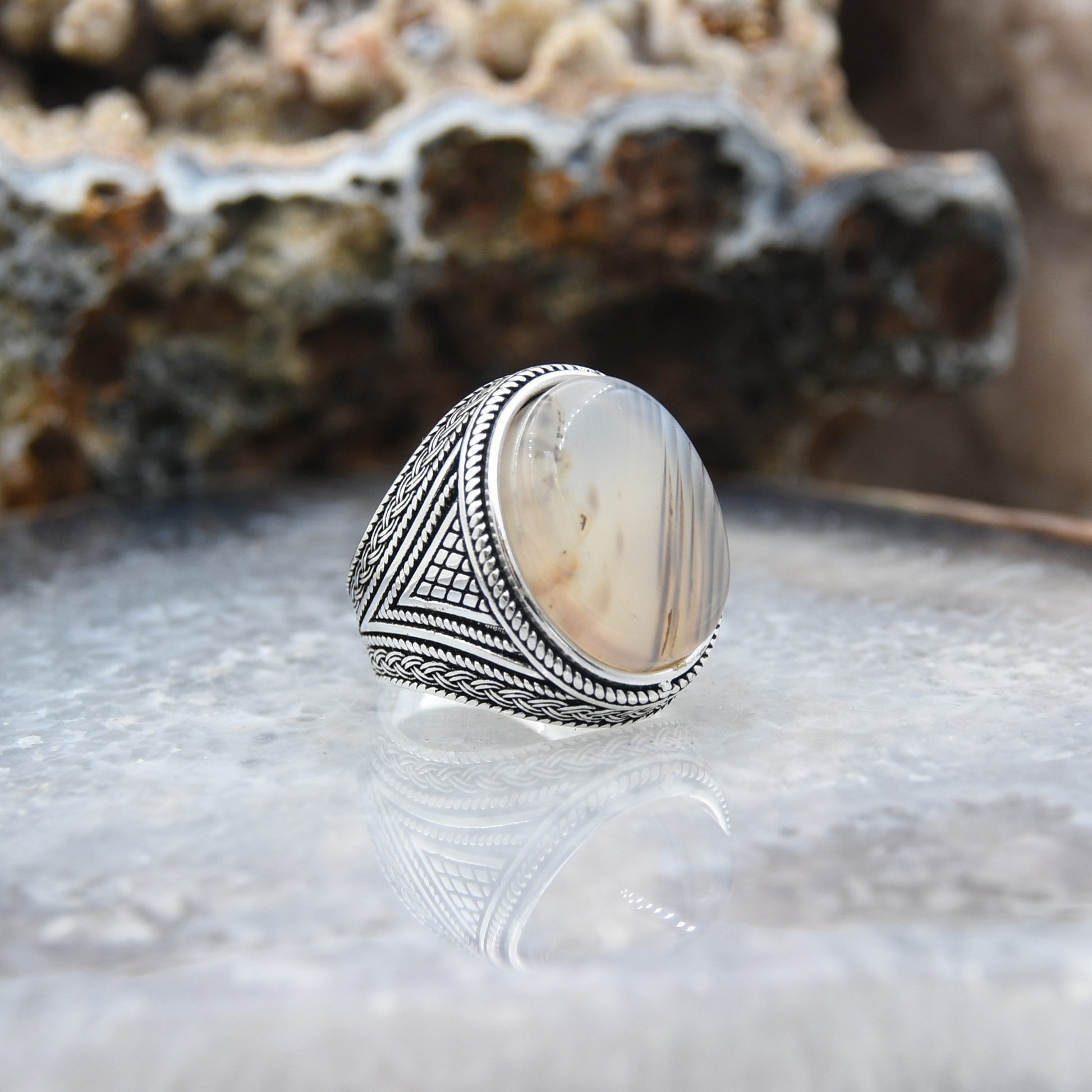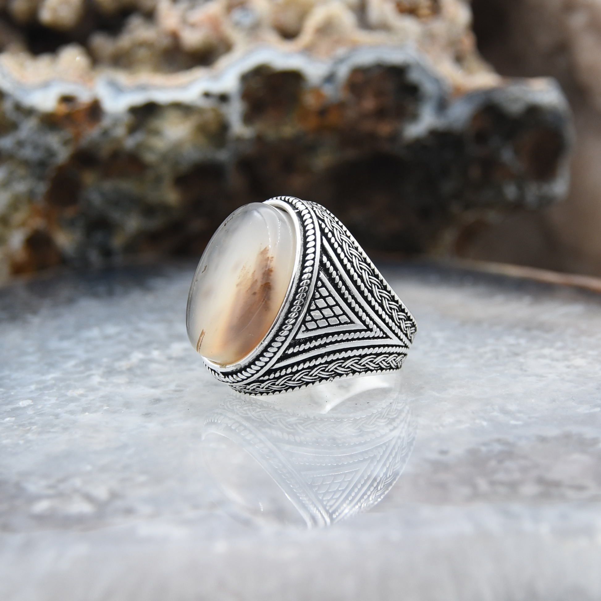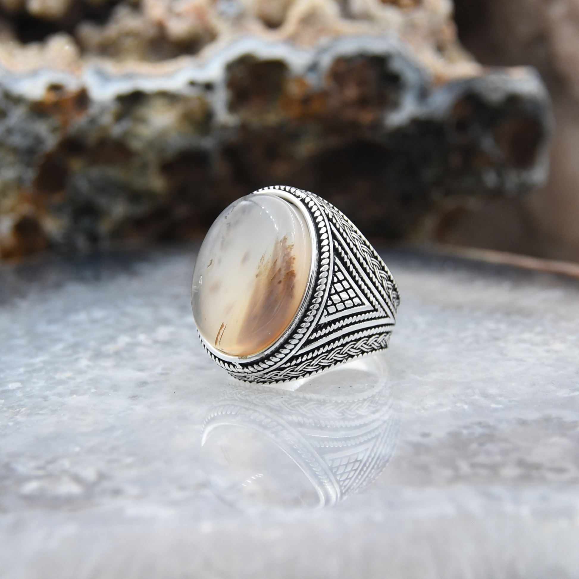 Binlerce yıllık geçmişe sahip, şifa ve enerji taşı olarak bilinen Yemen Akik Taşı, bu özel tasarım yüzükle zarafet ve gelenekselliği bir araya getiriyor. Ortalama 12 gram ağırlığındaki bu yüzük, %100 925 ayar gümüşten, tamamen el işçiliğiyle üretilmiştir. Hem güçlü bir duruş hem de manevi bir anlam taşıyan bu yüzük, klasik sever erkekler için ideal bir seçimdir.