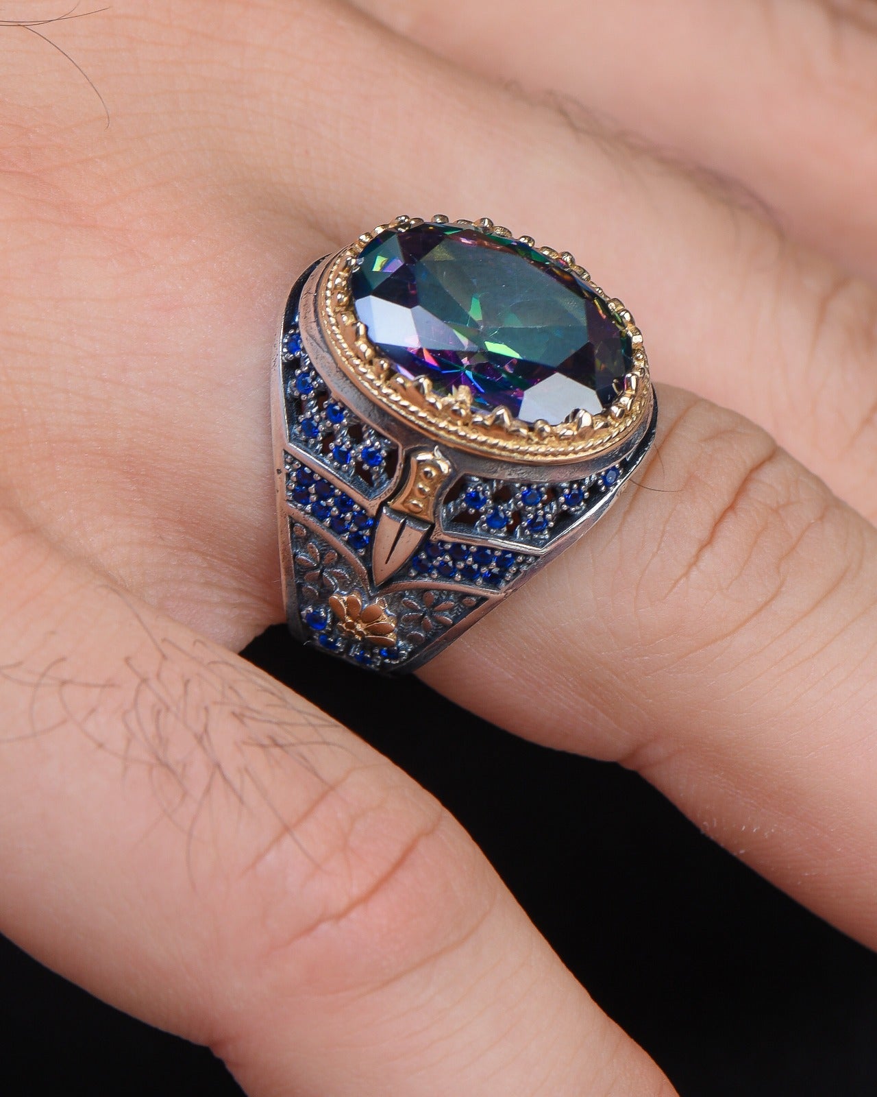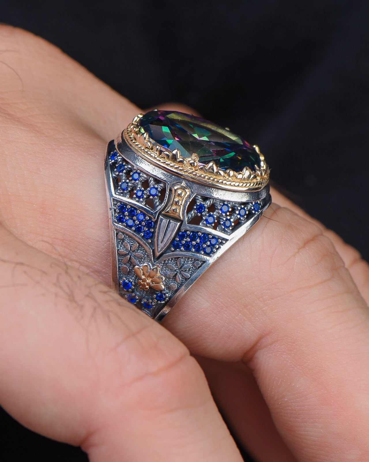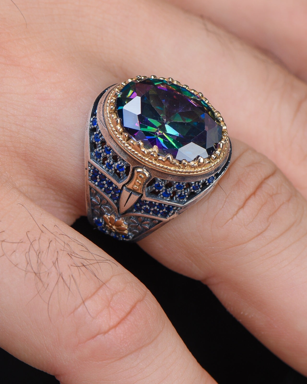 Büyüleyici mistik topaz taşıyla tasarlanan bu yüzük, rengarenk yansımalarıyla gizemli bir şıklık sunuyor. 🌈 16 gram ağırlığında olan ve 925 ayar gümüşten üretilmiş bu yüzük, her stile uyum sağlayacak eşsiz bir aksesuar. Hem sağlam hem de zarif duruşuyla göz kamaştıracak! 💍