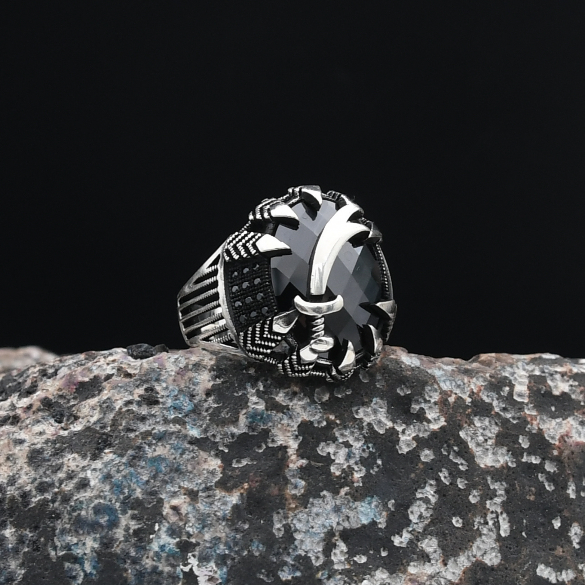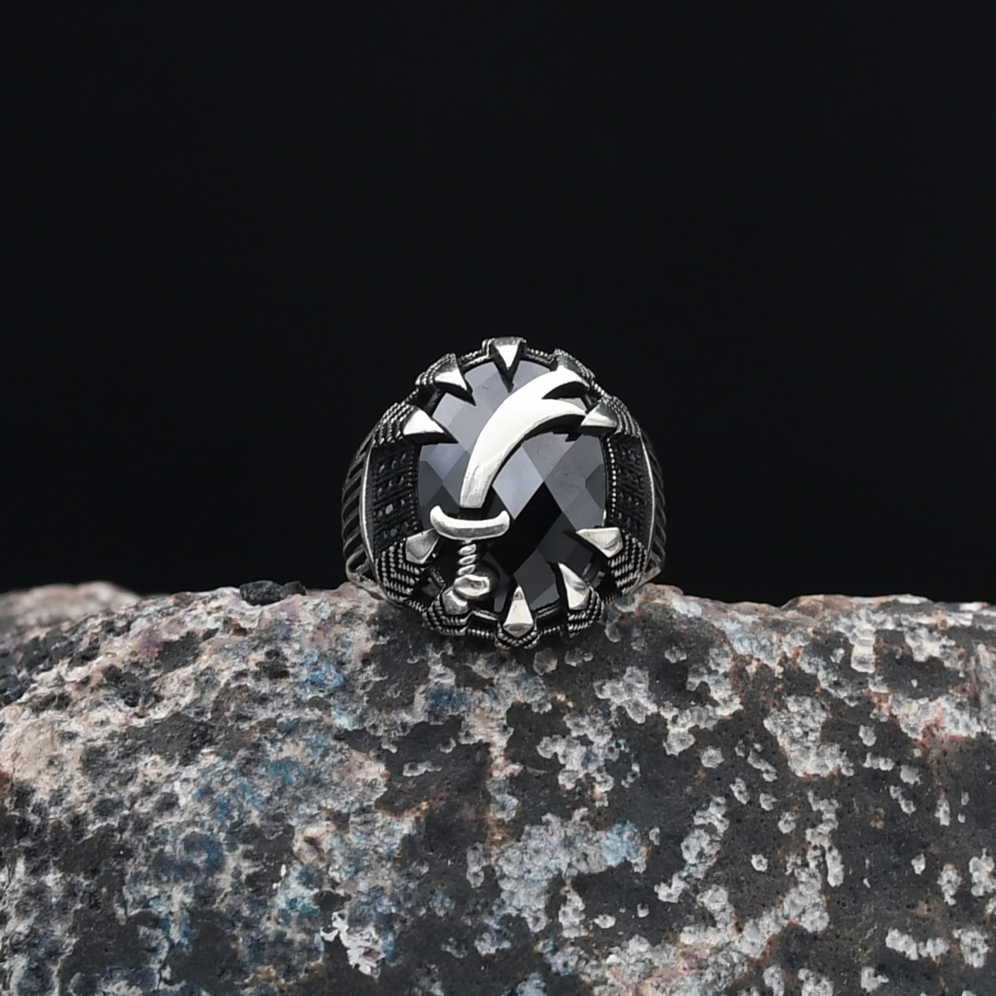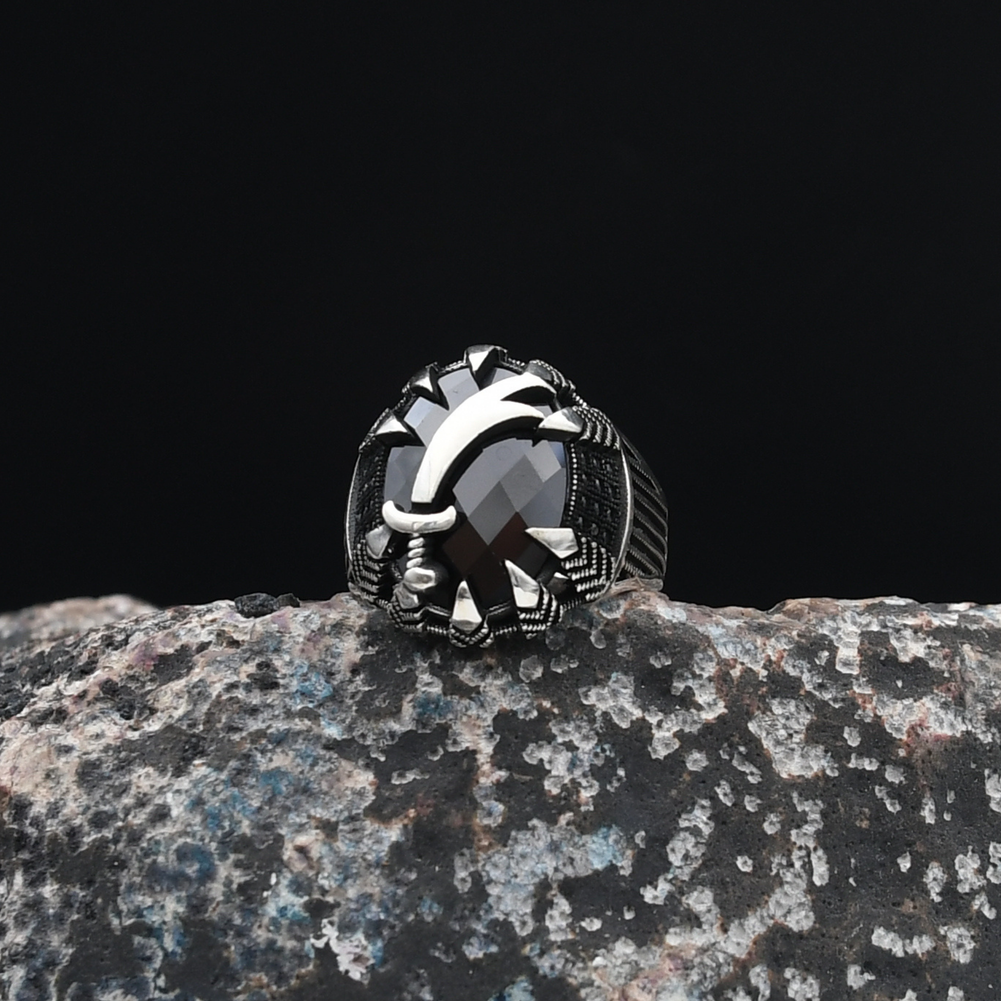 Cesaretin, adaletin ve maneviyatın simgesi olan Zülfikar Kılıcı; bu özel tasarım yüzükte siyah zirkon taşının asaletiyle buluşuyor. %100 925 ayar gümüşten el işçiliğiyle üretilen bu anlamlı yüzük, hem şıklığı hem de ruhani bir derinliği aynı anda taşımak isteyen erkekler için tasarlandı. Ortalama 11,5 gram ağırlığıyla, güçlü ve tok bir hissiyat sunar.